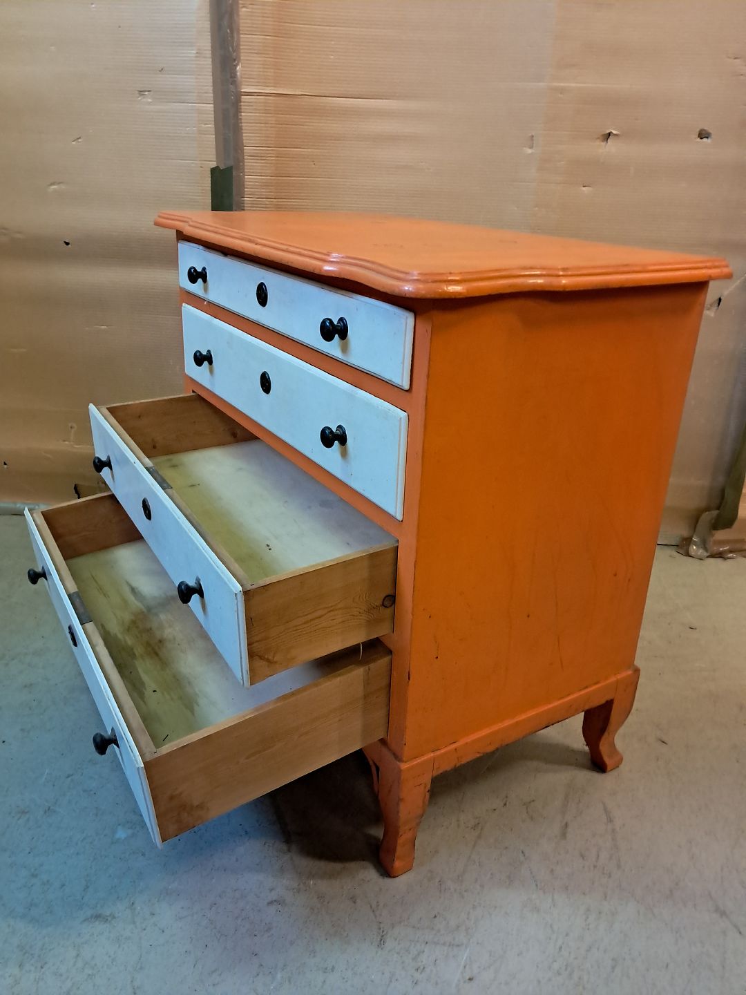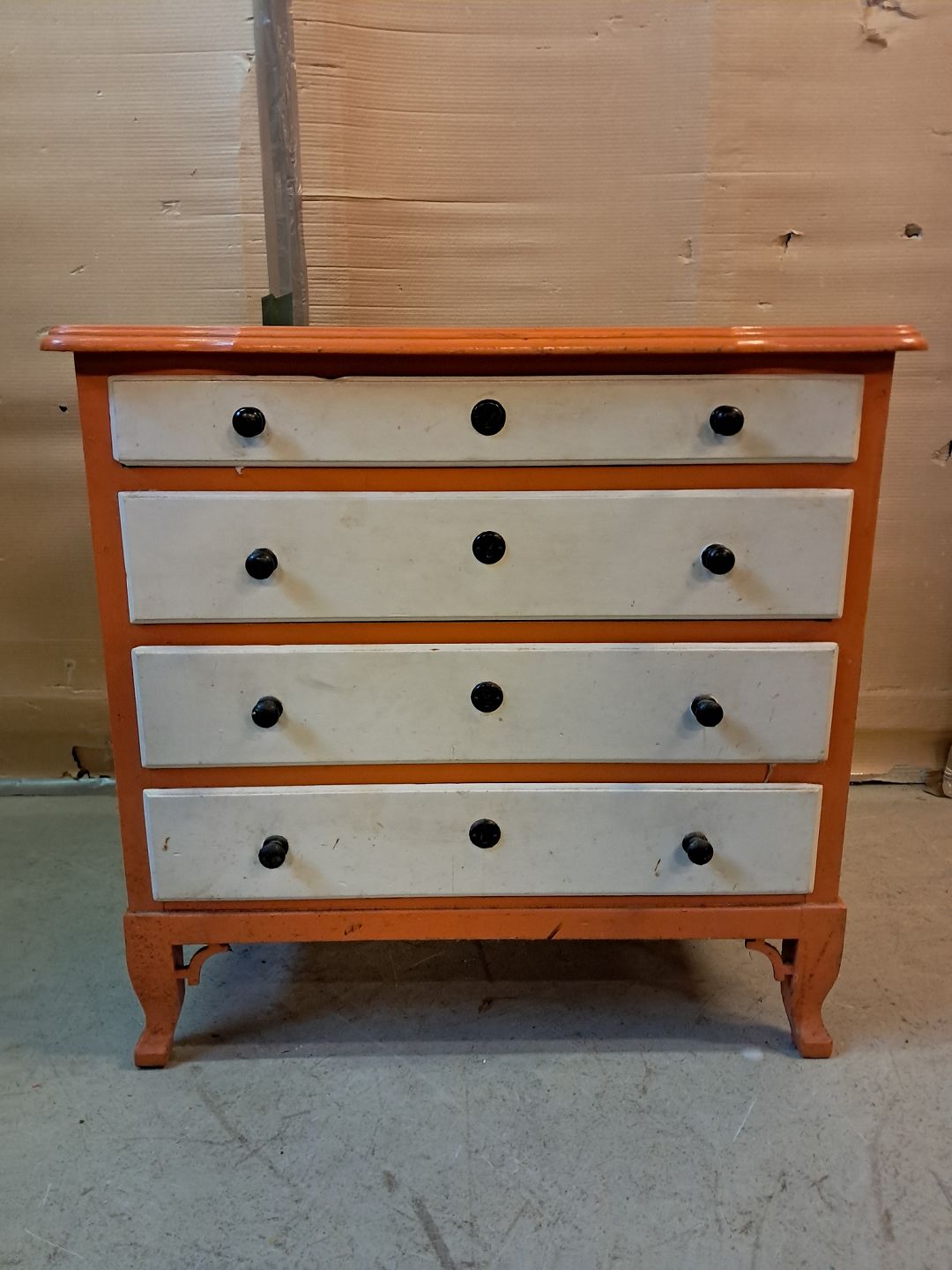 Malet kommode fra 1930erne. Den har brugsspor og trænger til at blive peppet op. Højde 72cm Bredde 75cm Dybde 43cm Emne nummer: 76225