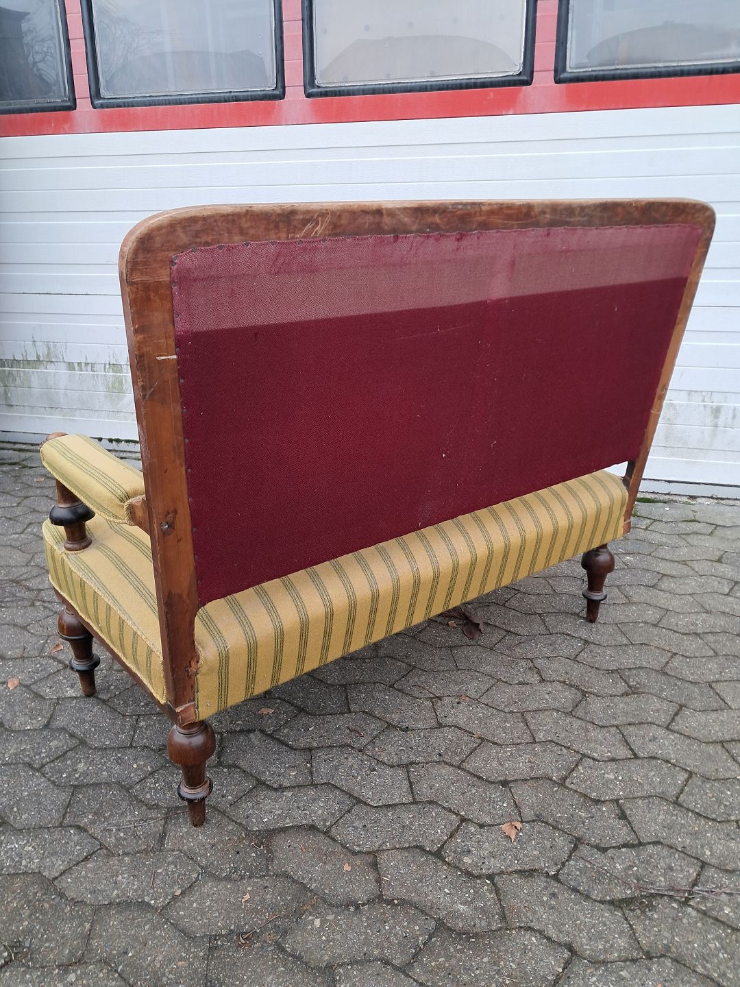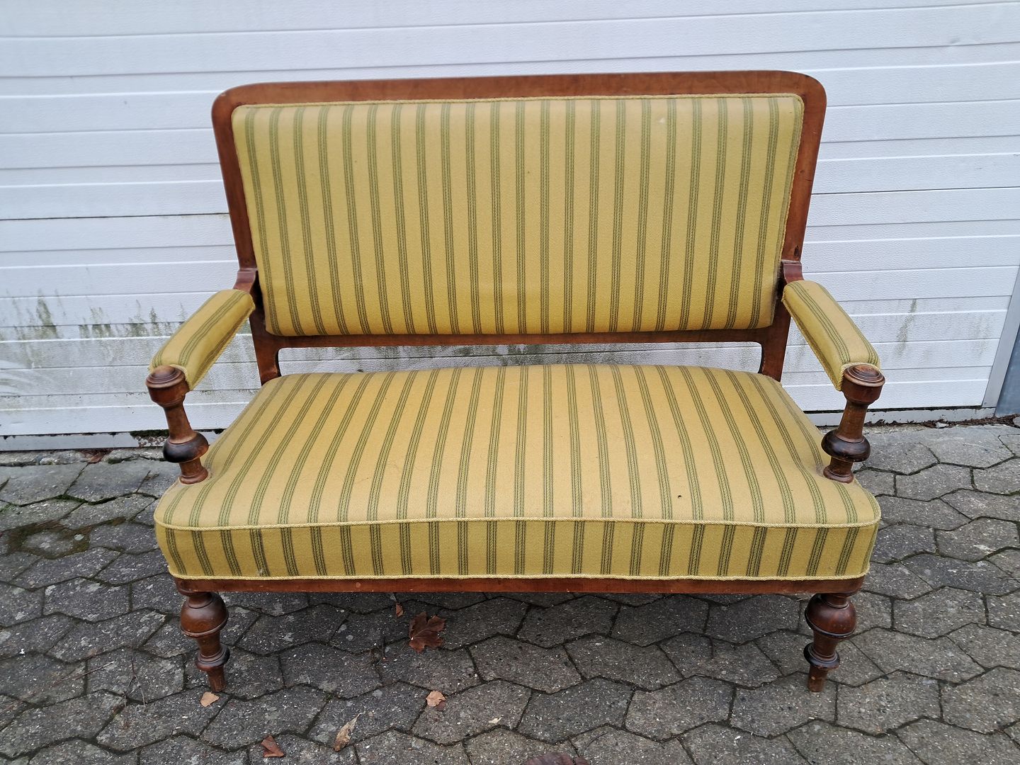 Salonsofa i fineret mahogni, fra 1900erne. Den har brugsspor og en defekt gjord.(se foto) Ryghøjde 101cm Sædehøjde 44cm Bredde 120cm Dybde 64cm Emne nummer: 76226