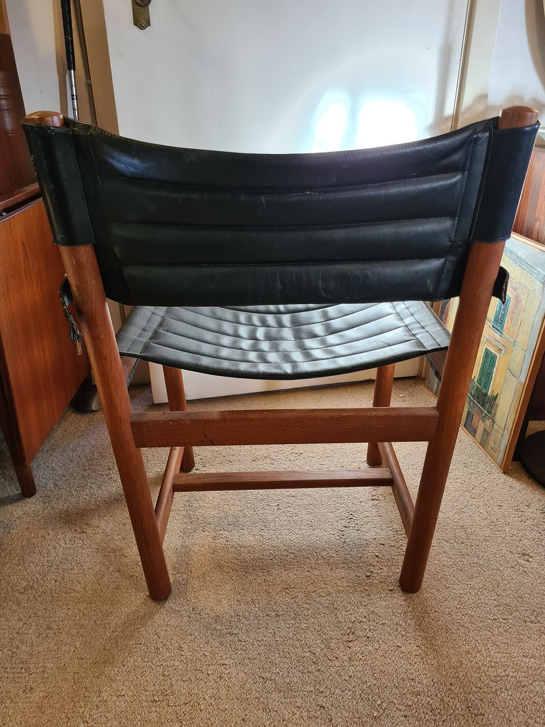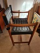 Ditte og Adrian Heath armstol model J 102 udført hos FDB ca. 1970'erne. Produceret i massiv egetræ betrukket med sort læder. Pæn brugt stand, dog er stroppen på ryglænet defekt (se foto) Mål: 80 cm. B. 58 cm. D. 48 cm. SH. 43 cm. Emne nummer: 80656