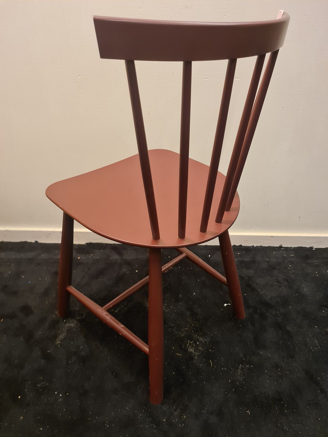 Poul Volther pindestol i lakeret bøg, produceret hos FDB af nyere dato. Brugt stand, fremstår med slitage og gnave mærker på tværpind. Mål: H. 79 cm. B. 41 cm. D. 46 cm. SH. 45 cm. Emne nummer: 80698