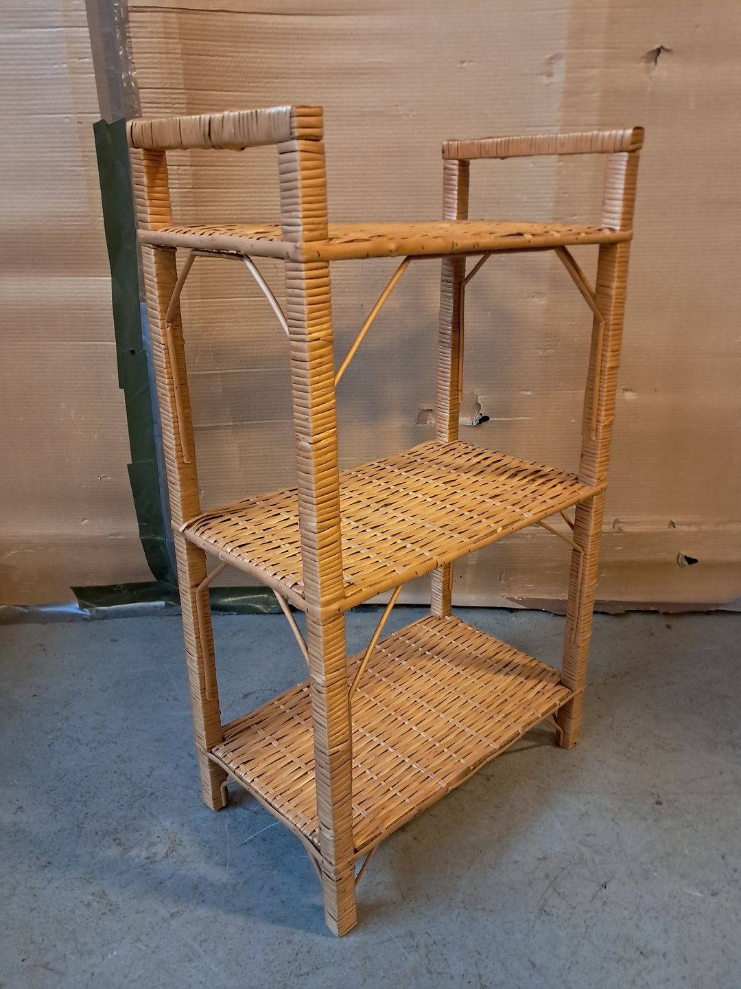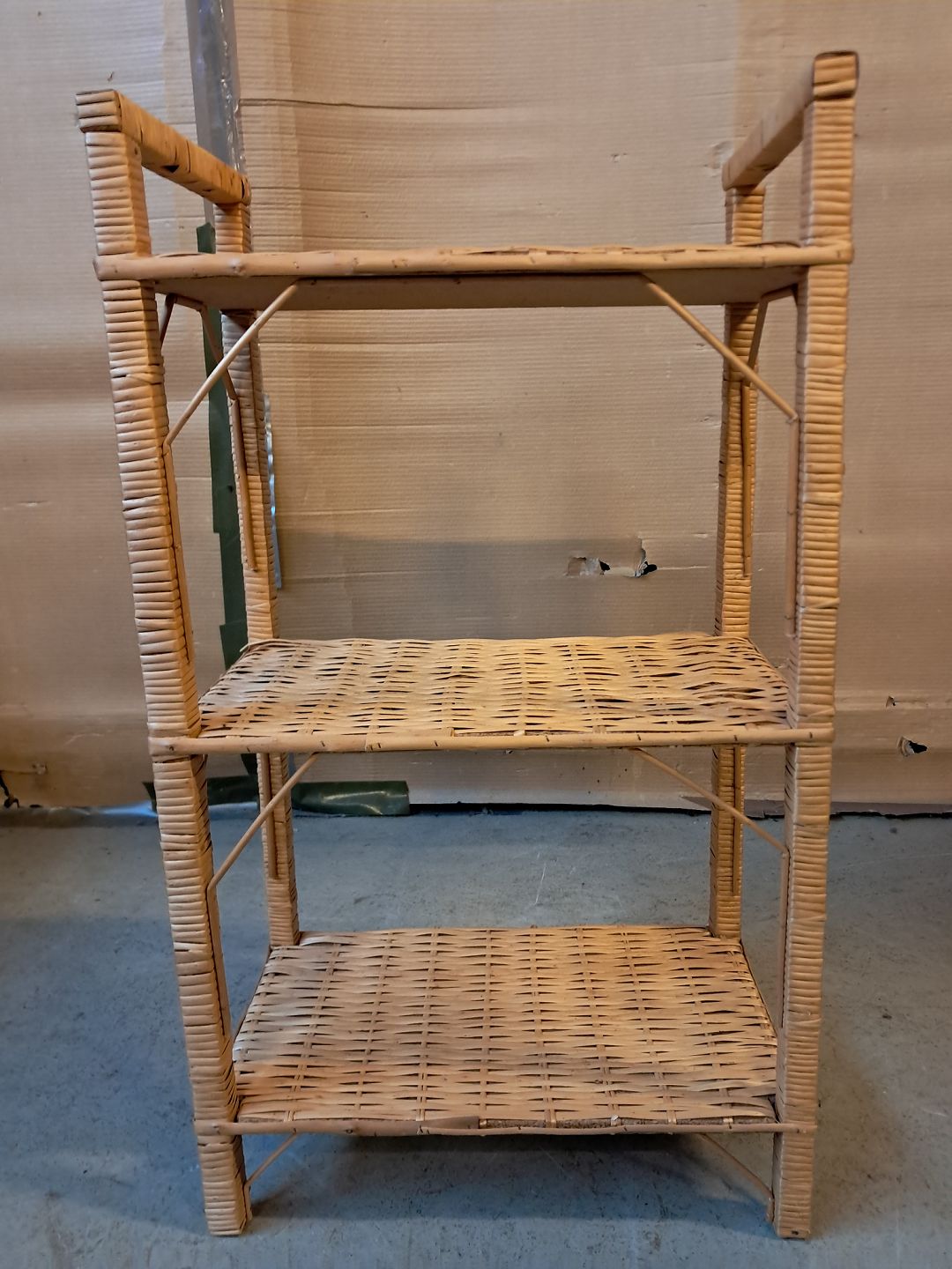 Reol med kurveflet, fra 2000erne. Den har brugsspor. Højde 76cm Bredde 42cm Dybde 25cm Emne nummer: 76264