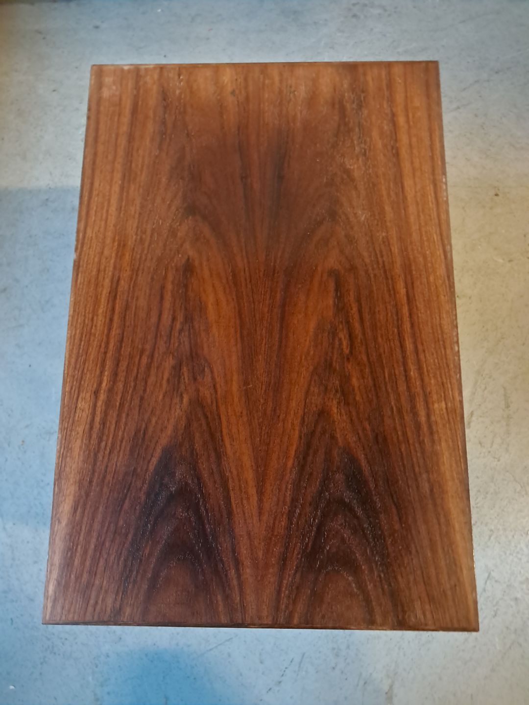 Lampebord i fineret palisander, fra 1960erne. Det har brugsspor. Højde 46cm Bredde 37cm Længde 55cm Emne nummer: 76265