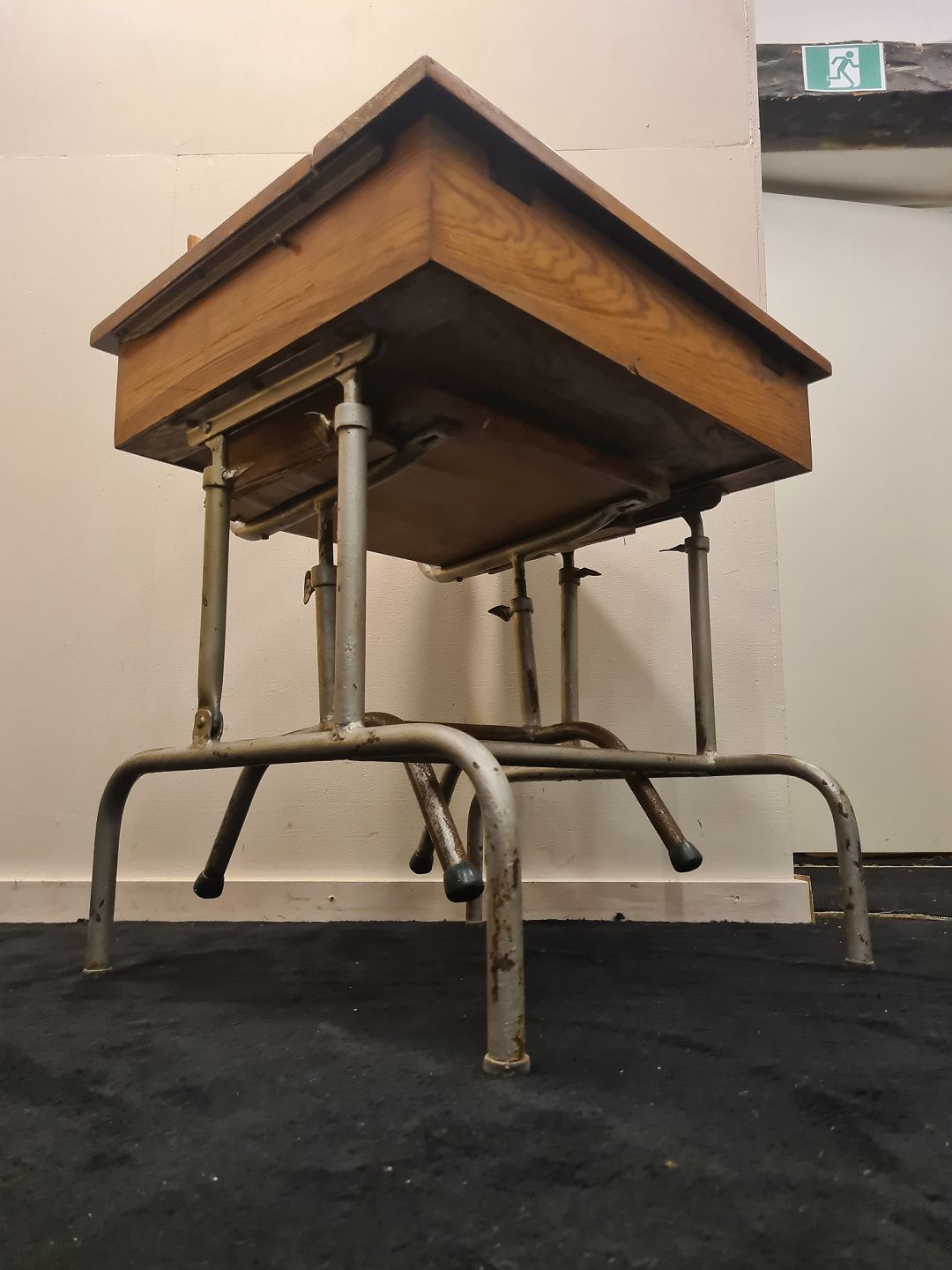 Svensk produceret skoleelevsæt fra 1960'erne i fyr og metal. Fremstår med brugsspor i form af overfladeslid og klistermærker på træet og overfladerust på metallet. Ellers ganske stabilt og udmærket funktionsdygtigt.
