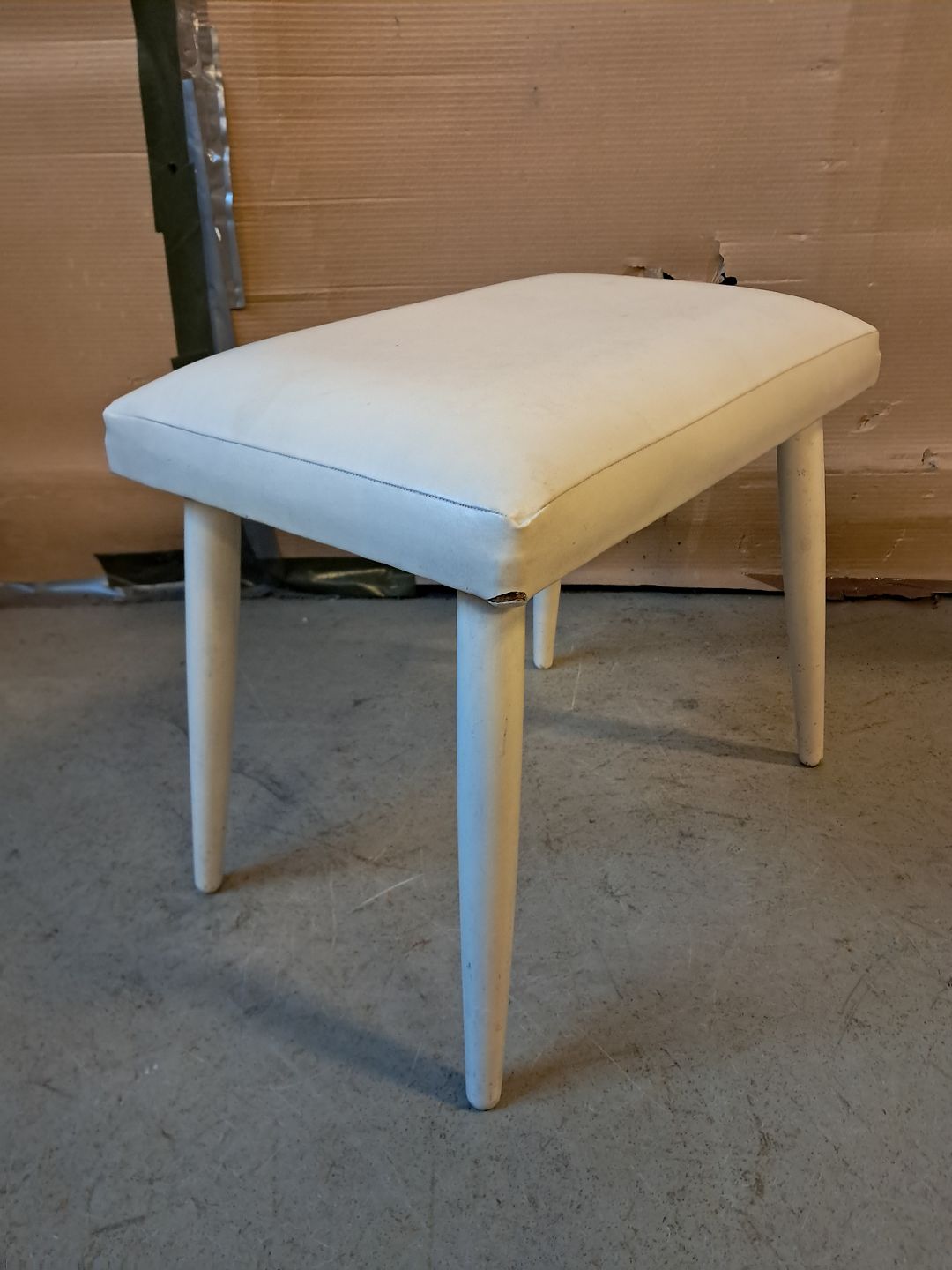 Malet skammel med kunstlæder, fra 1960erne. Den har brugsspor og en defekt.(se foto) Højde 38cm Bredde 30cm Længde 45cm Emne nummer: 76292