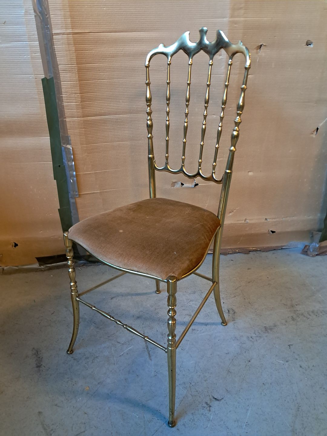Stol i massivt messing, fra 1980erne. Den har brugsspor. Ryghøjde 93cm Sædehøjde 44cm Emne nummer: 76441