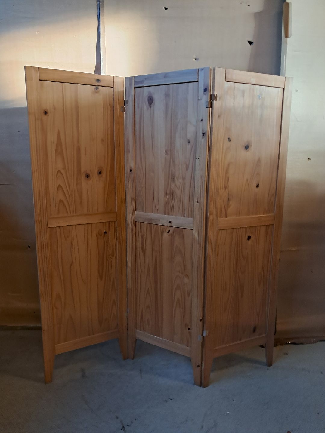 Skærm i massivt fyrretræ, fra 1990erne. Den har brugsspor. Højde 170cm Bredde 50cm Total bredde 150cm Emne nummer: 76457
