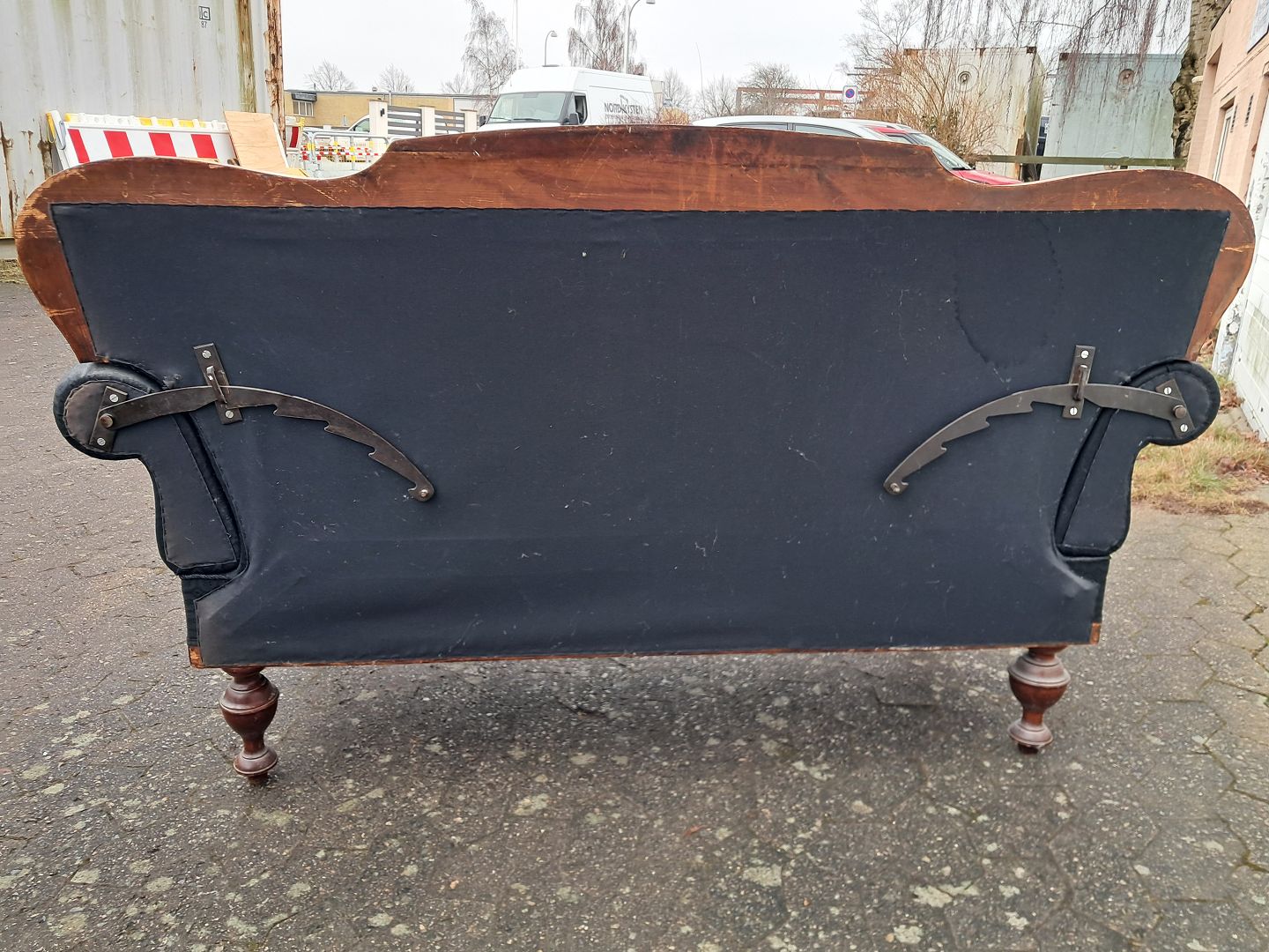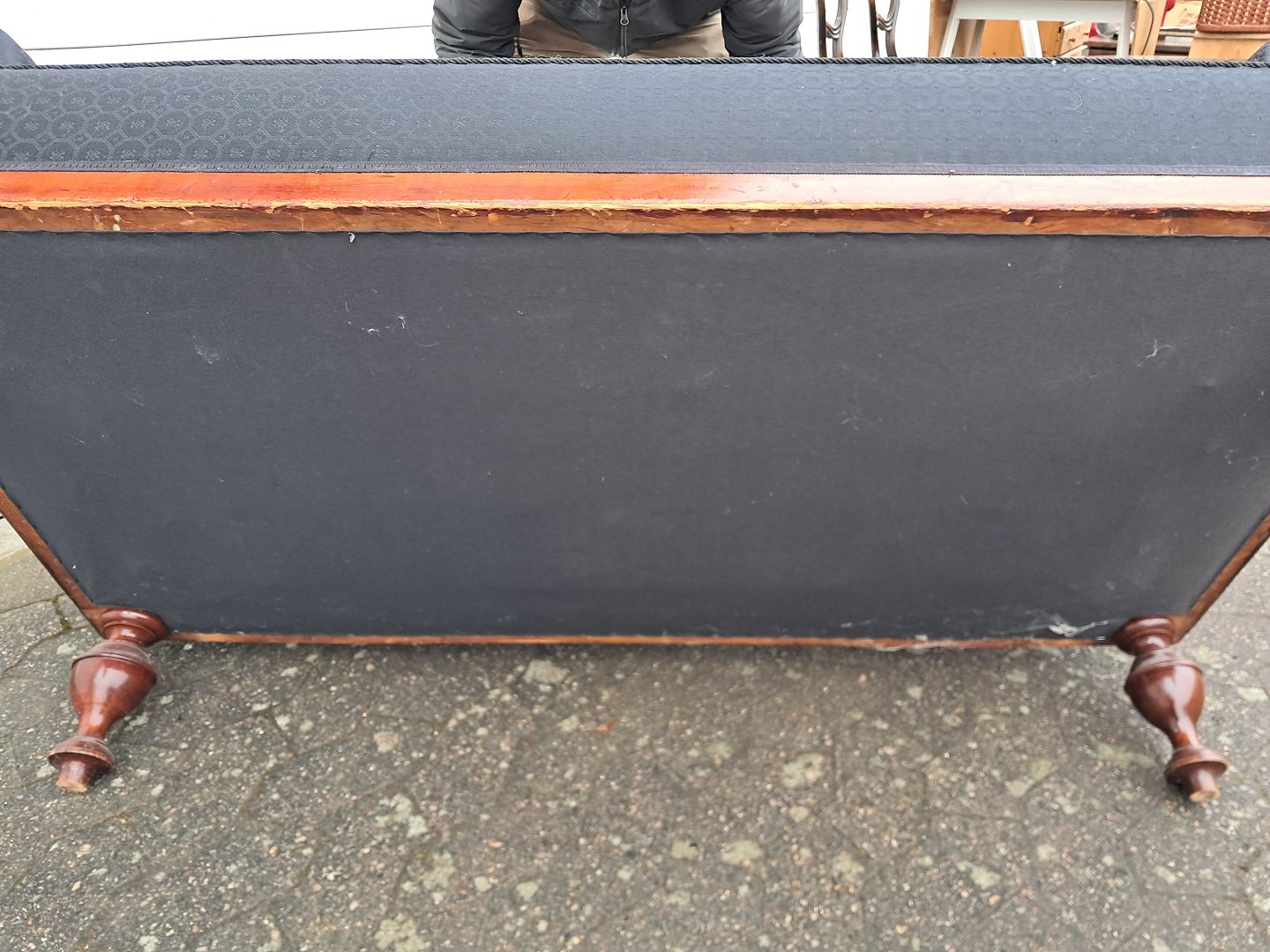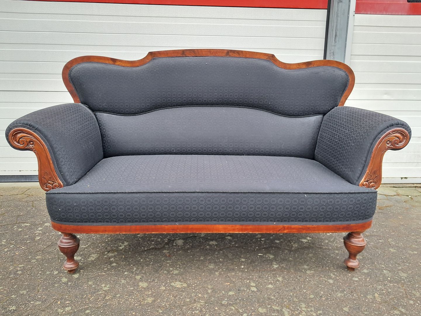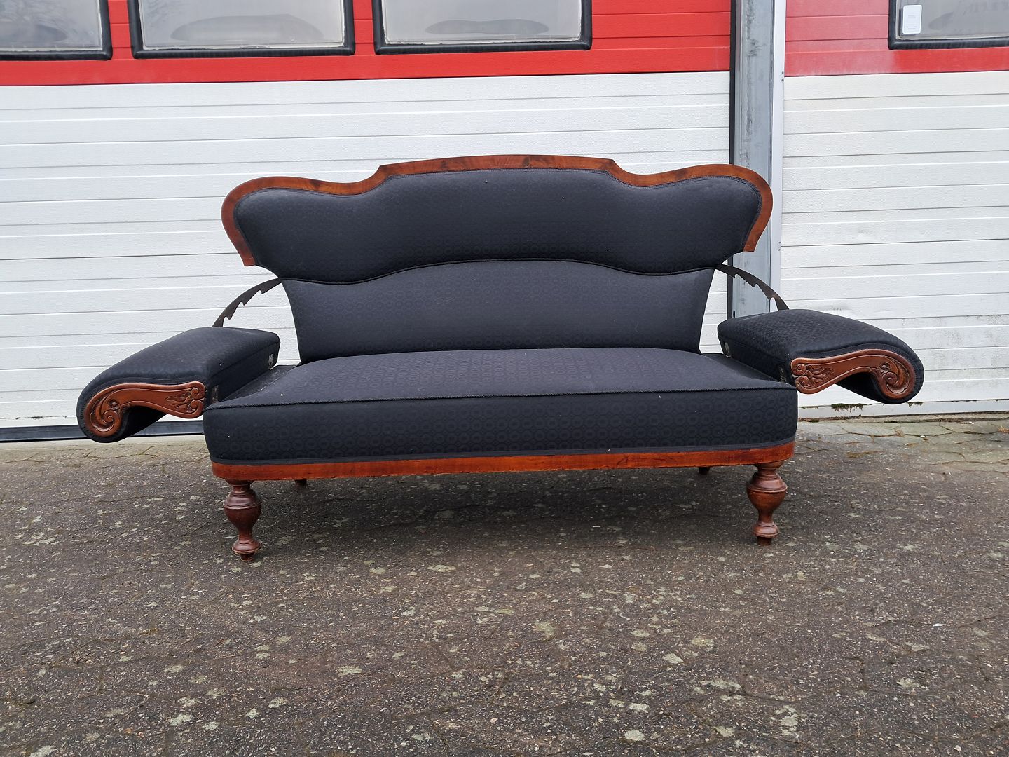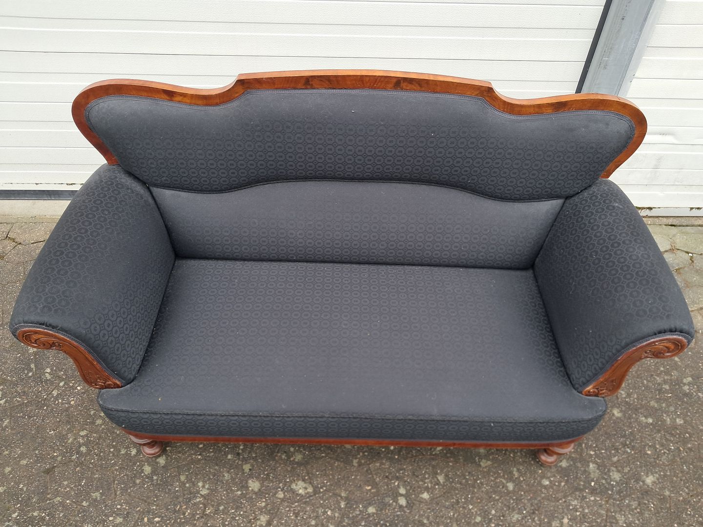 Salonsofa i fineret mahogni, fra 1900erne. Den har brugsspor. Ryghøjde 95cm Sædehøjde 40cm Bredde 162cm Dybde 64cm Emne nummer: 76489