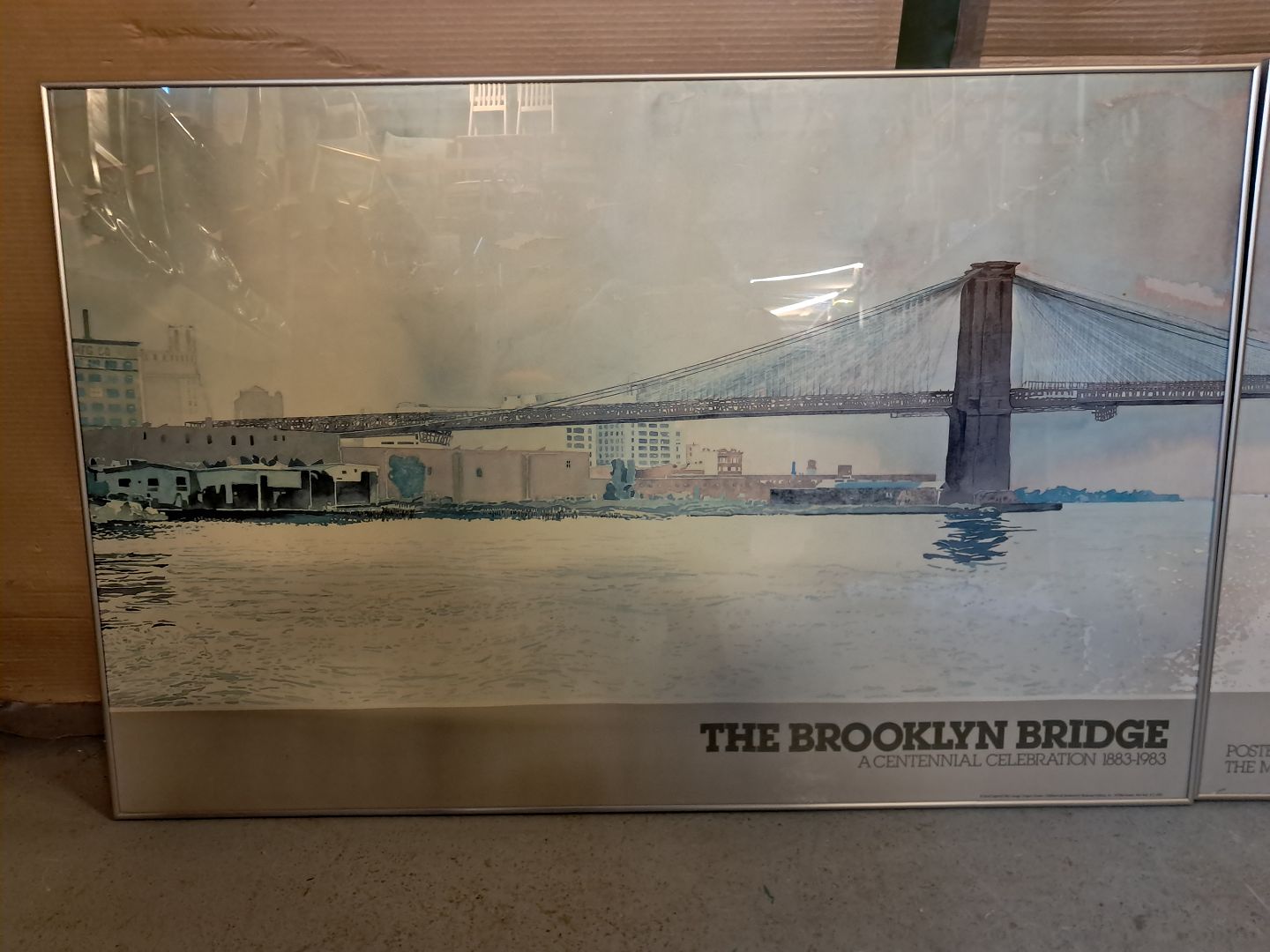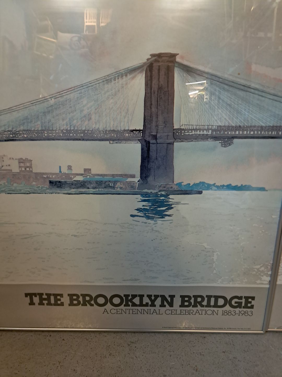 Brooklyn bridge delt i to plakater i aluramme, fra 1990erne. Højde 66cm Bredde 100cm Total bredde 200cm Emne nummer: 76502