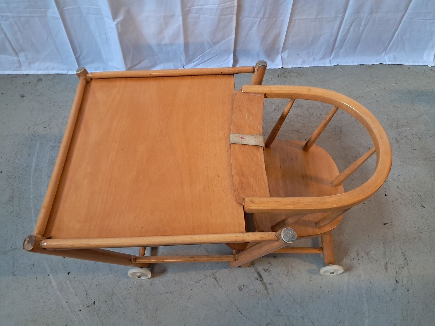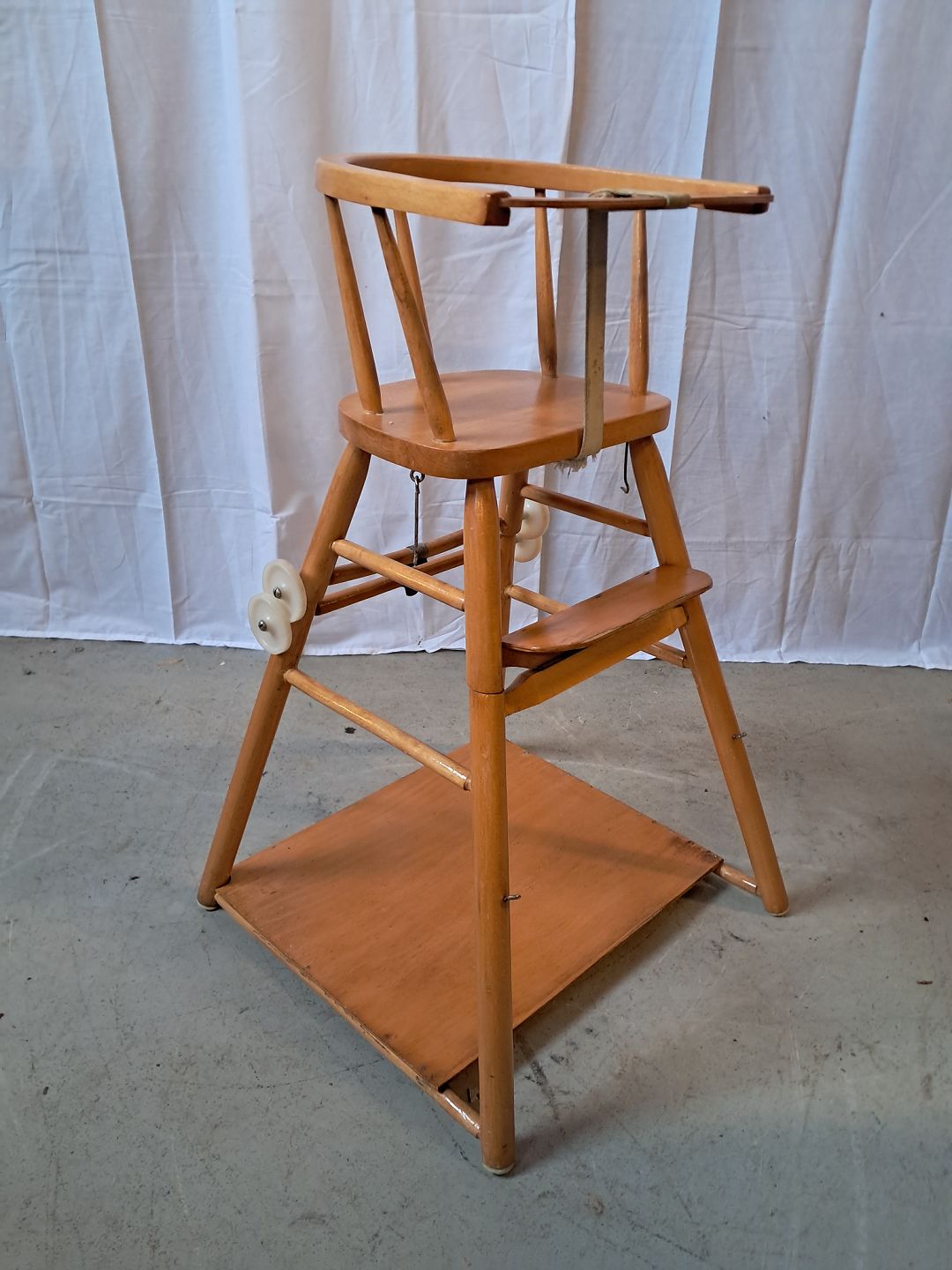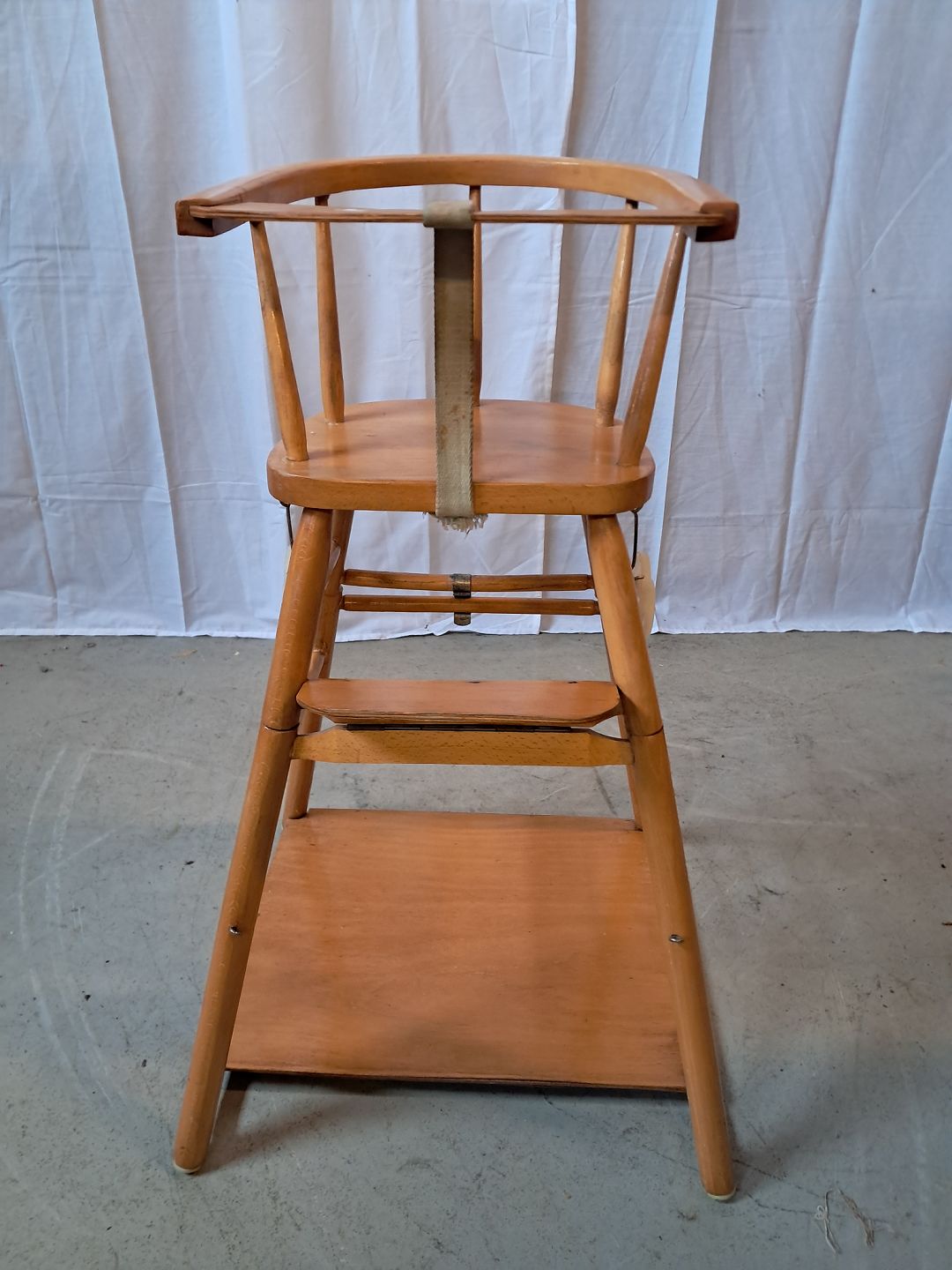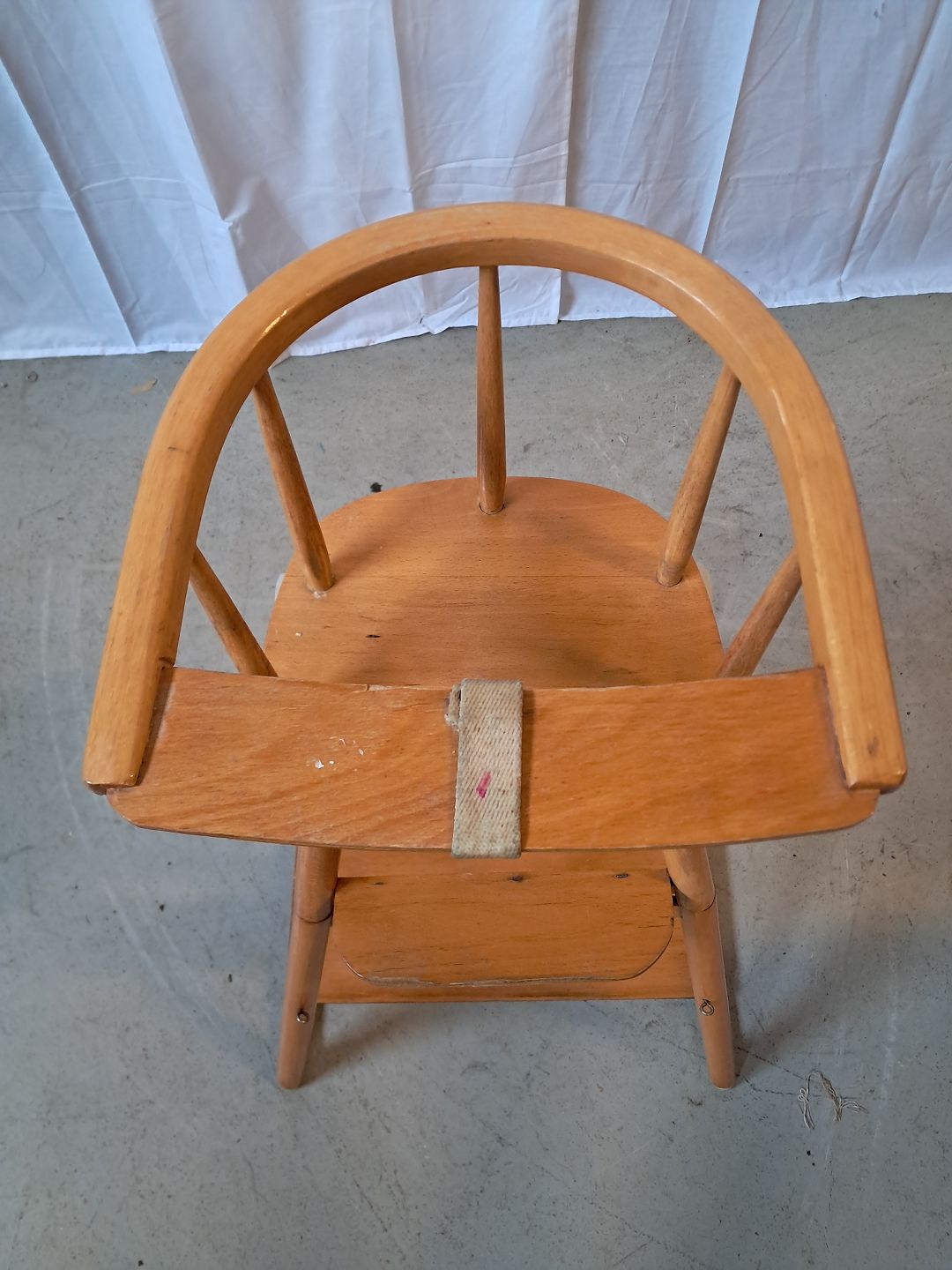 Barnestol i massivt bøgetræ, fra 1950erne. Den har brugsspor og skal limes. Ryghøjde 80cm Sædehøjde 60cm Emne nummer: 76521