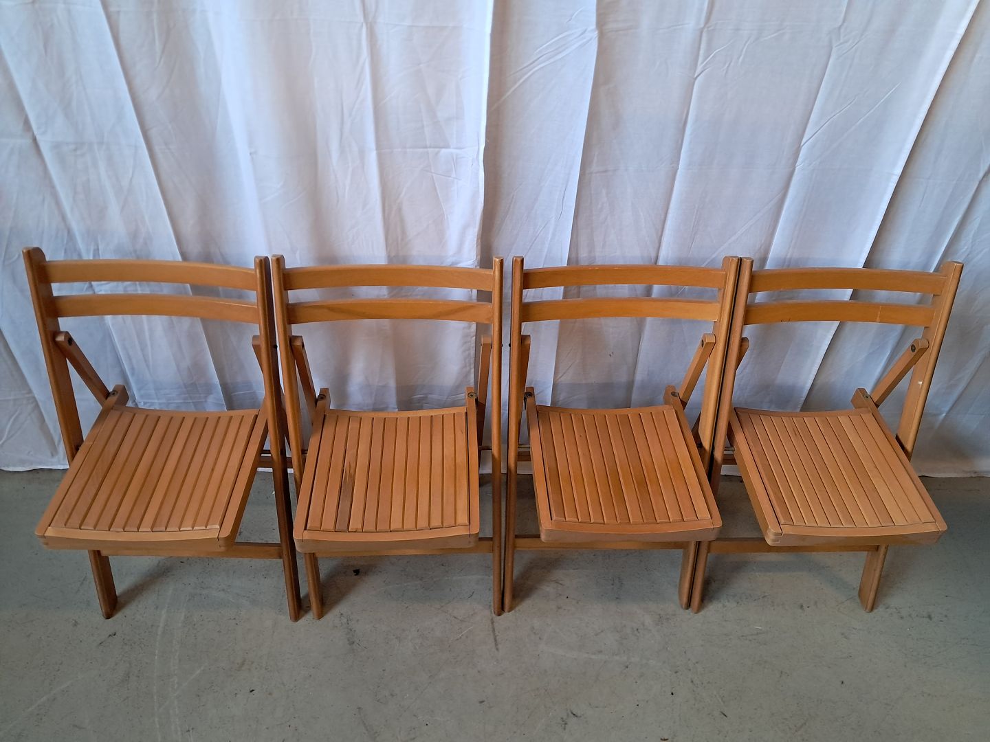 4 Klapstole i massivt bøgetræ, fra 1960erne. De har brugsspor. Ryghøjde 84cm Sædehøjde 45cm Emne nummer: 76522