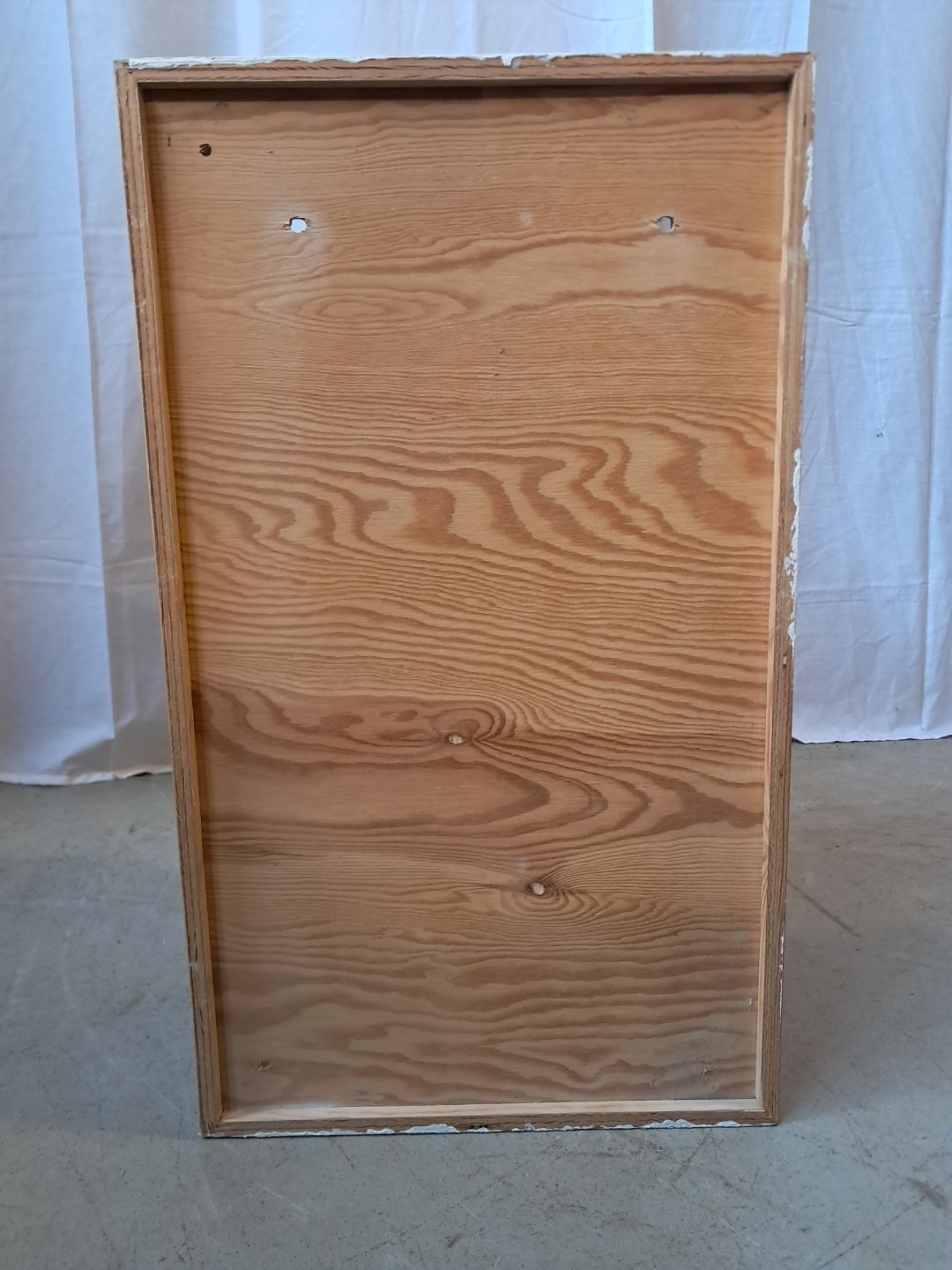 Bogkasse i krydsfiner, fra 1990erne. Den har brugsspor og der medfølger ikke ophæng. Højde 35cm Bredde 60cm 30cm Emne nummer: 76540
