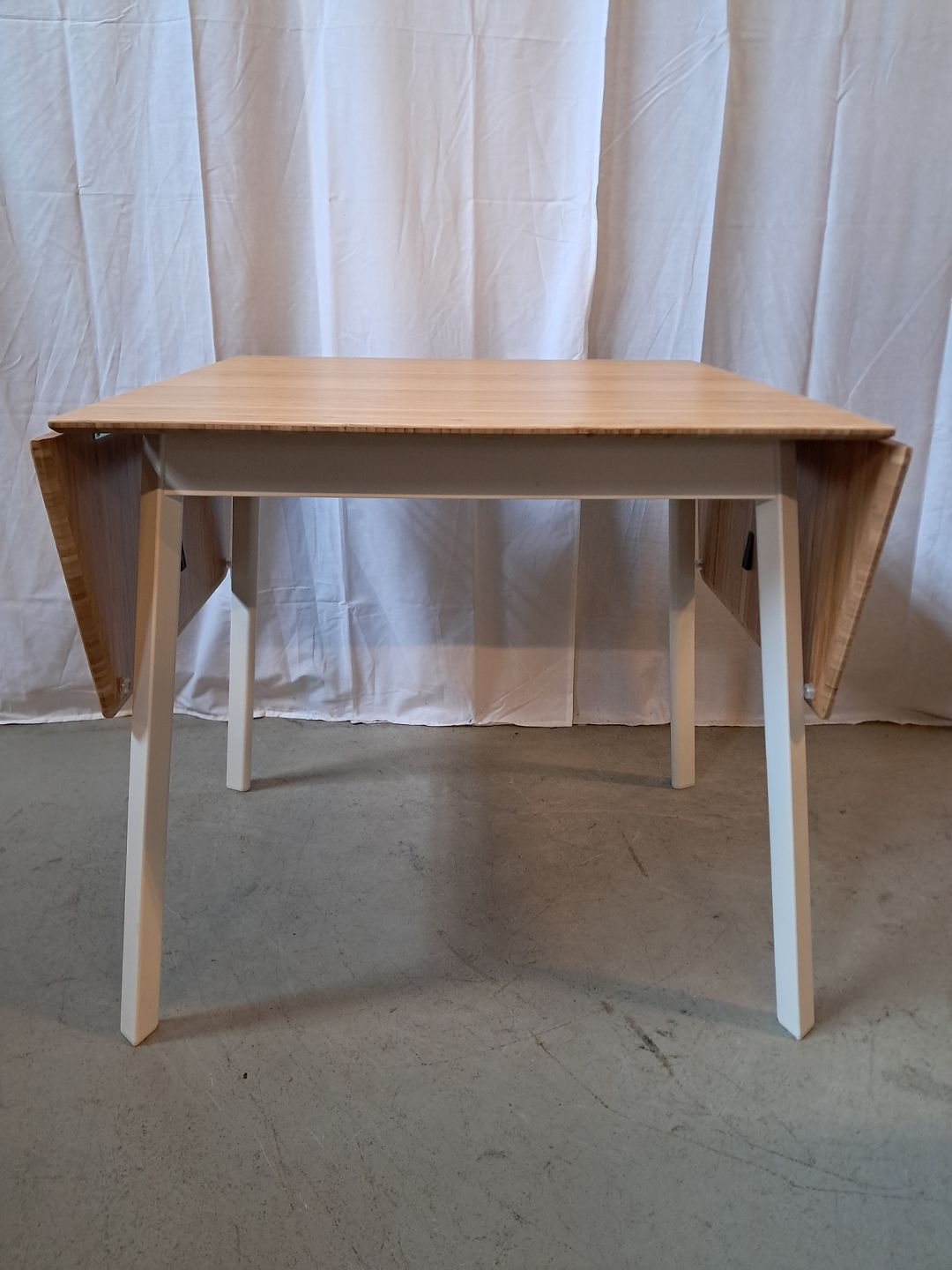Bord med klapper i metal og bambus, fra 2010erne. Det har små brugsspor. Højde 73cm Bredde 80cm Længde 74cm Længde med klapper 138cm Emne nummer: 76543