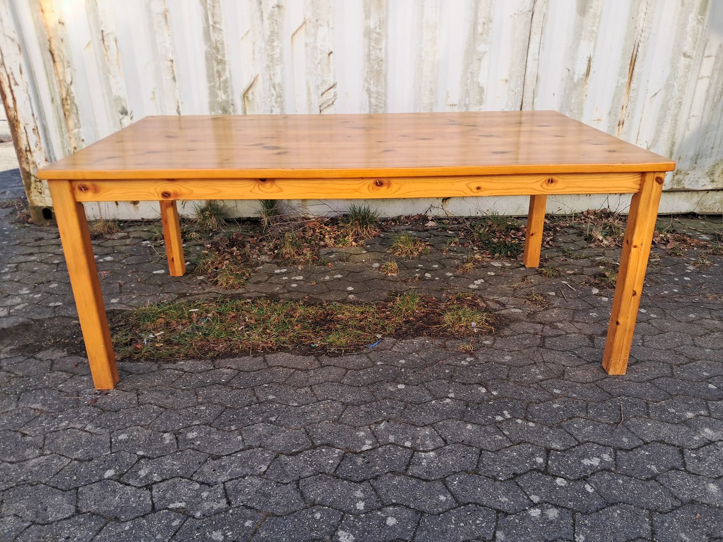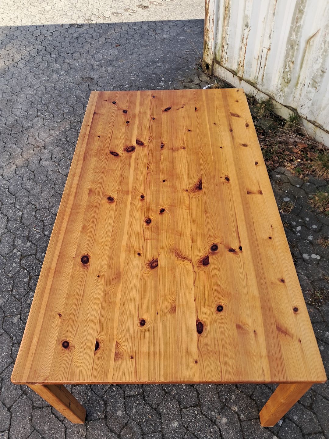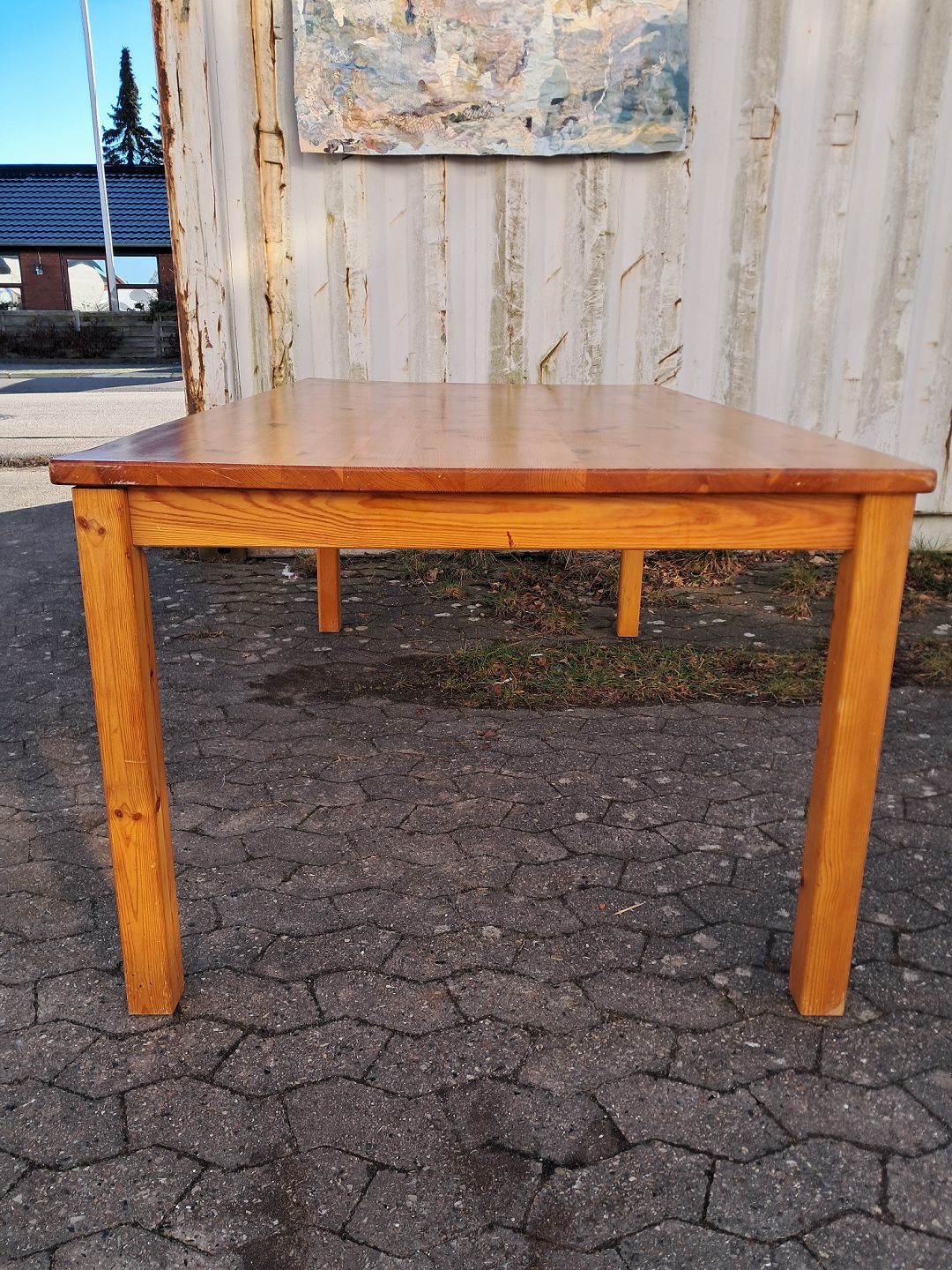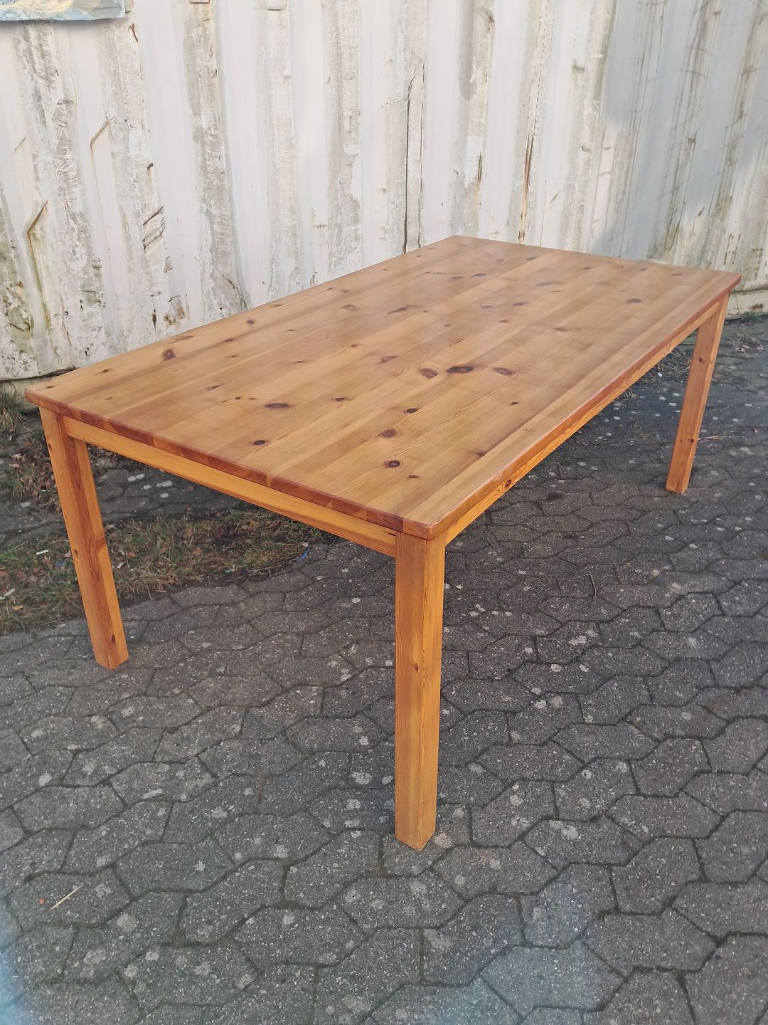 Bord i massivt fyrretræ, fra 1990erne. Det har brugsspor. Højde 74cm Bredde 100cm Længde 180cm Emne nummer: 76575