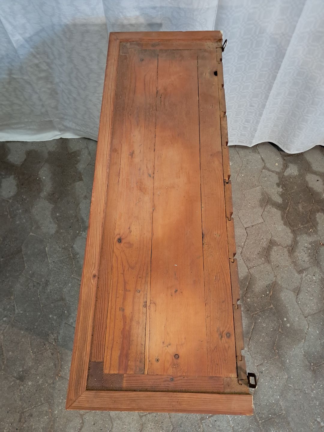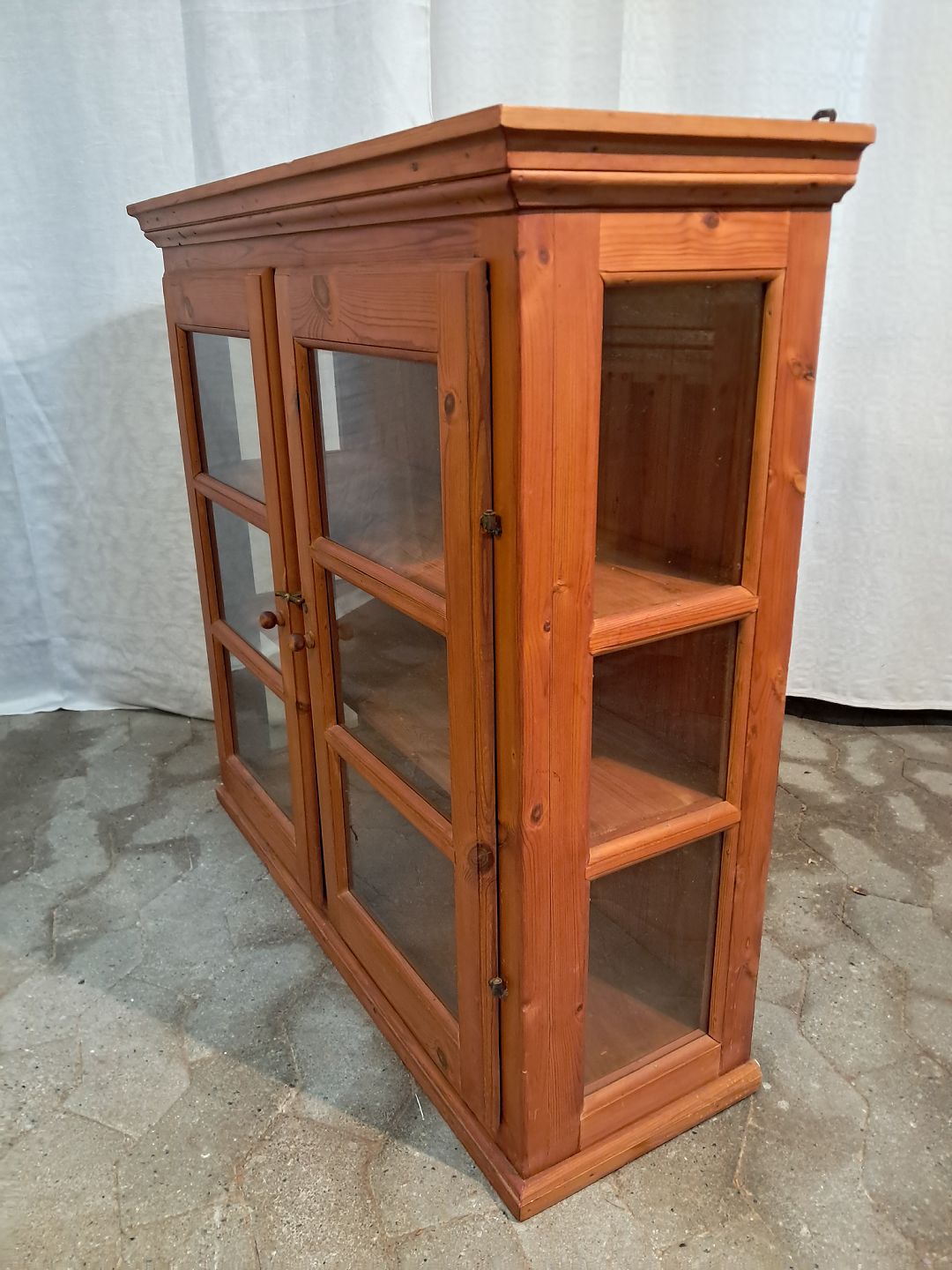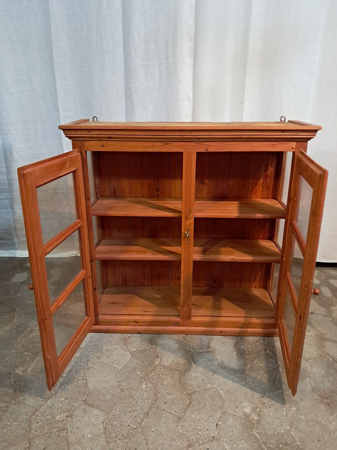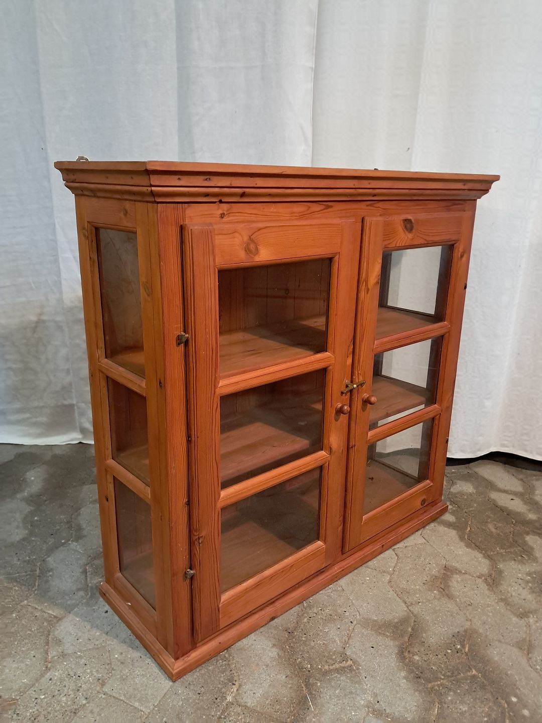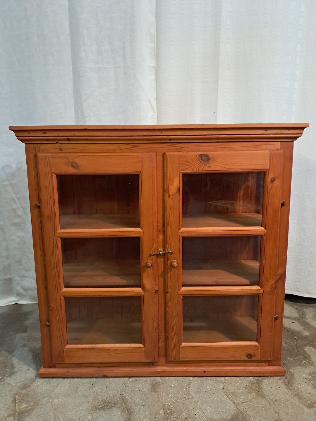 Vægskab i massivt fyrretræ, fra 1970erne. Det har brugsspor. Højde 83cm Bredde 87cm Dybde 30cm Emne nummer: 91463