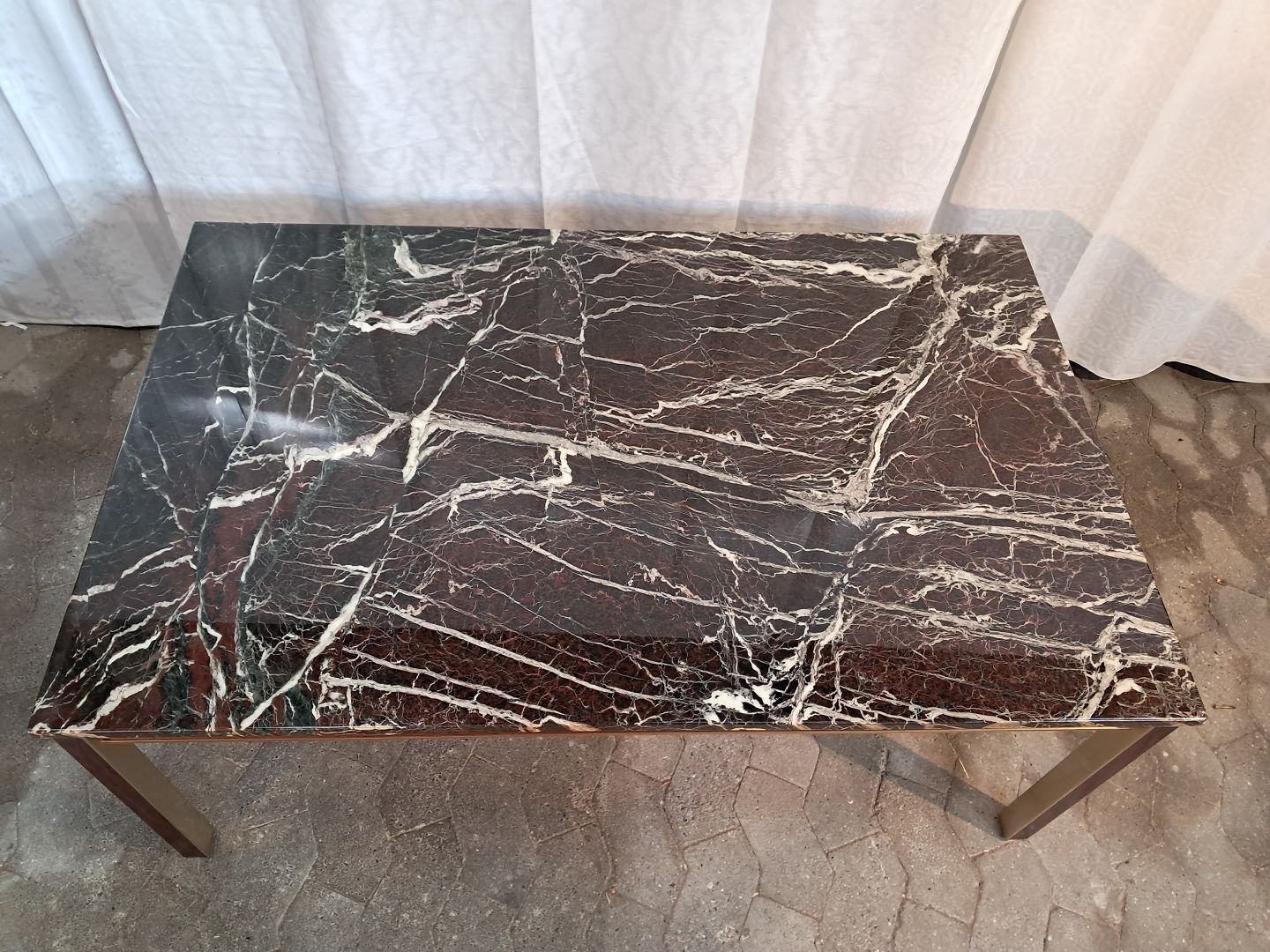 Sofabord i metal og marmor, fra 1990erne. Det har brugsspor. Højde 51cm Bredde 80cm Længde 127cm Emne nummer: 91466