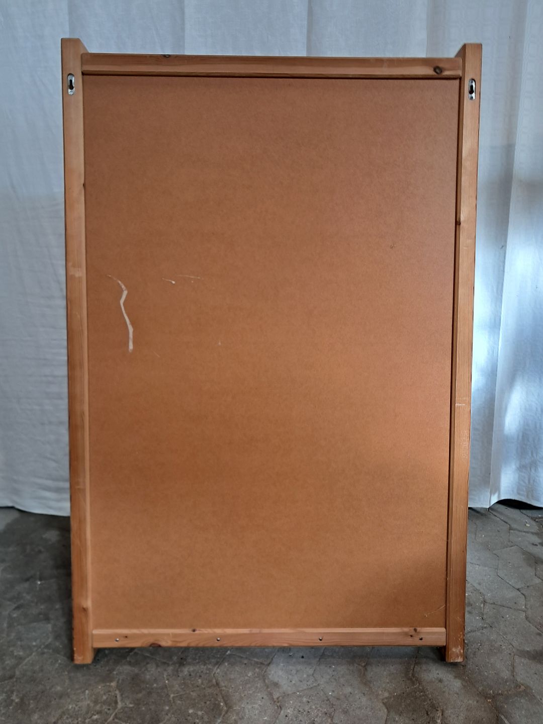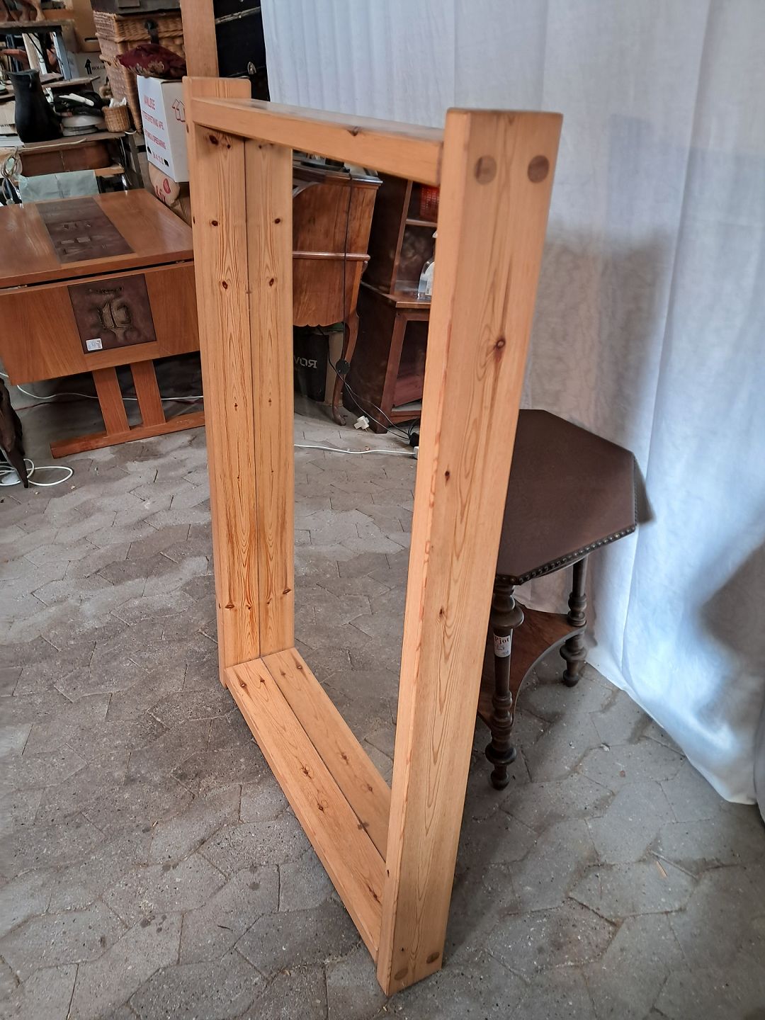 Spejl i massivt fyrretræ, fra 1980erne. Det har brugsspor. Højde 132cm Bredde 86cm Dybde 11cm Emne nummer: 91481