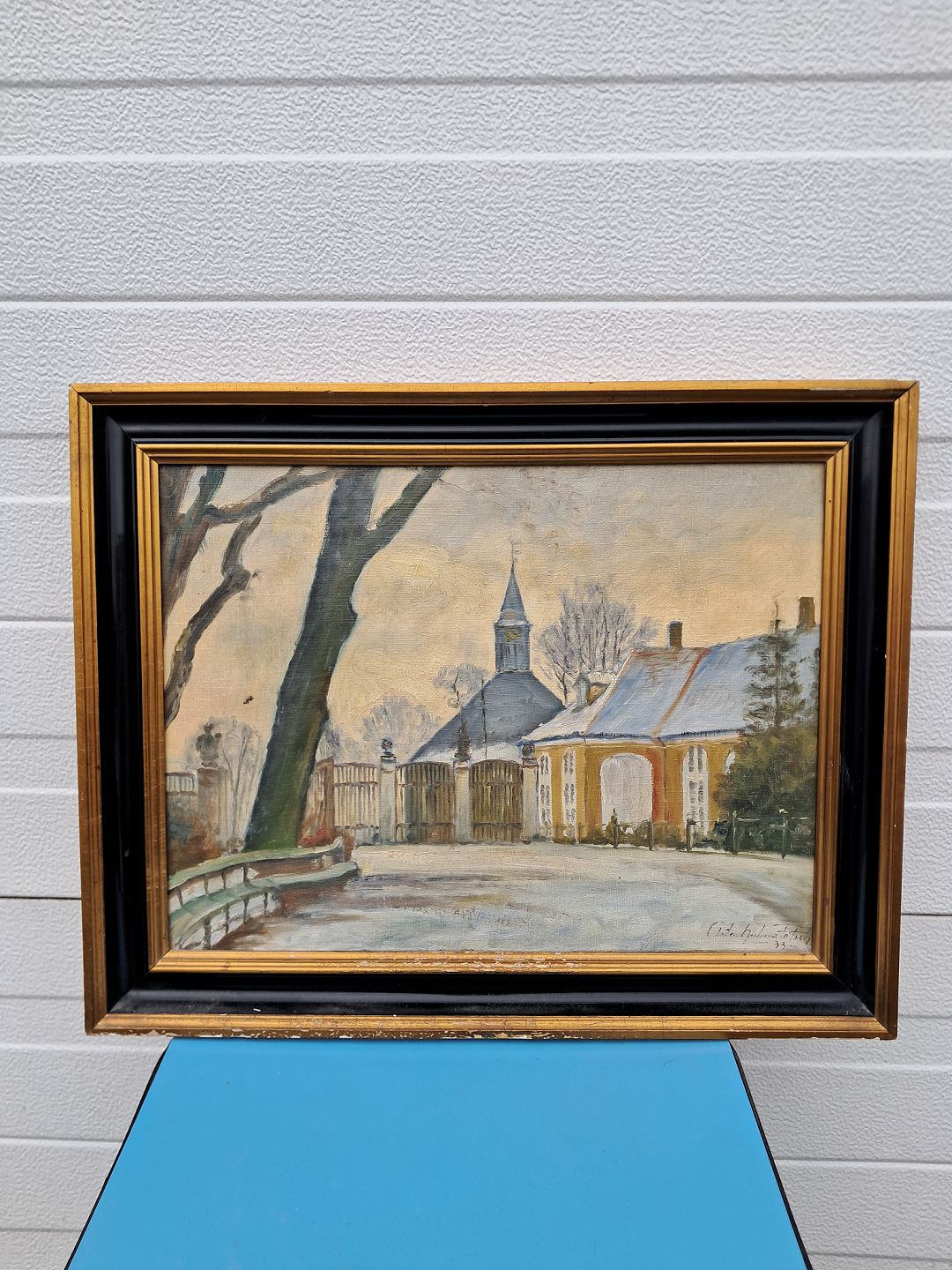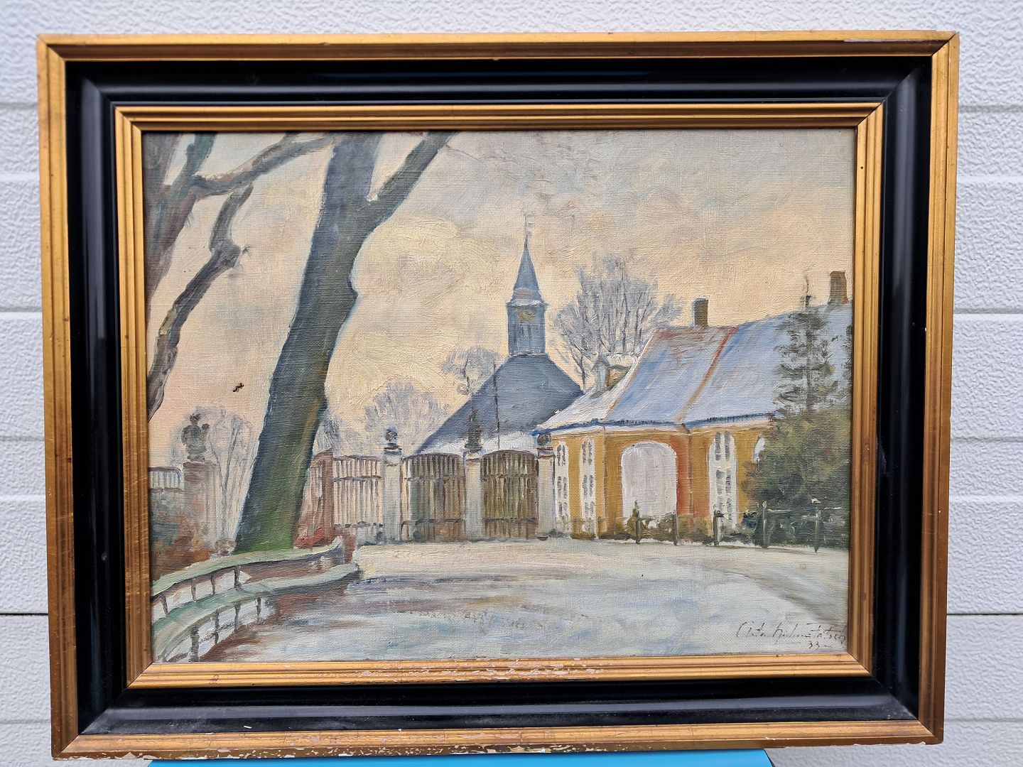 Maleri i guldmalet ramme, fra 1930erne. Det har et lille hul i lærredet. Højde 39cm Bredde 49cm Emne nummer: 76609
