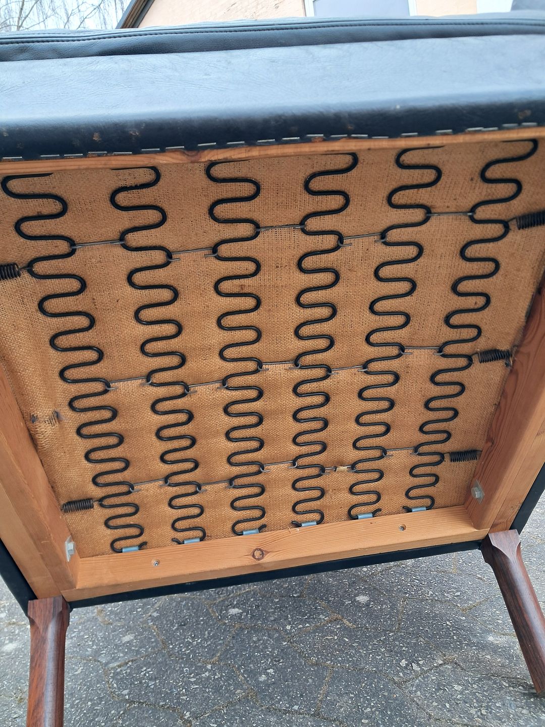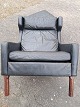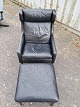 Fritz Hansen øreklapstol med fodskammel i læder, fra 1960erne. De har brugsspor. Ryghøjde 96cm Sædehøjde 42cm Emne nummer: 76621