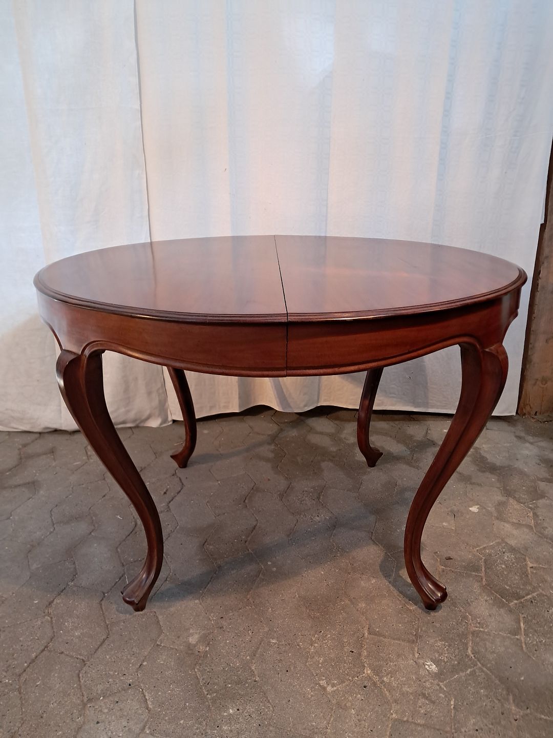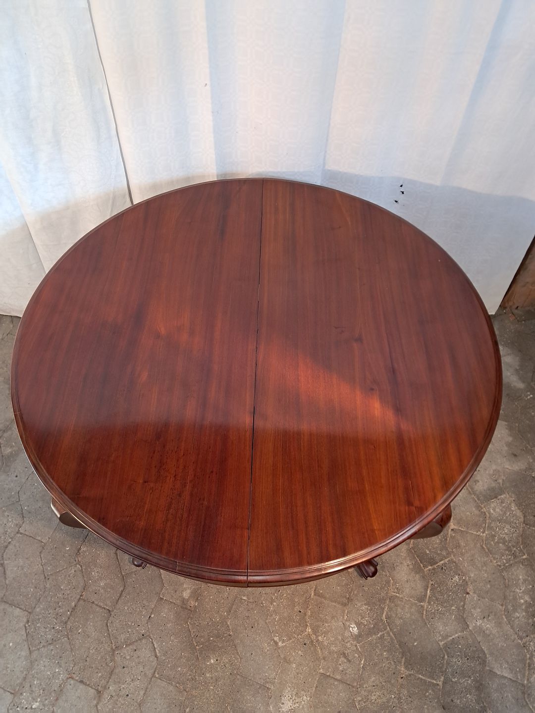 Salondbor i massivt mahogni, fra 1910erne. Det har brugsspor og der medfølger ikke tillægsplader. Højde 72cm Diameter 107cm Emne nummer: 91551