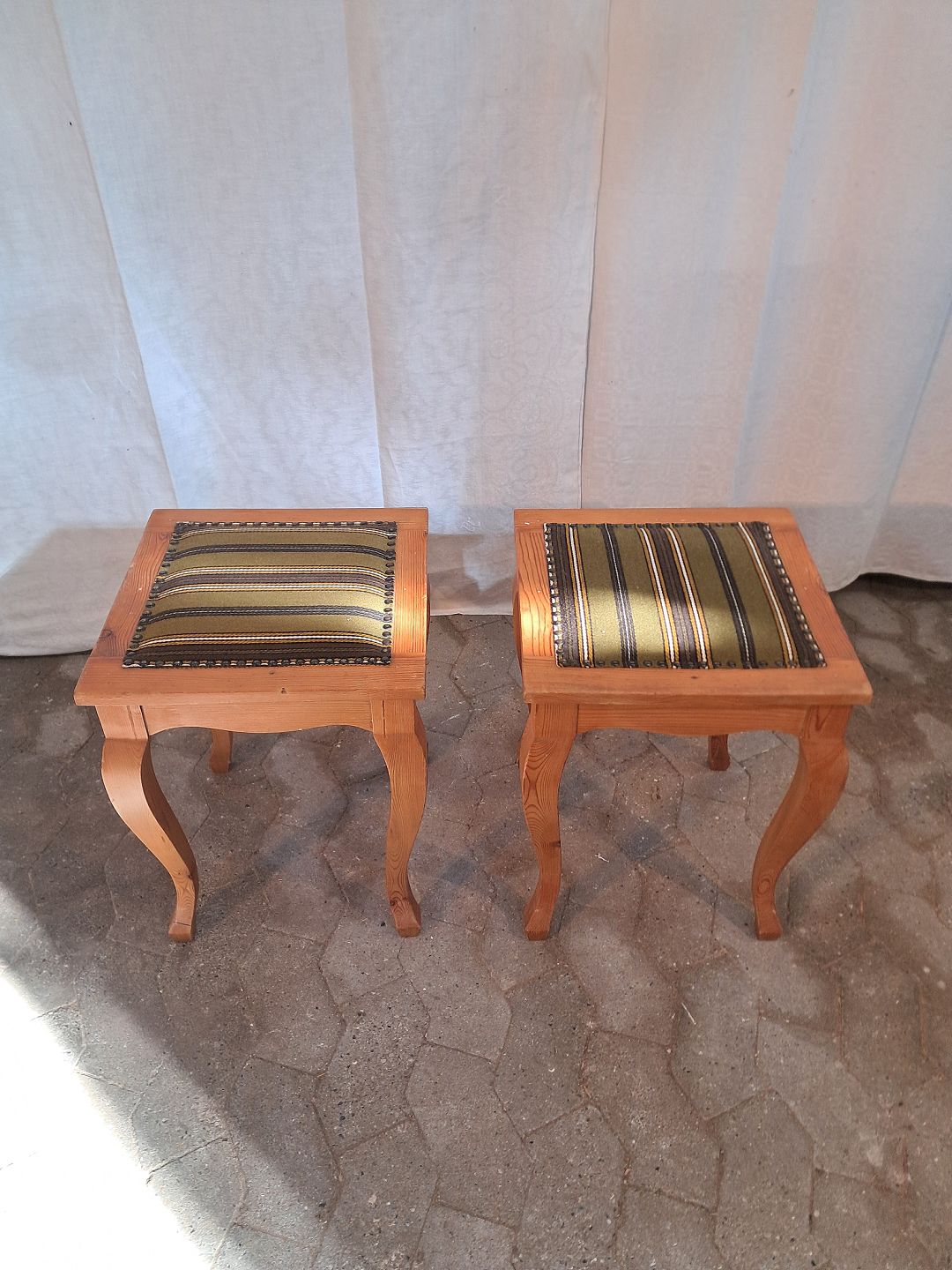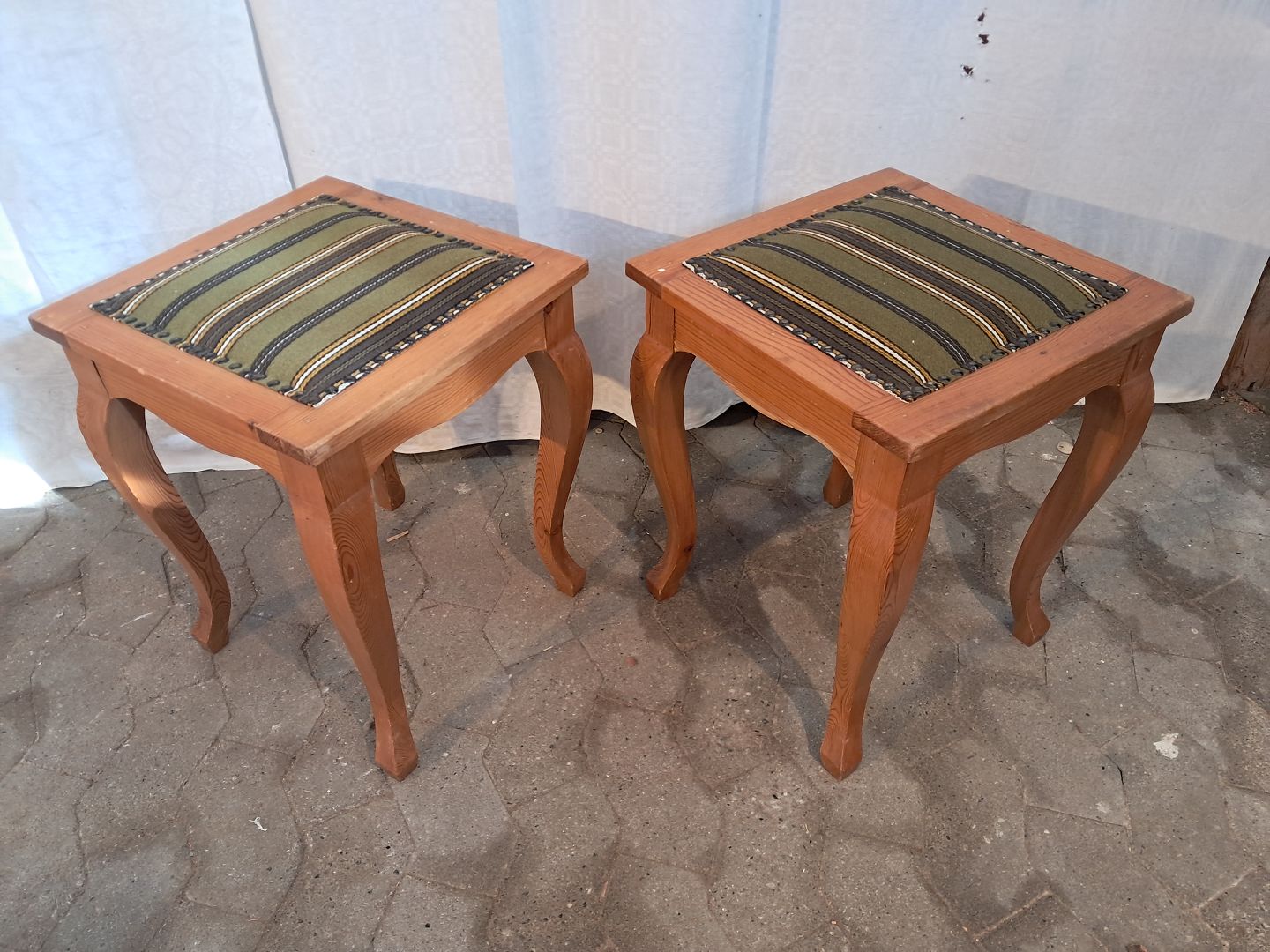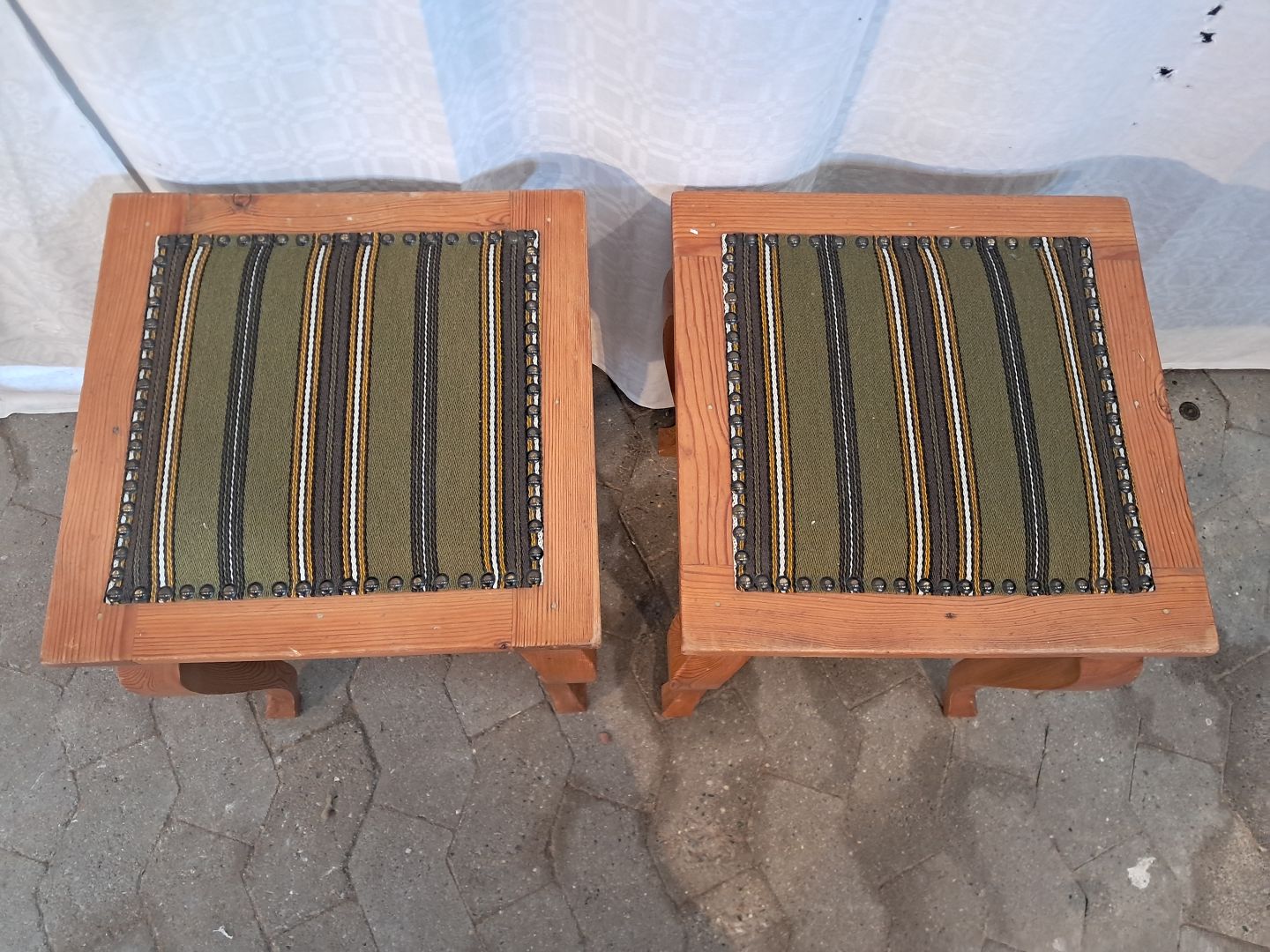 2 Skamler i massivt fyrretræ, fra 1920erne. De har brugsspor. Højde 49cm Bredde 38cm Dybde 38cm Emne nummer: 91552