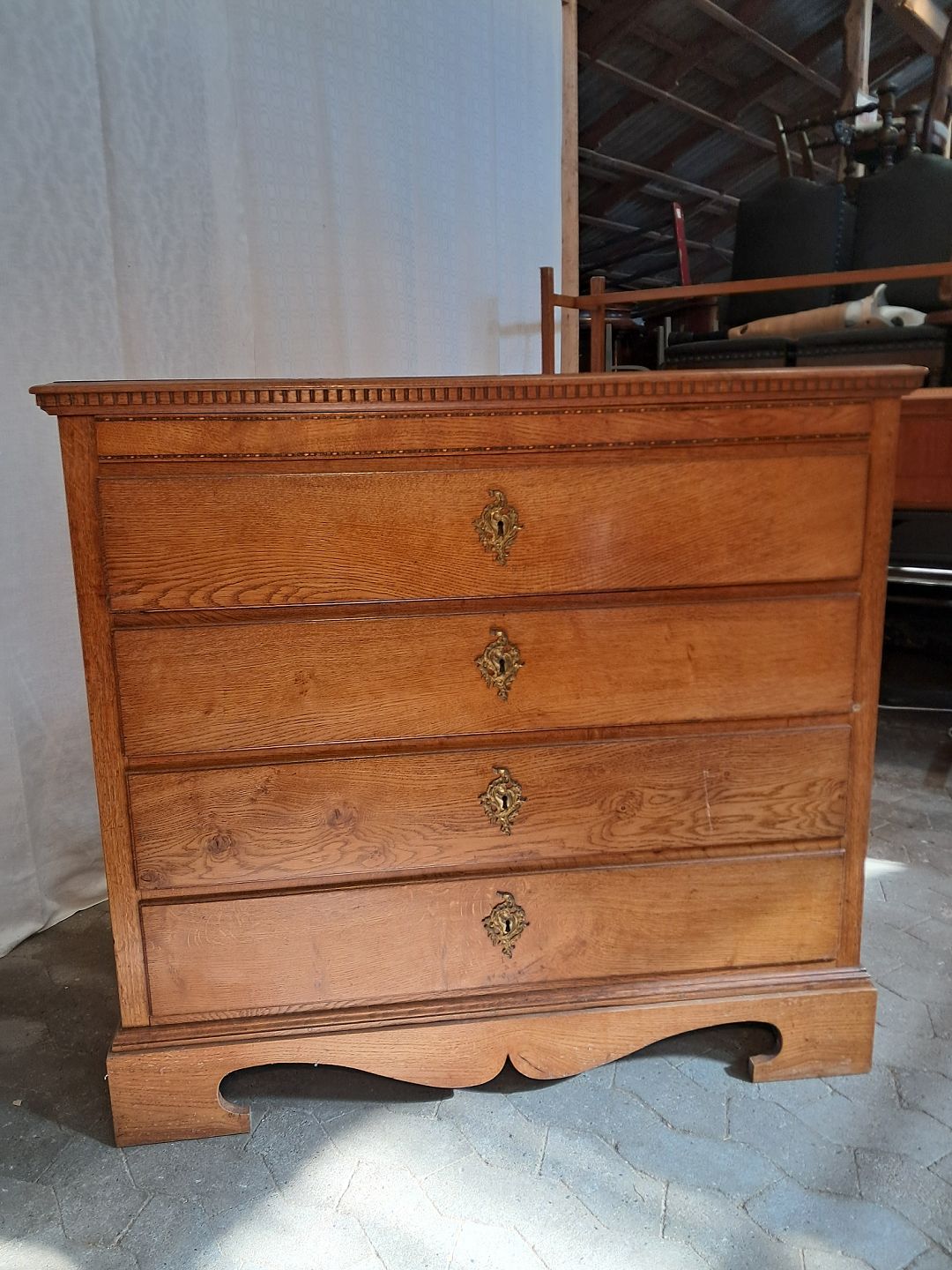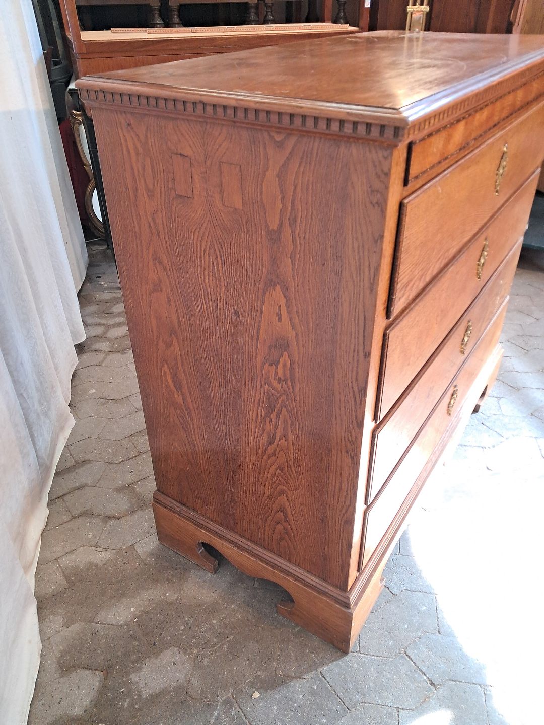 Dragkiste i massivt egetræ, fra 1890erne. Den har brugsspor. Højde 111cm Bredde 1554cm Dybde 55cm Emne nummer: 91560