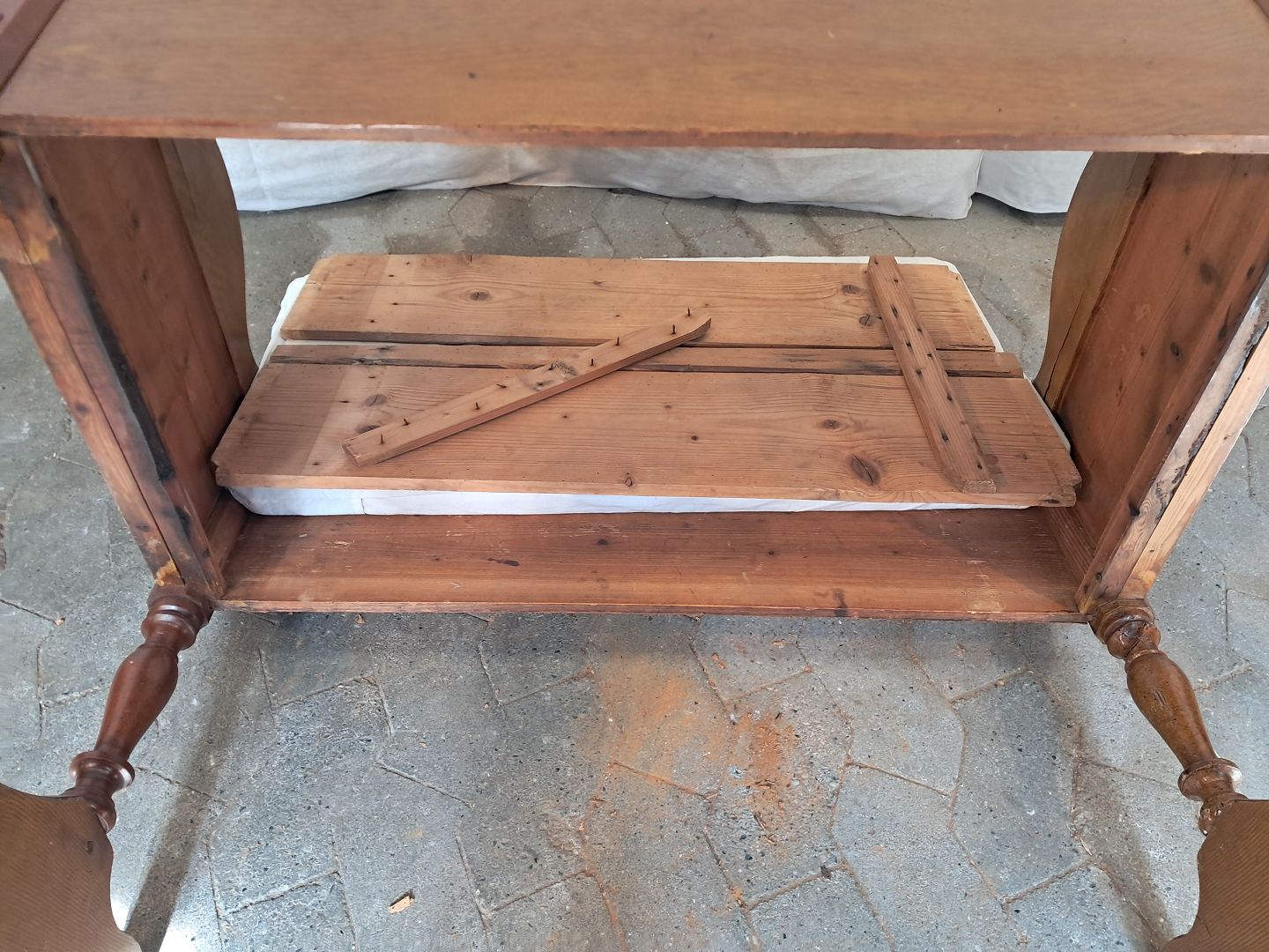 Barneseng / Vugge i massivt fyrretræ, fra 1910erne. Den har patina, men bunden skal repareres. Højde 80cm Bredde 54cm Længde 90cm Madras mål : Bredde 45cm Længde 82cm Emne nummer: 91566