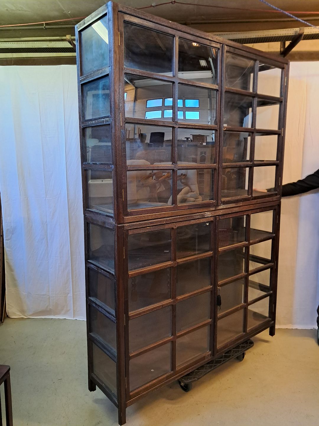 Vitrineskab i egetræ, fra 1990erne. Det har brugsspor og lågerne hænger lidt, dvs. at det drille når det skal lukkes. Det er to delt. Højde 232cm Bredde 168cm Dybde 42cm Emne nummer: 76632