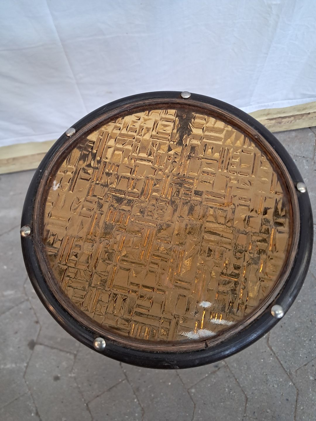 Lille bord i bambus med farvet glas, fra 1990erne.