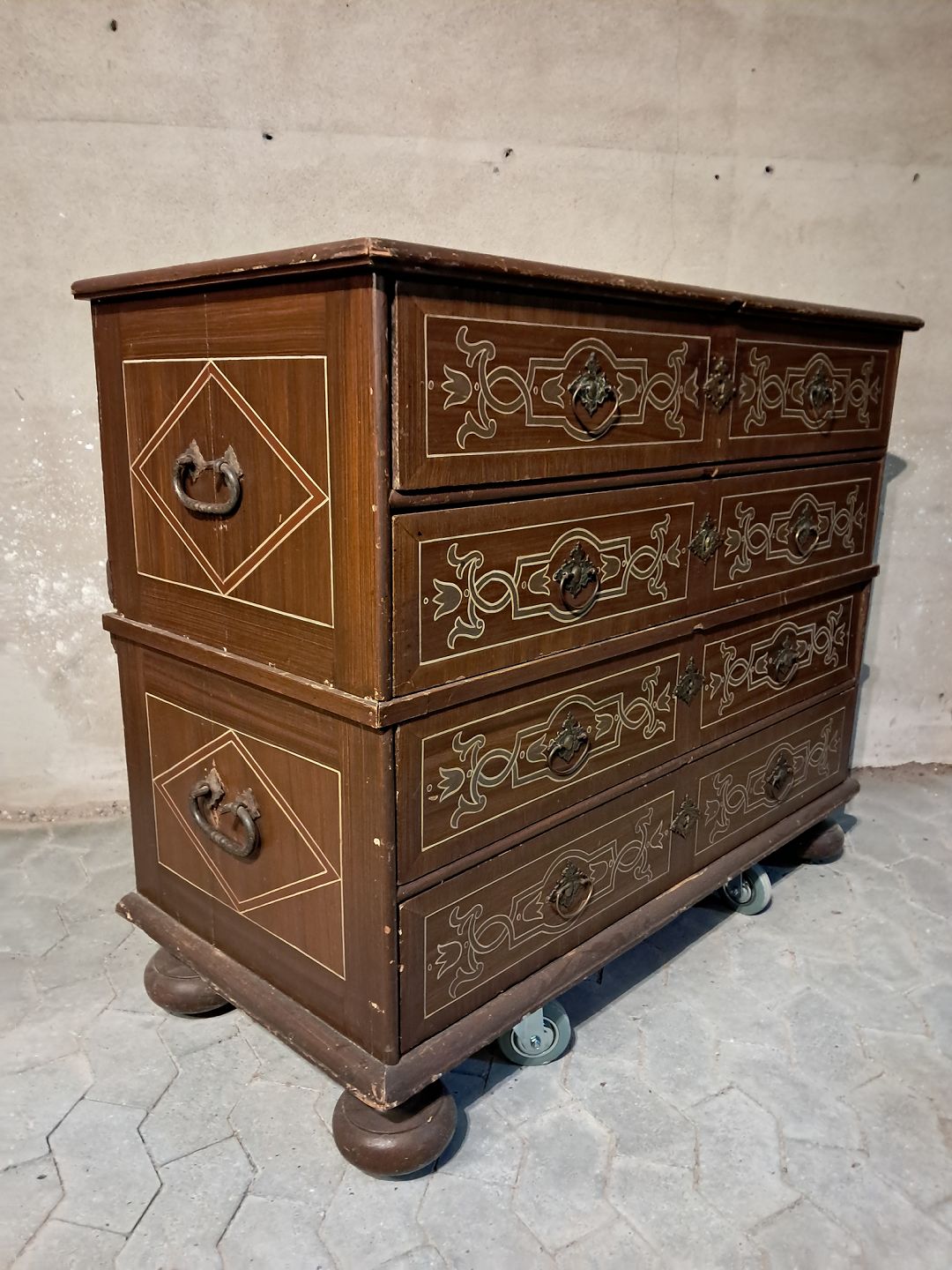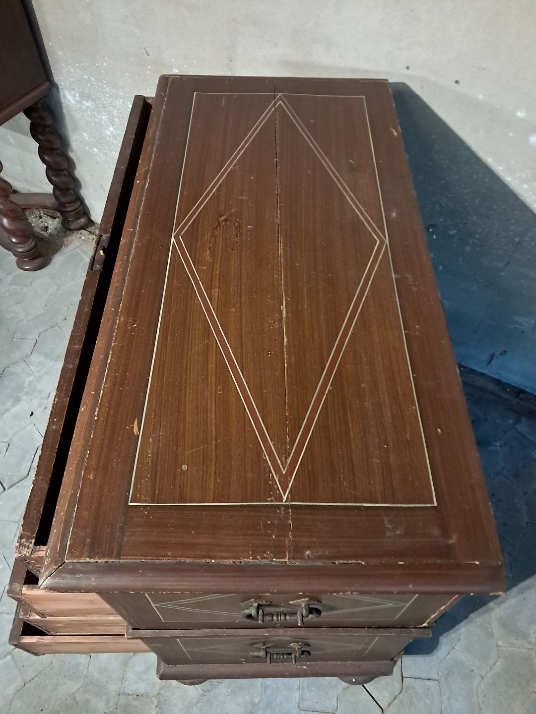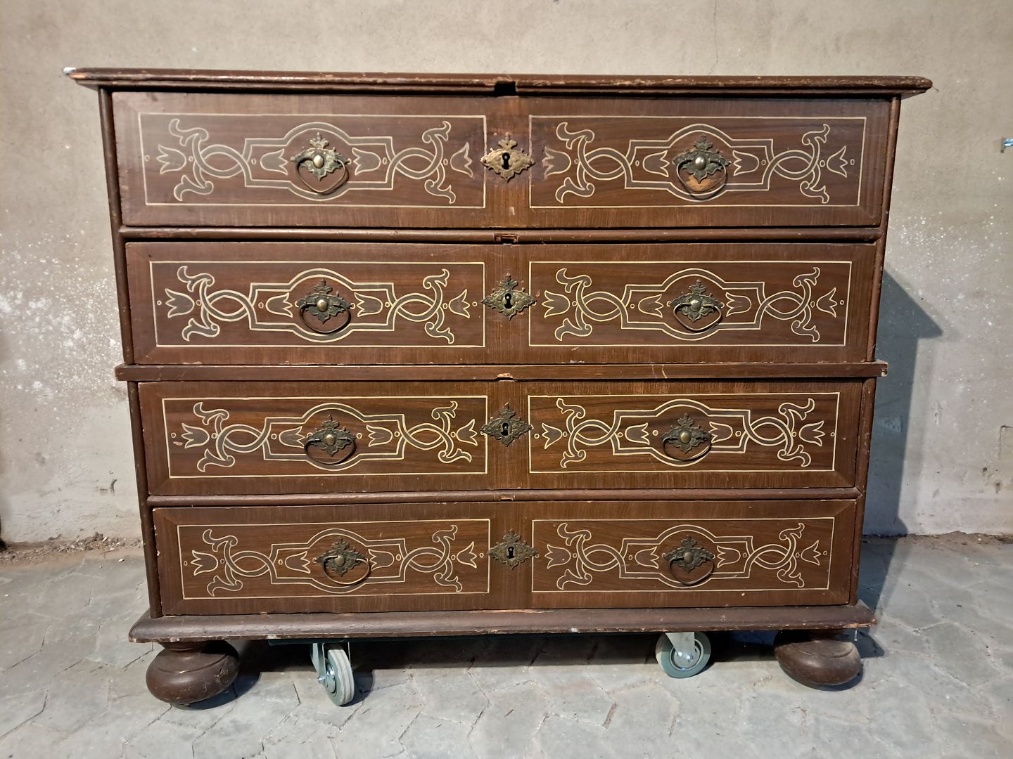 Dragkiste i malet massivt fyrretræ, fra 1890erne. Den har brugsspor. Højde 98cm Bredde 127cm Dybde 52cm Emne nummer: 91611