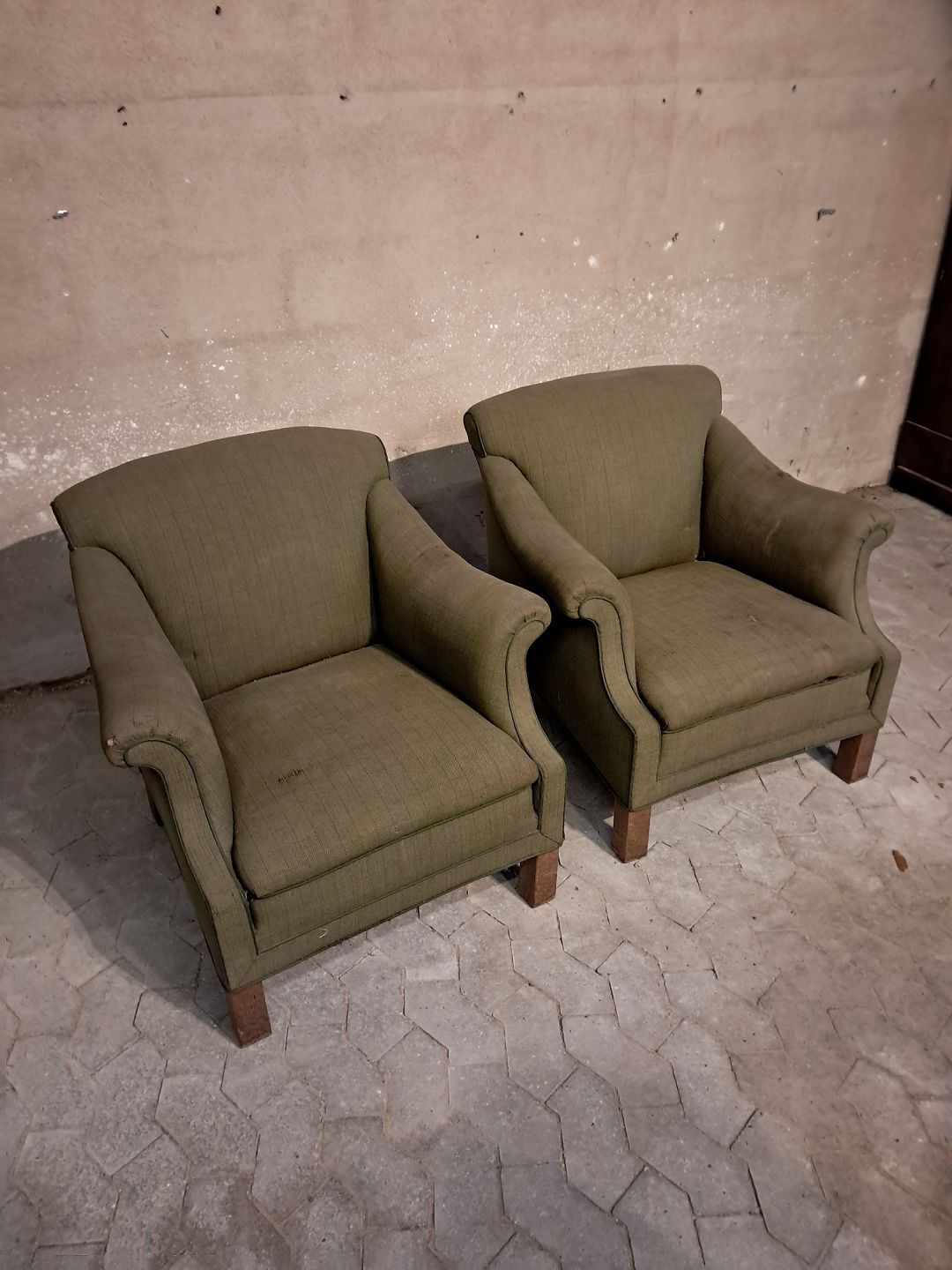 2 Lænesteol der trænger til en ompolstring, fra 1940erne. Ryghøjde 85cm Sædehøjde 42cm Emne nummer: 91641