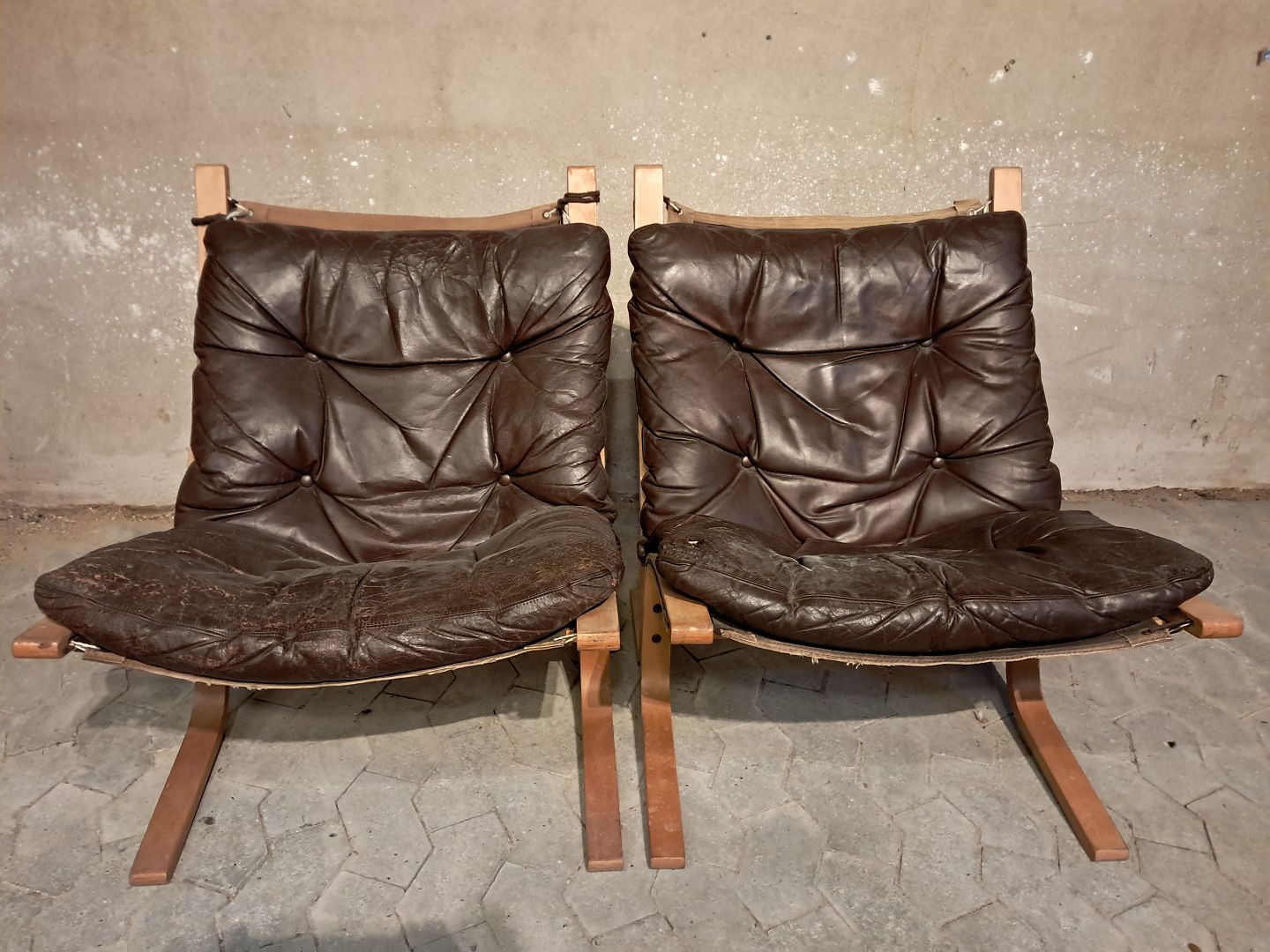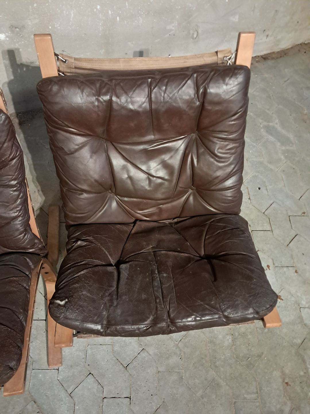 2 Lænestole i bøgetræ og læder, fra 1980erne. De her brugsspor og defekter. (se foto) Ryghøjde 81cm Sædehøjde 43cm Emne nummer: 91644