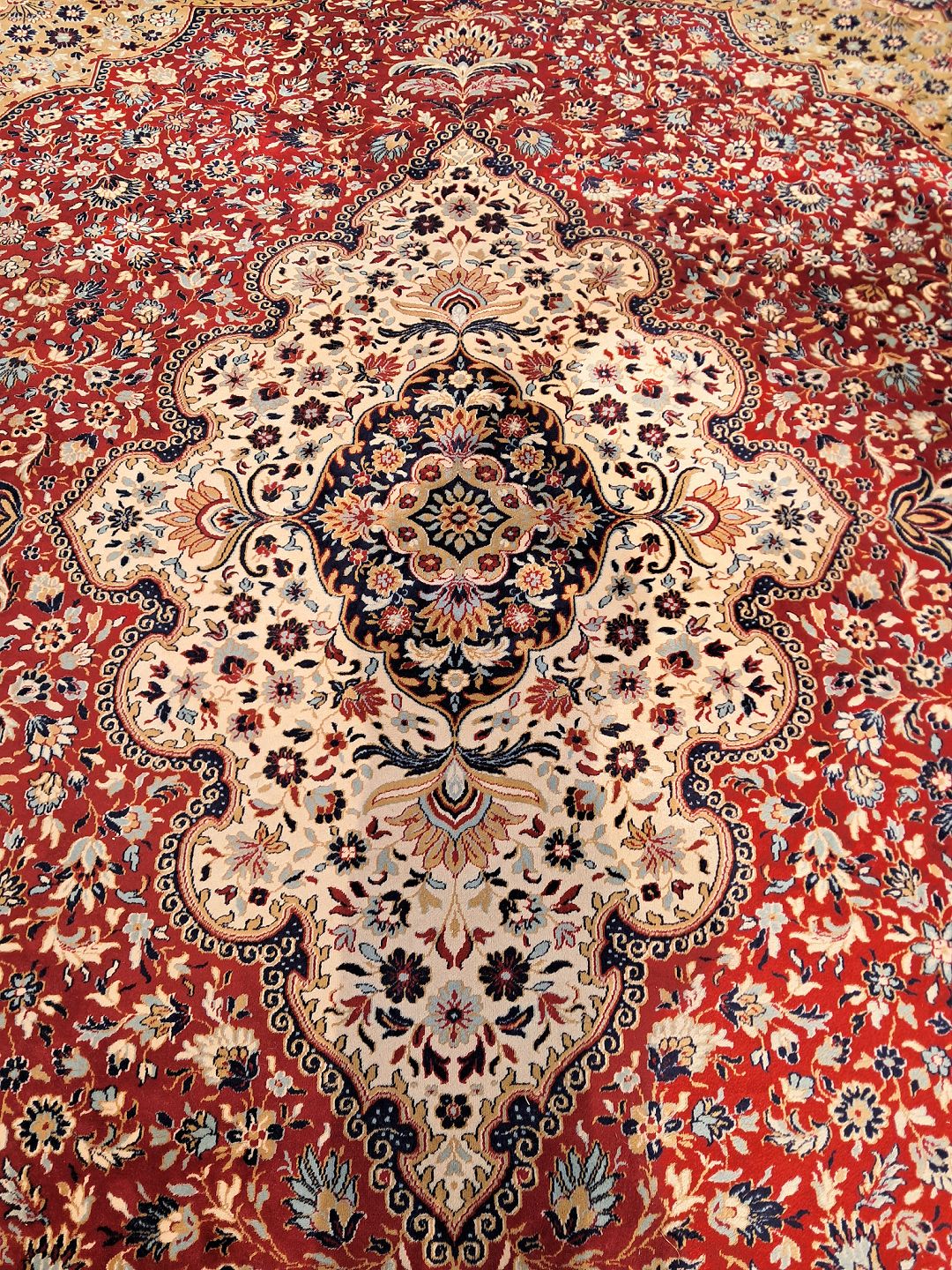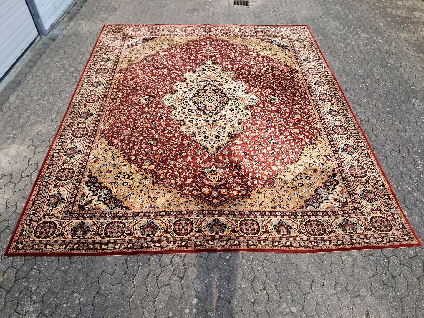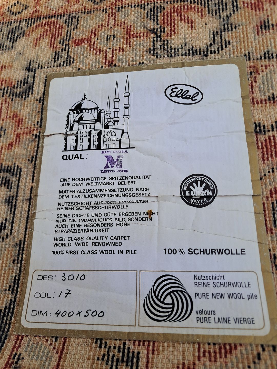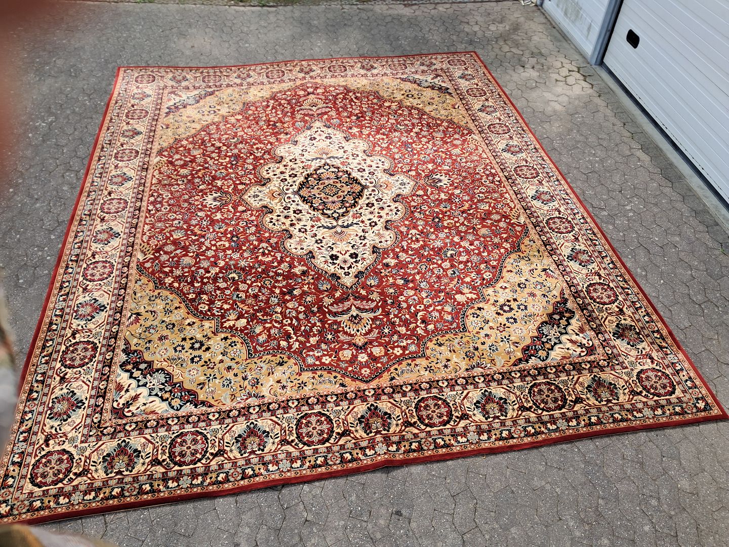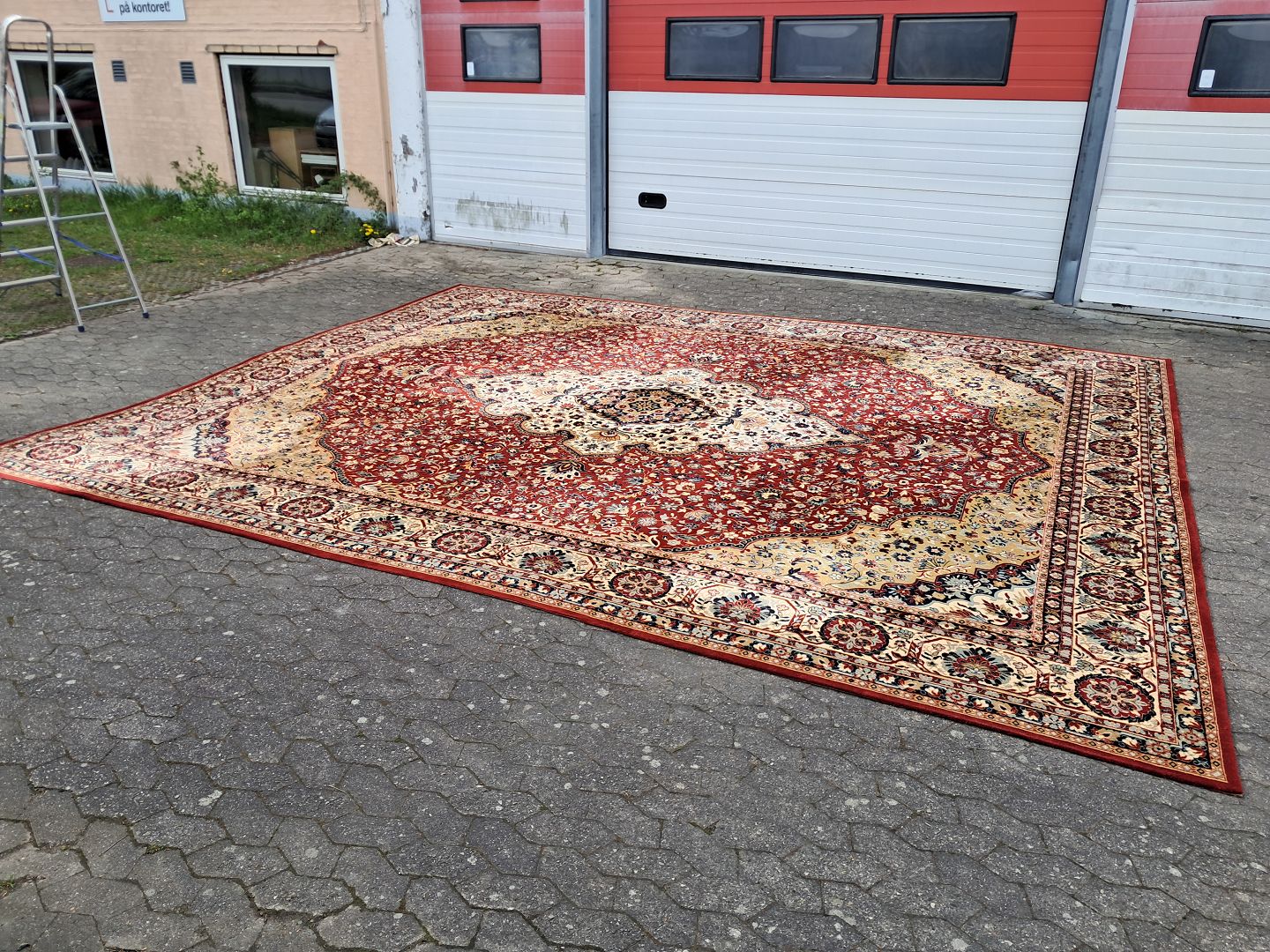 Stort maskinvævet tæppe fra 1990erne. Det har brugsspor. Bredde 400cm Længde 500cm Emne nummer: 76647