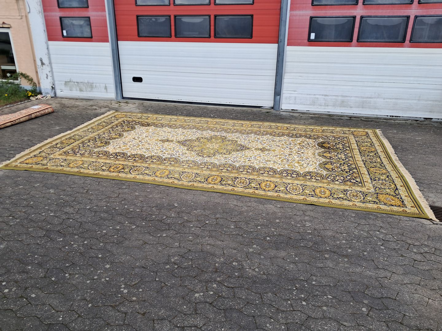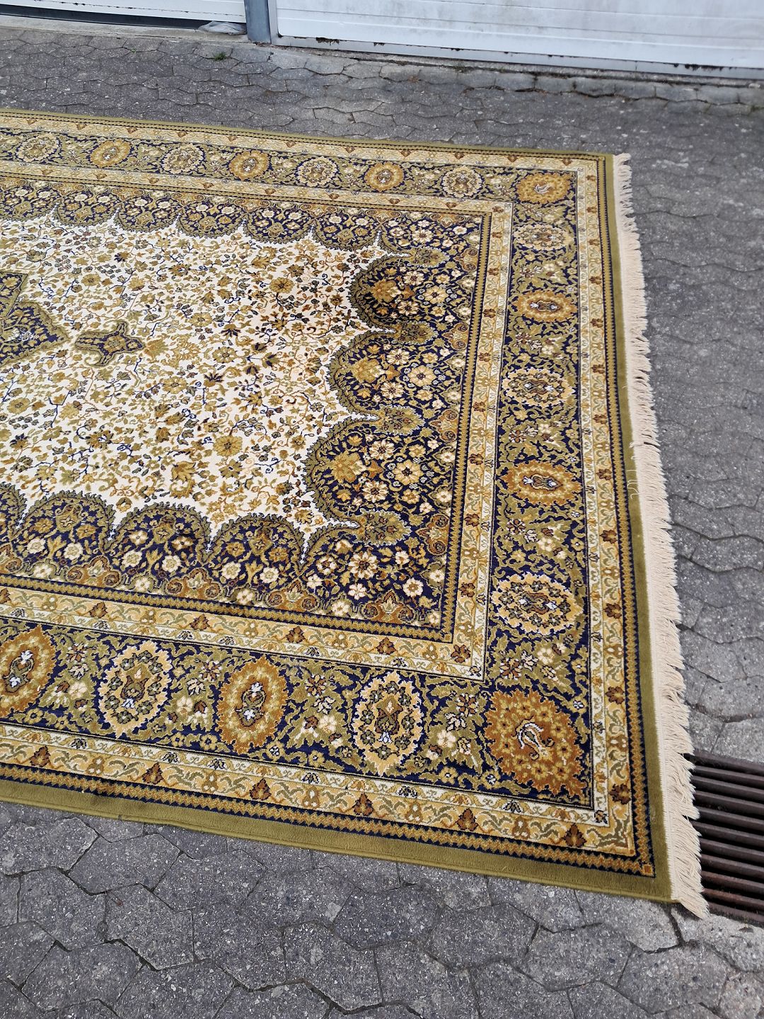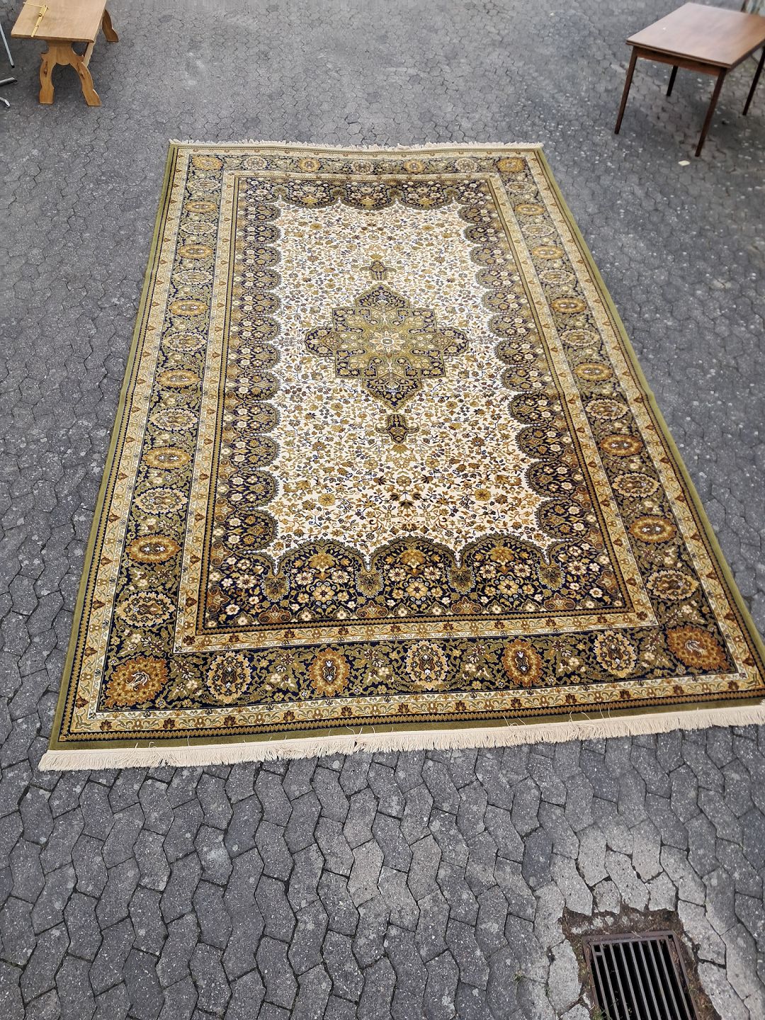 Stort maskinvævet tæppe fra 1990erne. Det har brugsspor. Bredde 300cm Længde 520cm Emne nummer: 76648