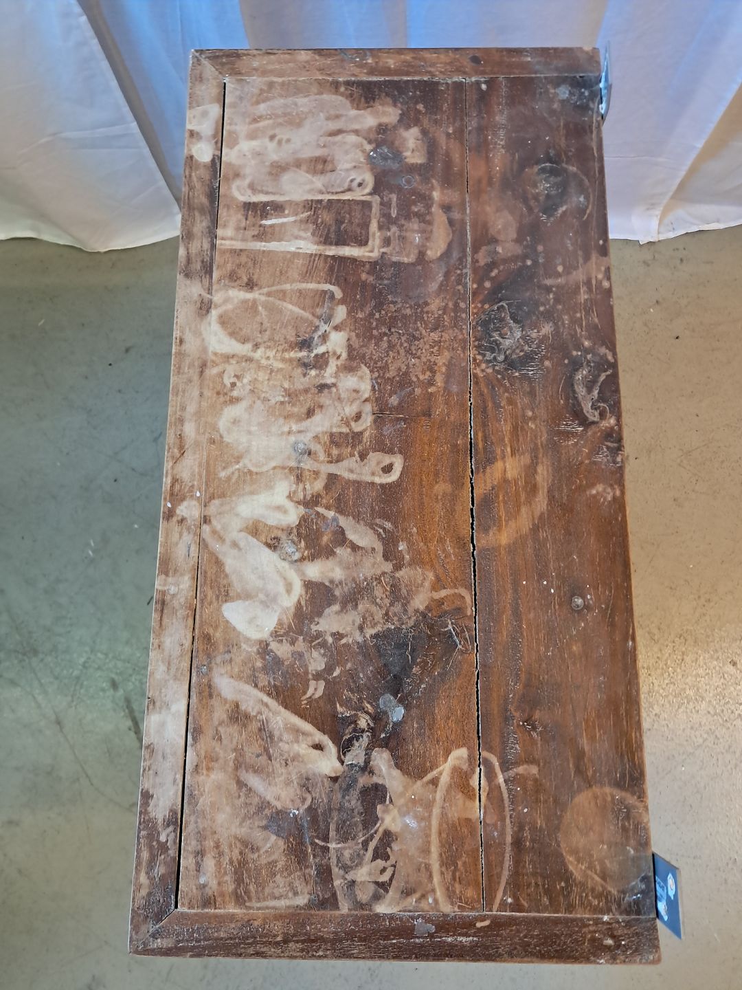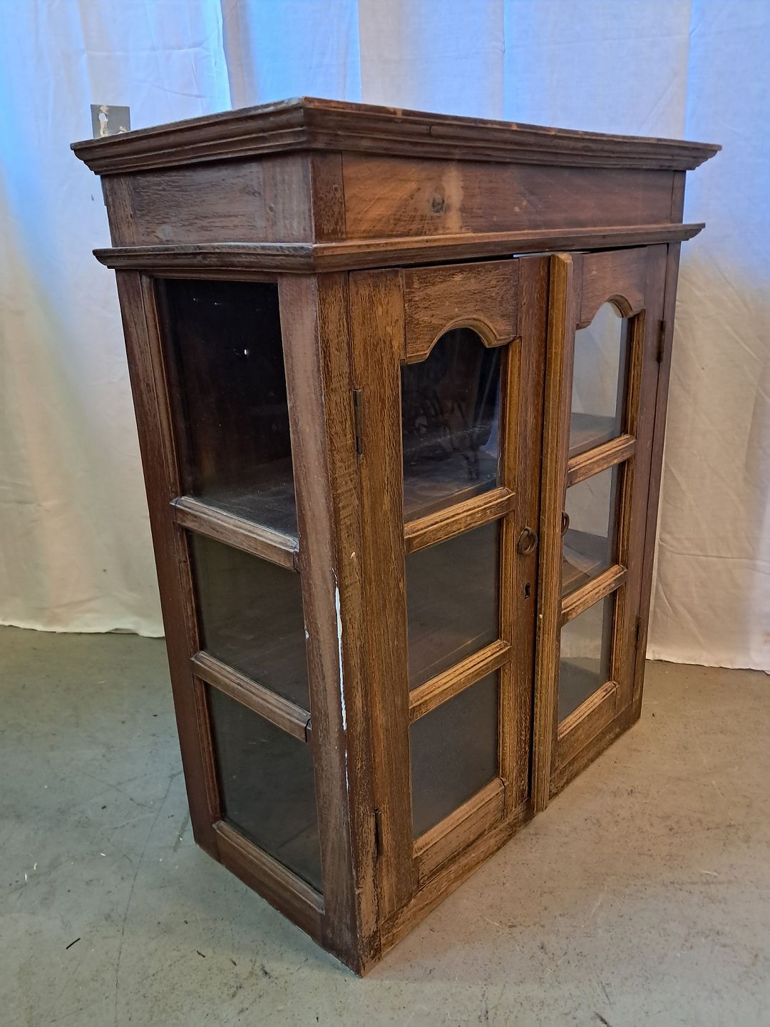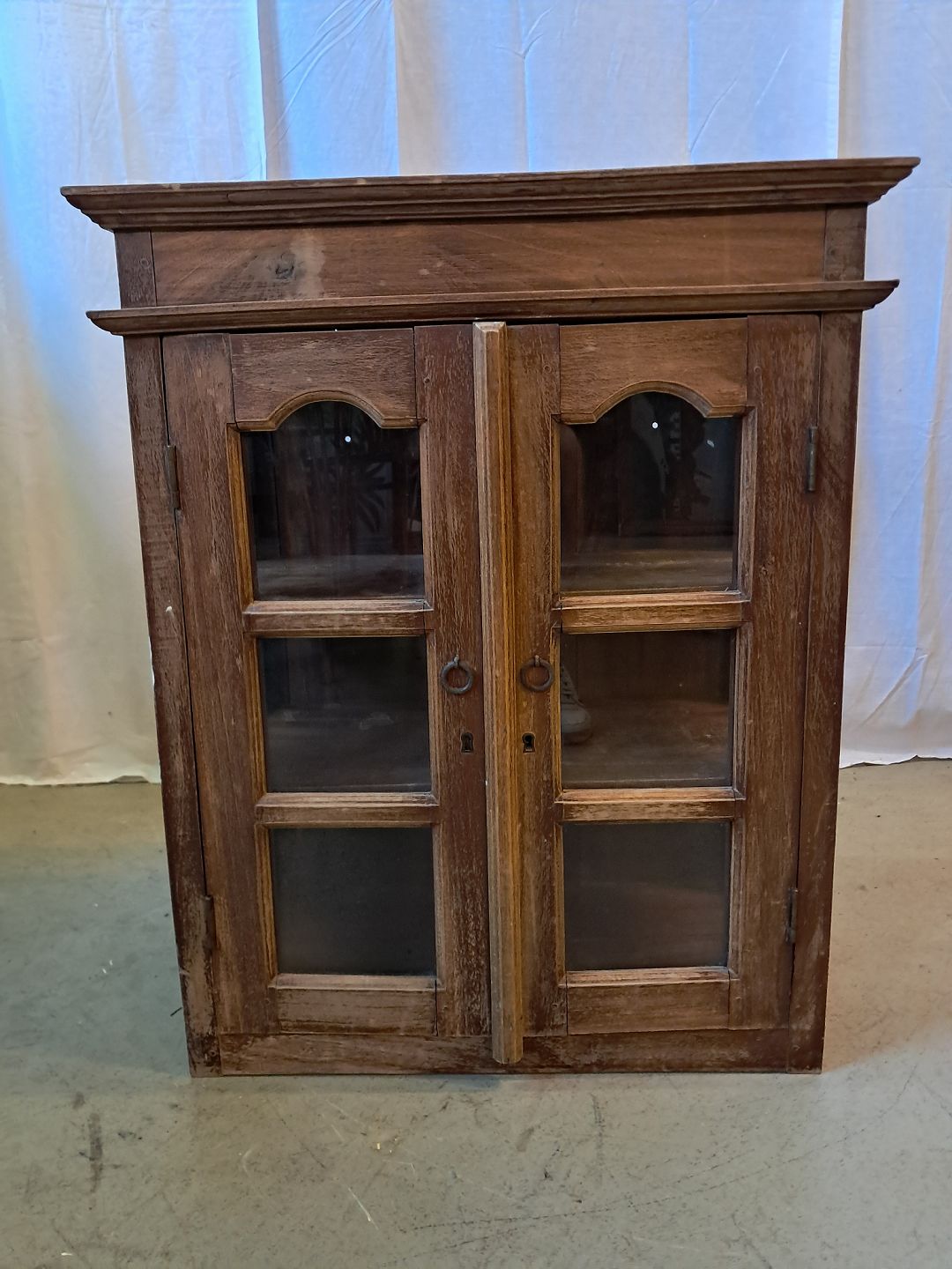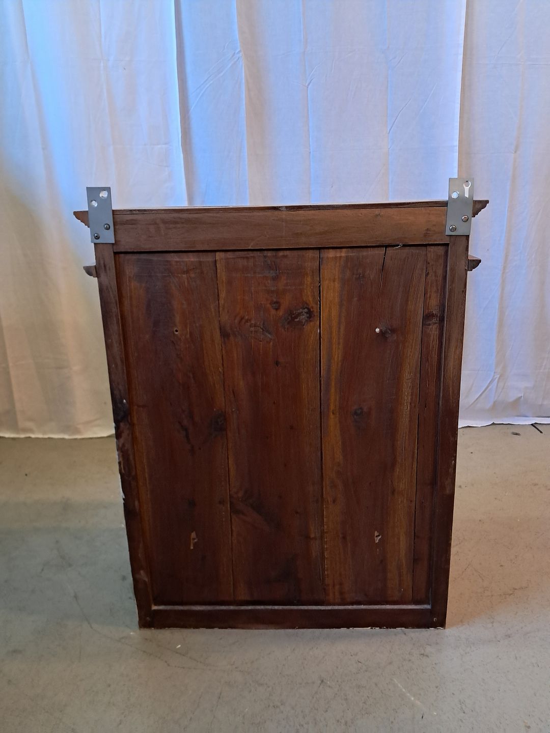 Vægskab i massivt mahogni, fra 1990erne. Det har brugsspor og låsen er defekt. Højde 80cm Bredde 66cm Dybde 32cm Emne nummer: 76685