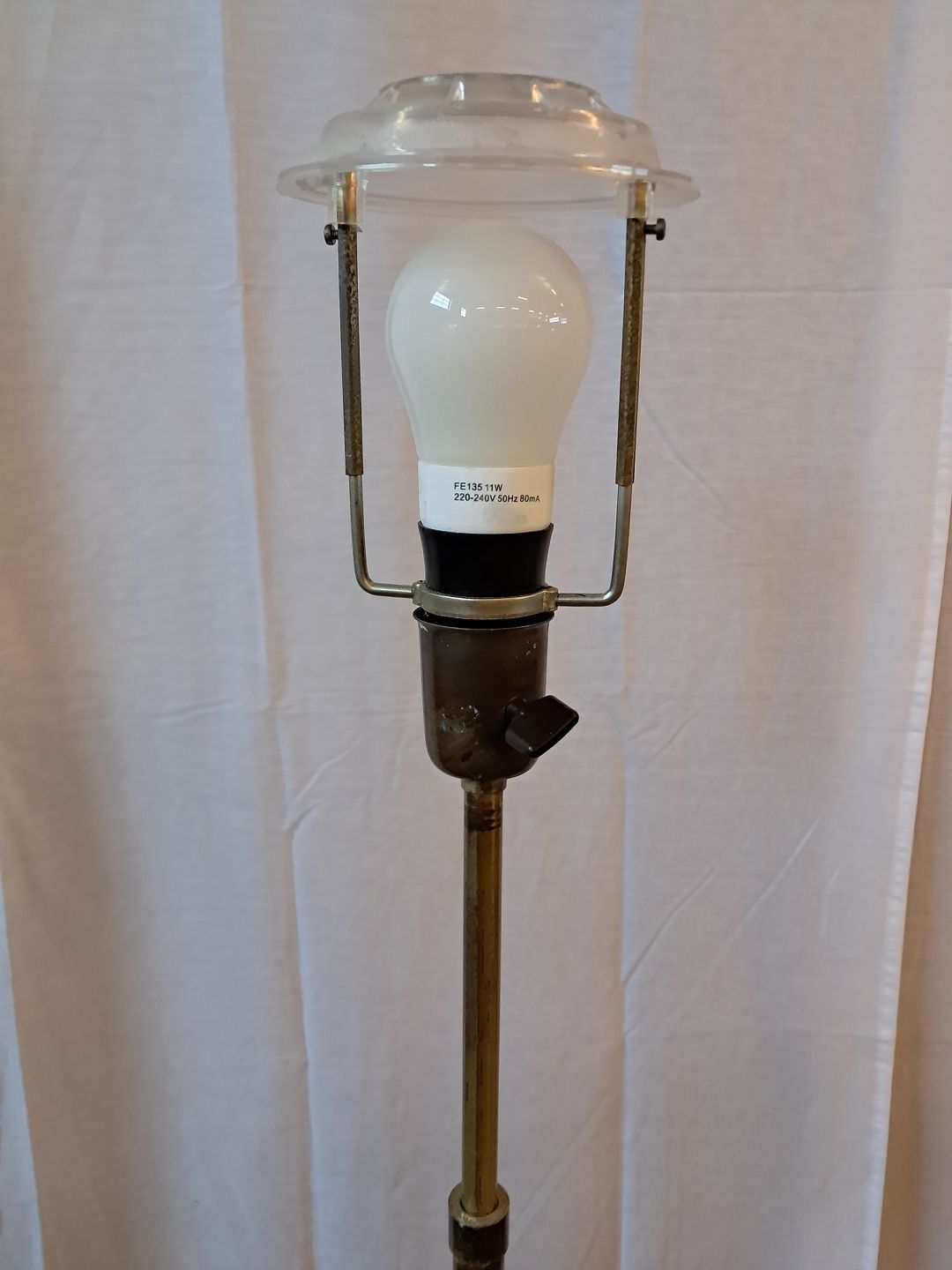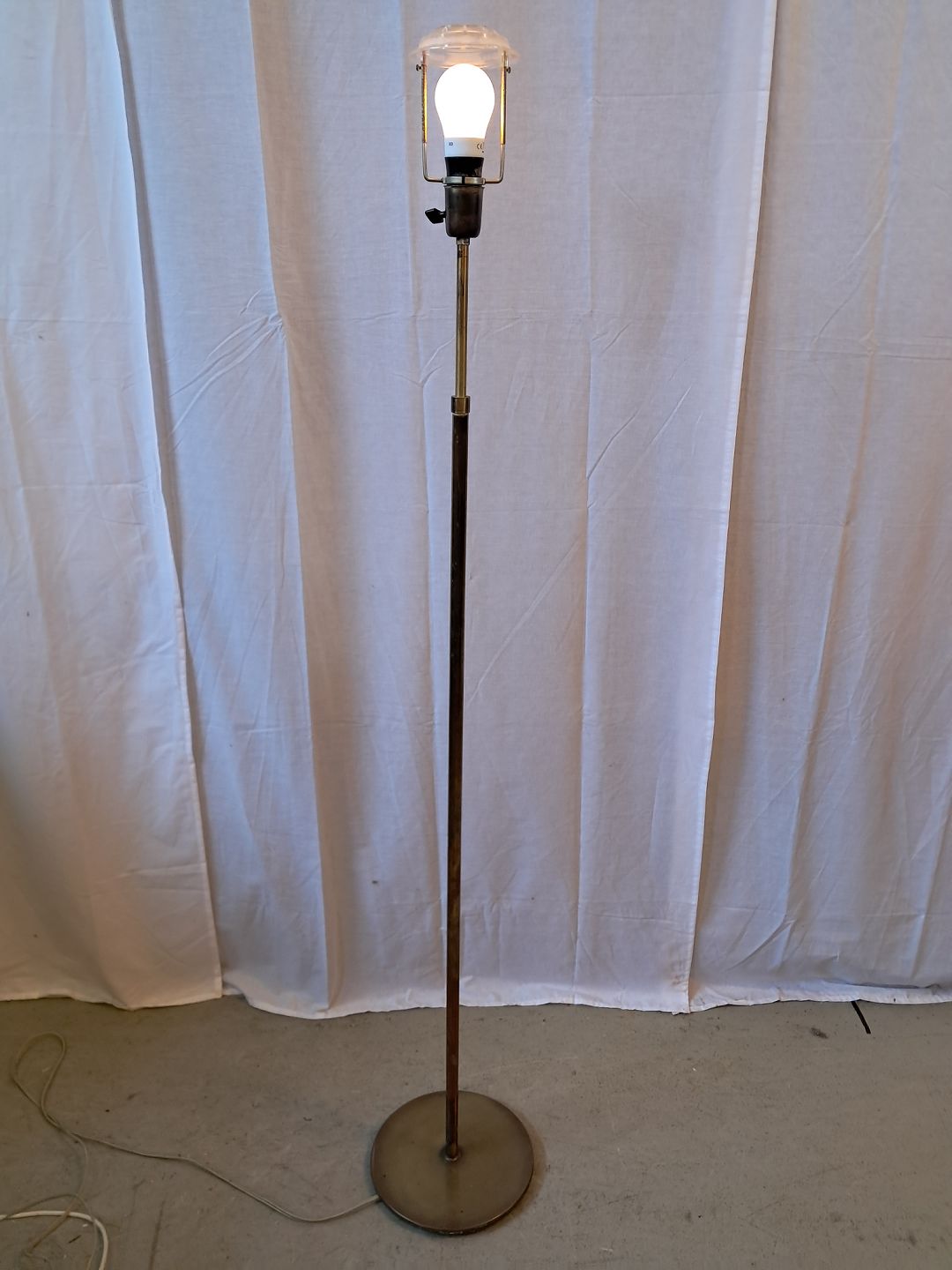 Standerlampe i metal, fra 1960erne. Den har brugsspor. Højde 153cm Diameter på fod 25cm Emne nummer: 76692