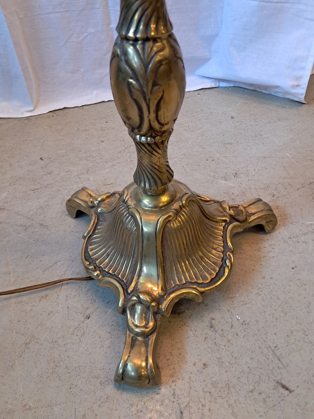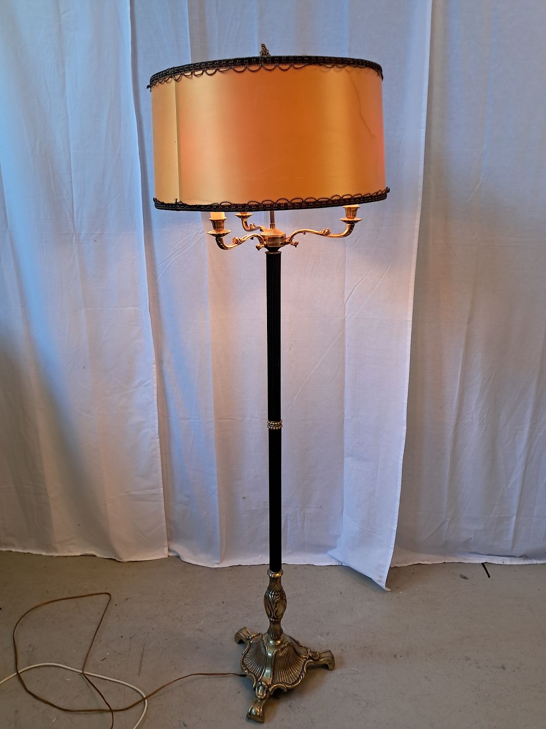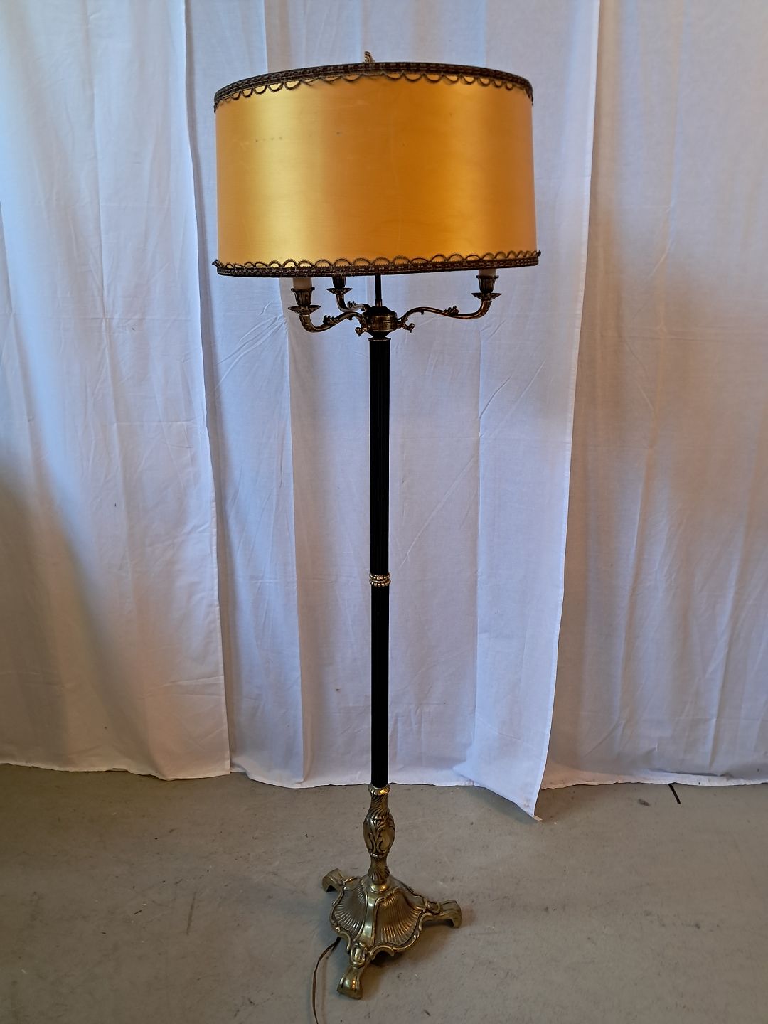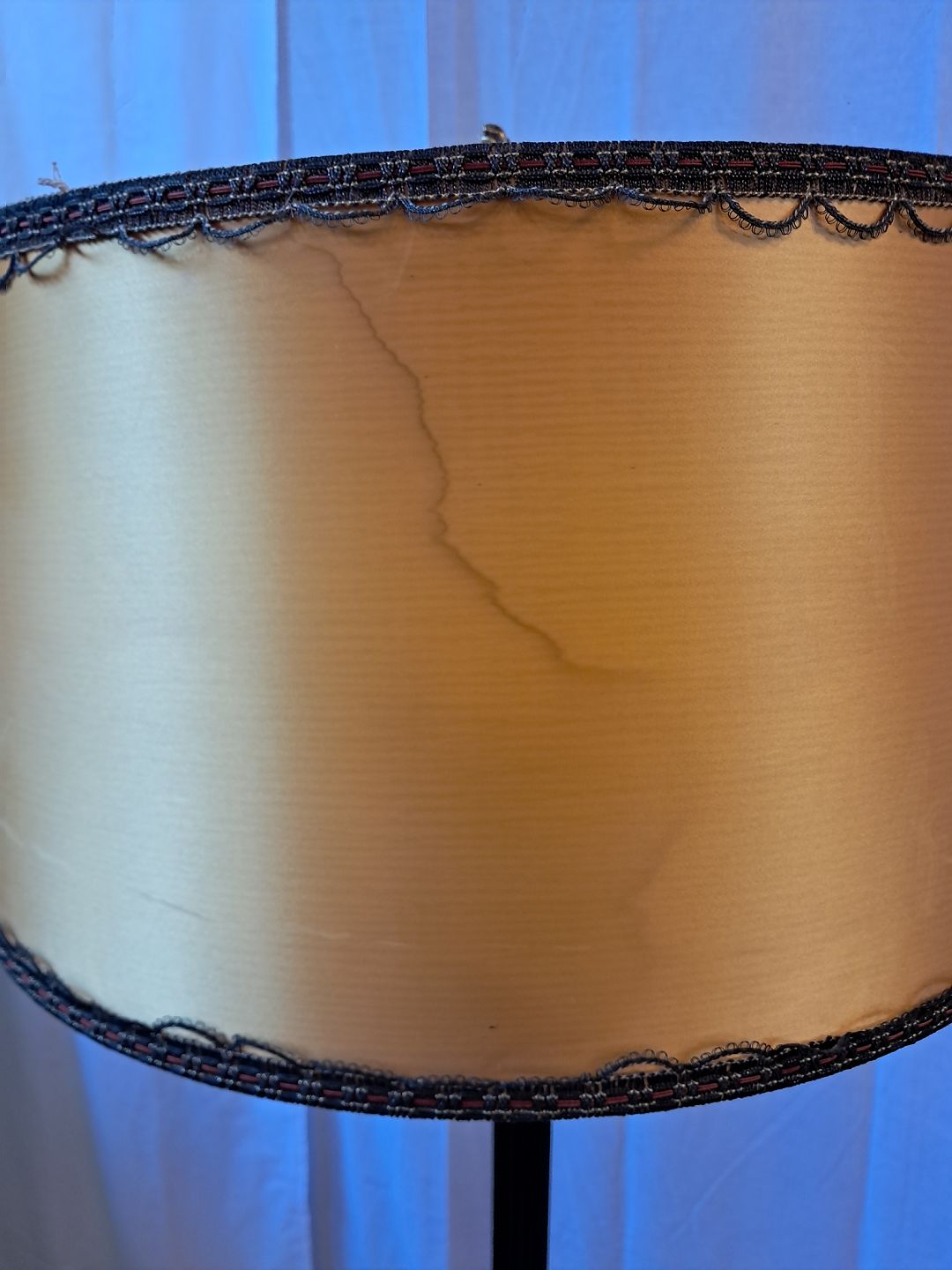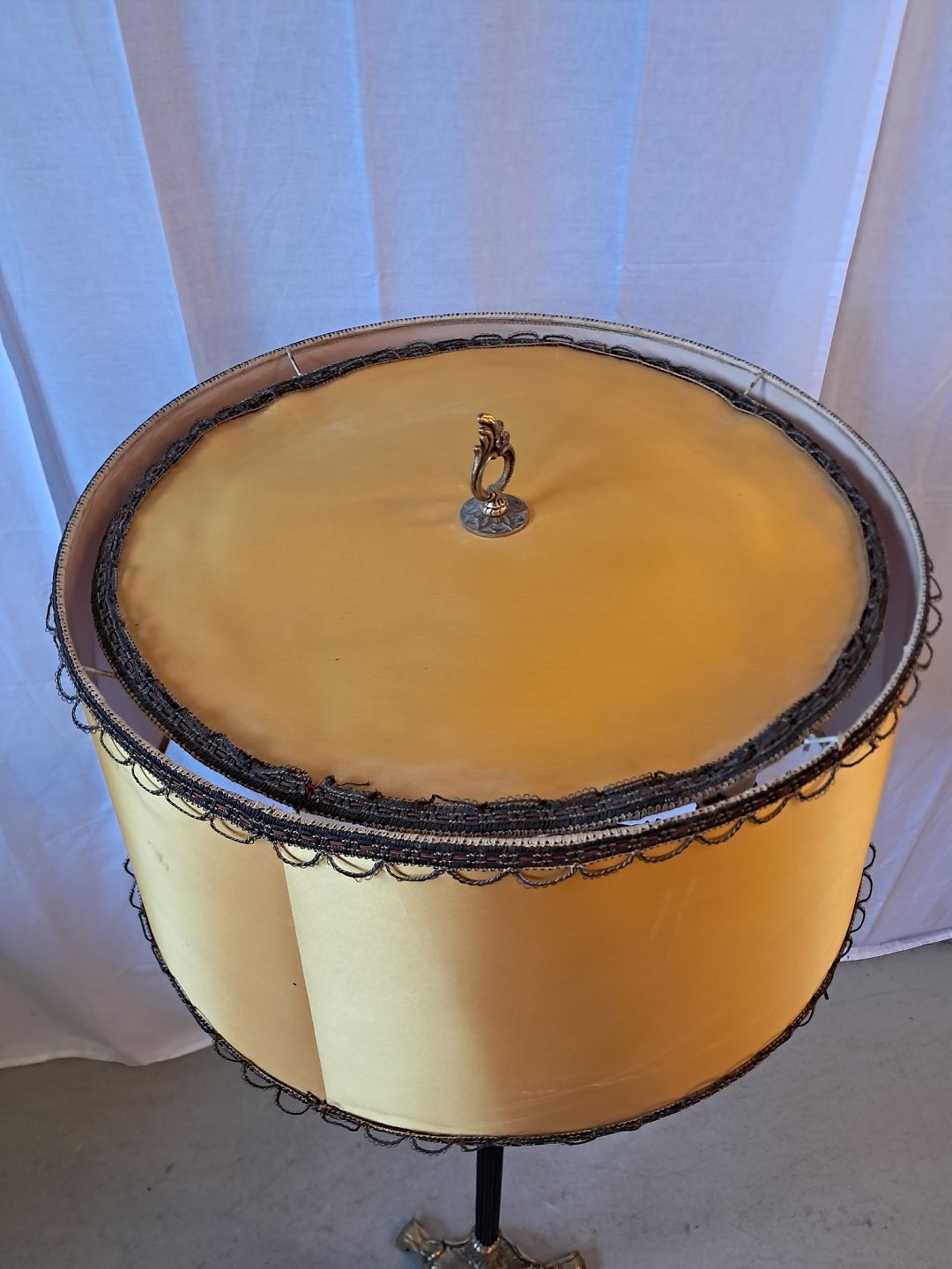 Standerlampe med skaærm, fra 1960erne. Skærmen her brugsspor. Højde 163cm Diameter på skærm 48cm Emne nummer: 76693