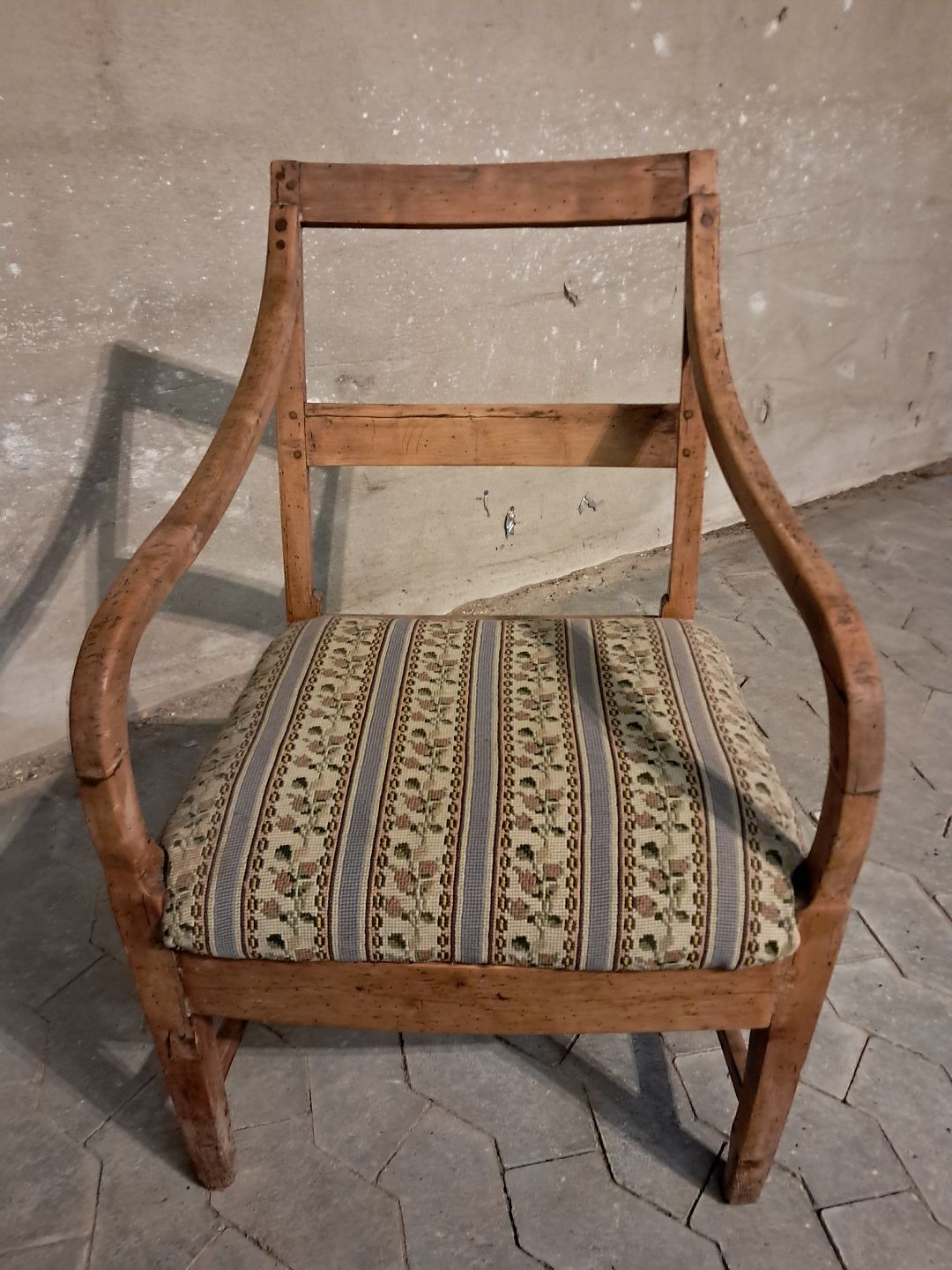 Armstol i massivt bøgetræ, fra 1900erne. Den har flere reparationer. Ryghøjde 81cm Sædehøjde 39cm Emne nummer: 91692