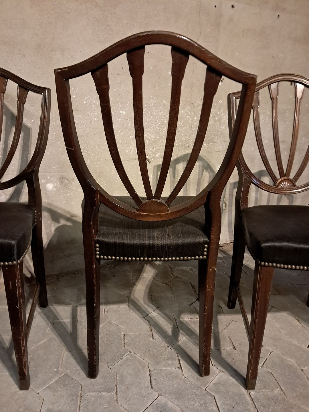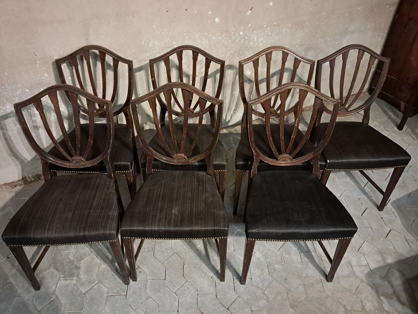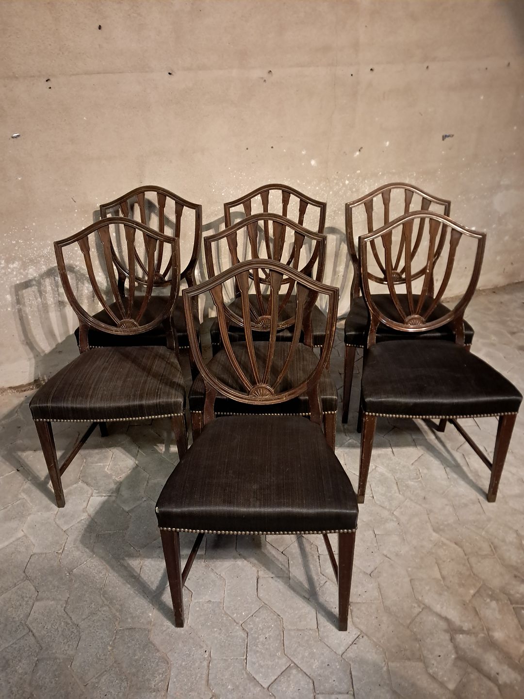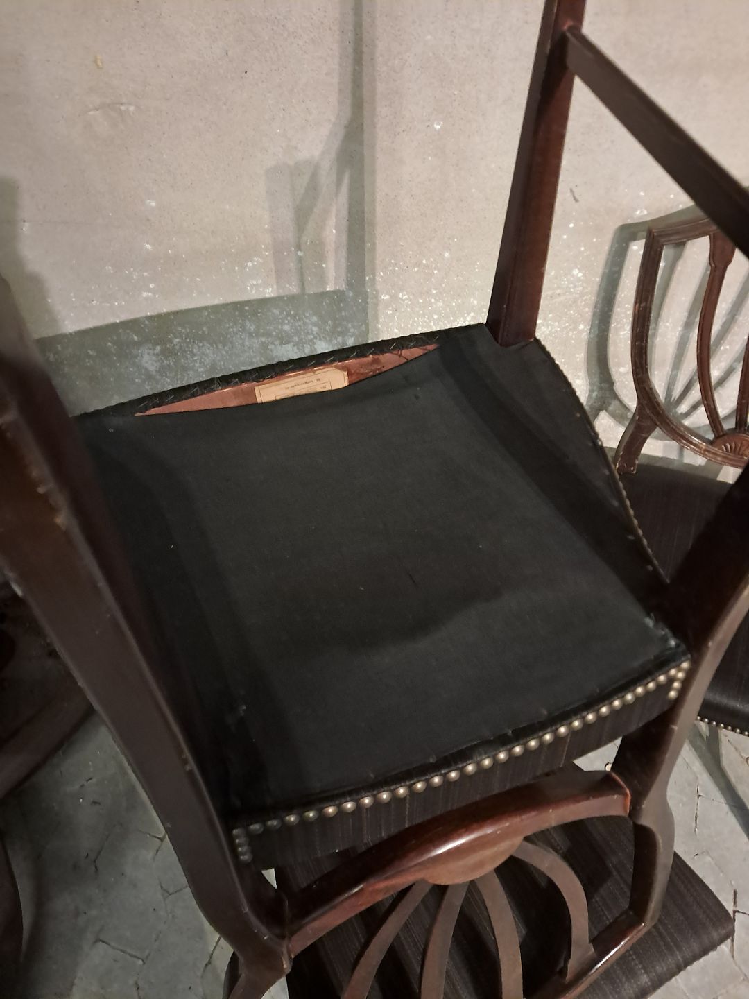 7 Stole i massivt mahogni, fra 1980erne. De har brugsspor. Ryghøjdeb 90cm Sædehøjde 45cm Se emne nr. 91696 Emne nummer: 91695