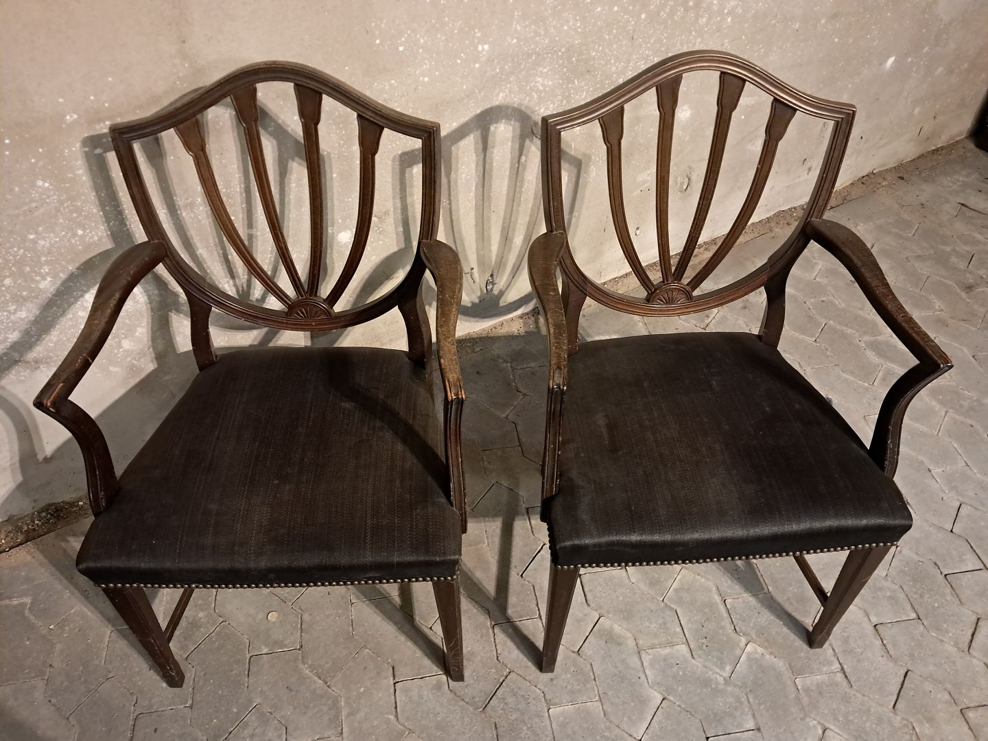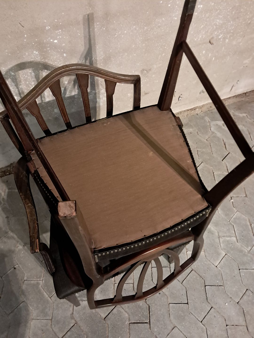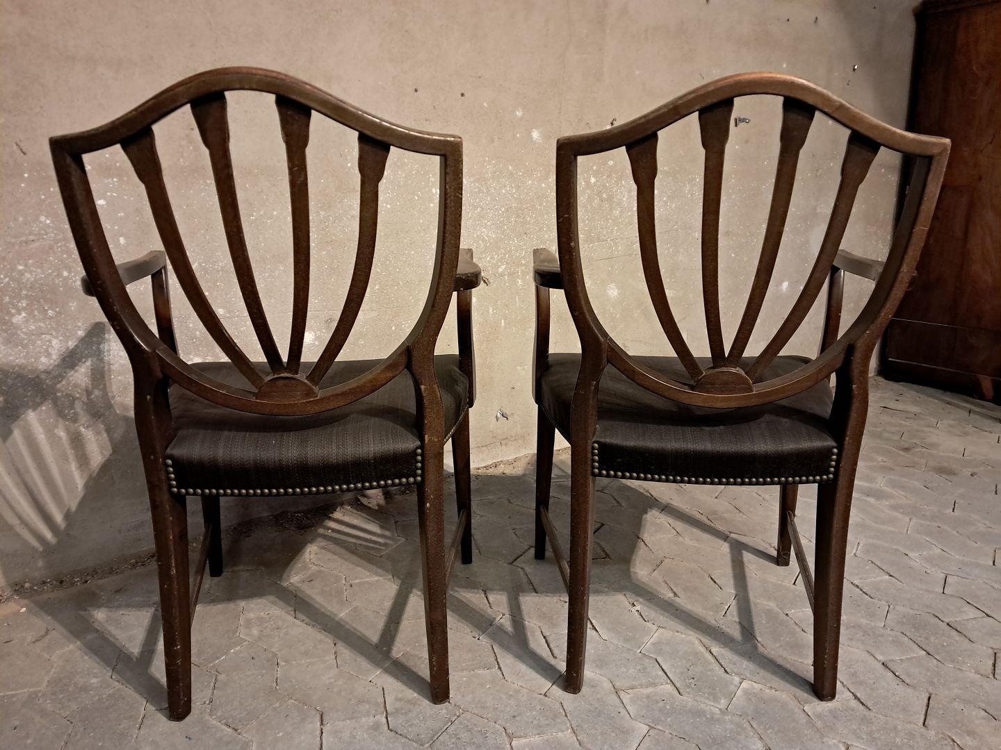 2 Armstol i massivt mahogni, fra 1980erne. De har brugsspor. Ryghøjde 94cm Sædehøjde 45cm Se emne nr. 91695 Emne nummer: 91696