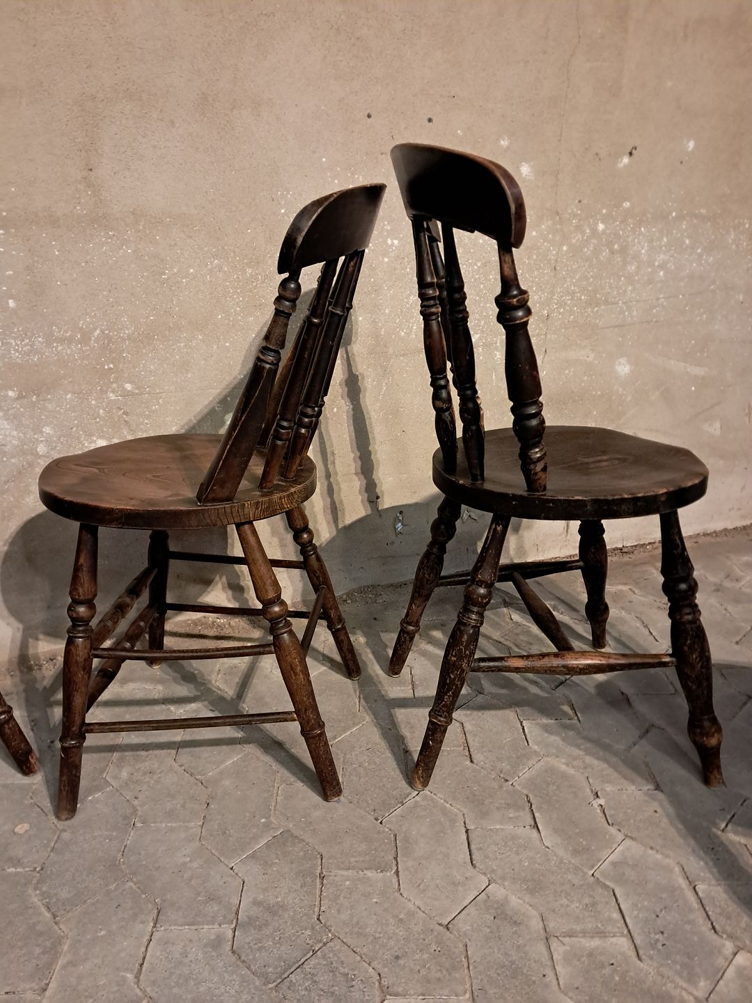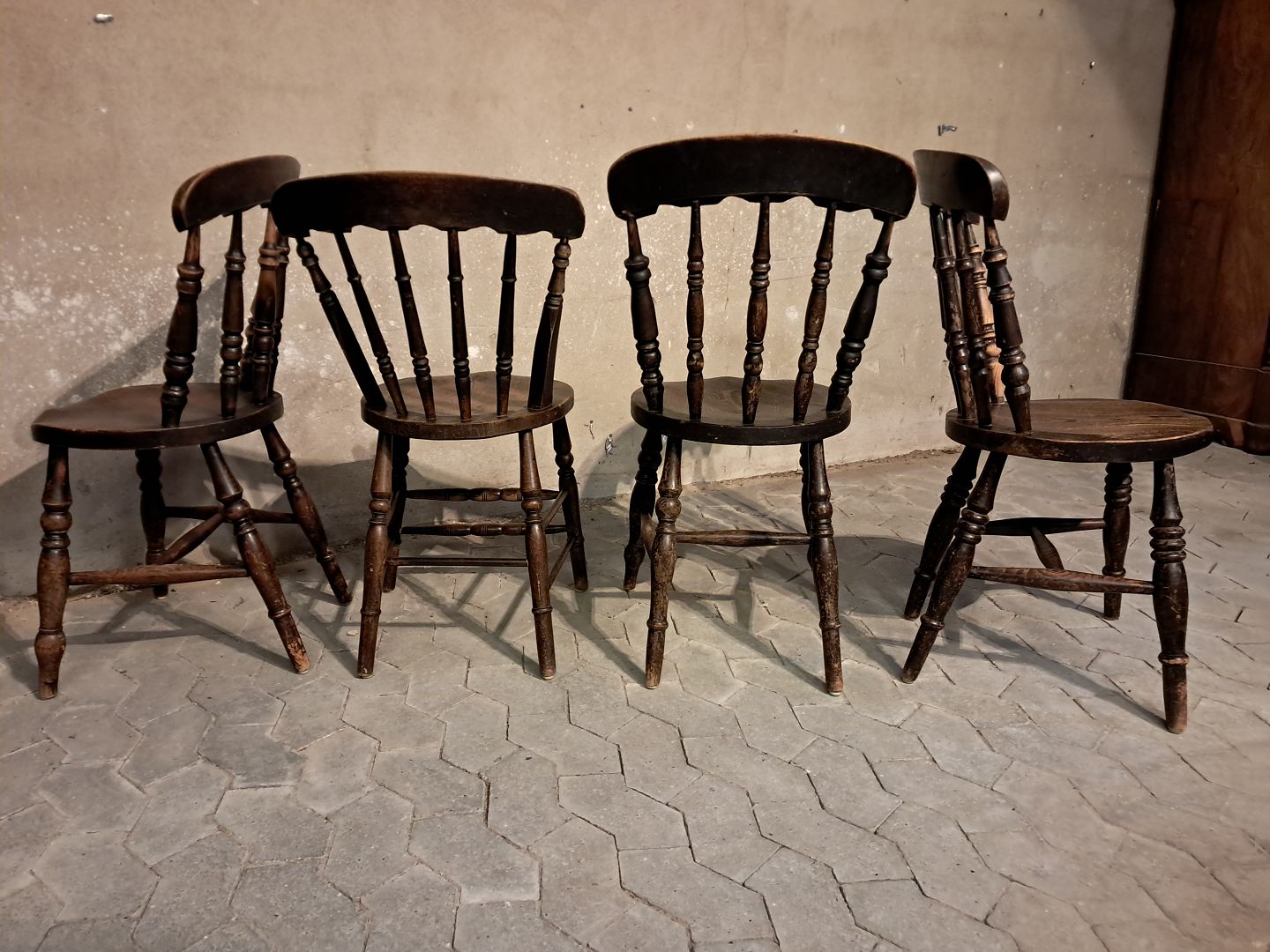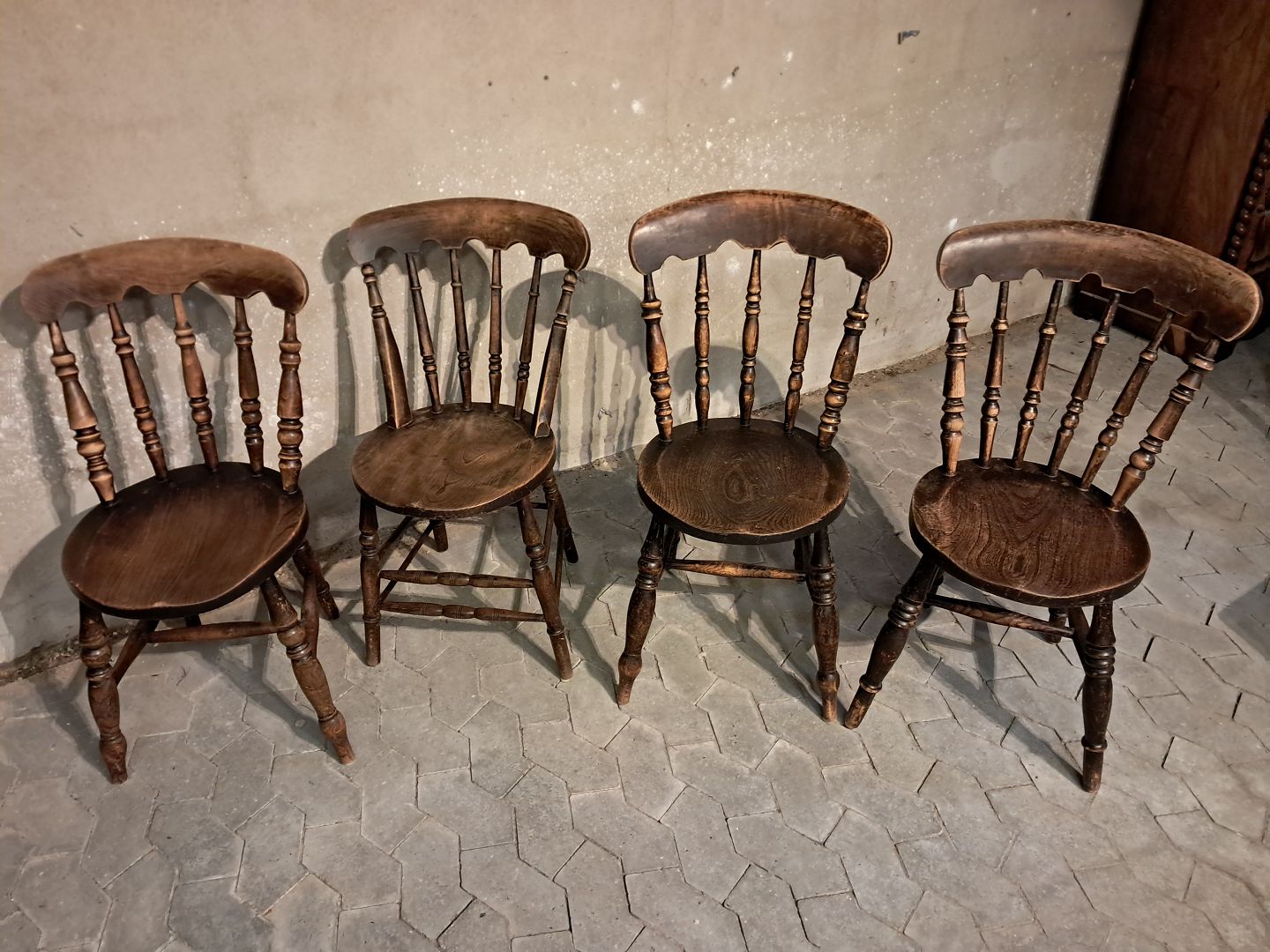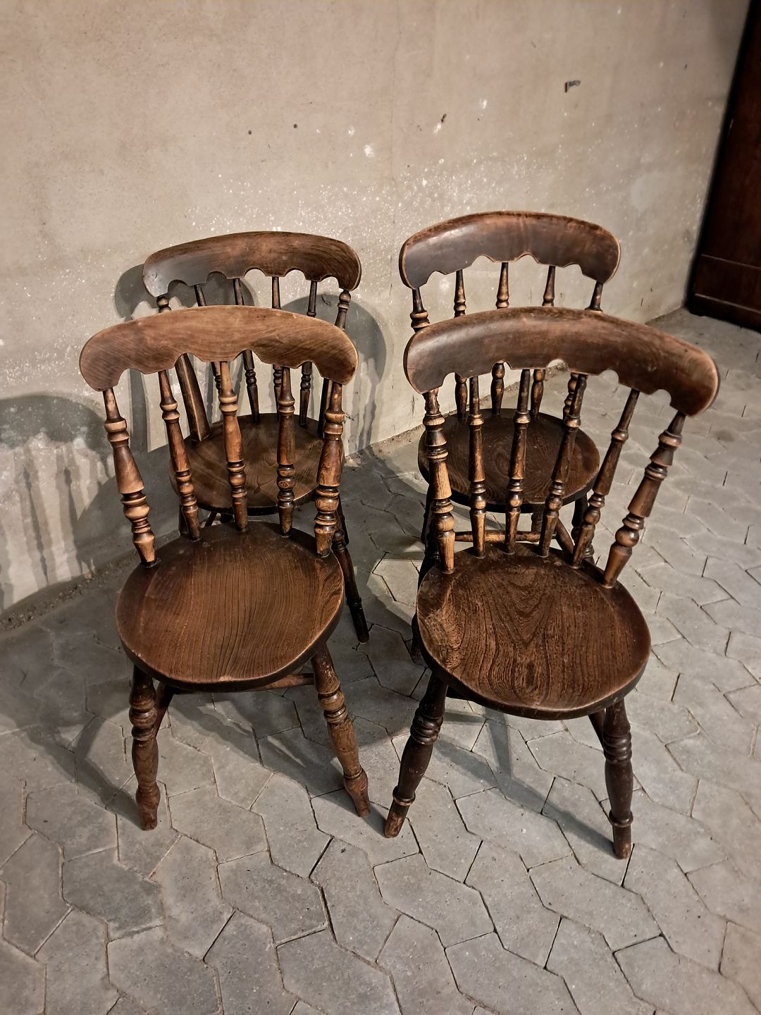 4 Næsten ens stole i massivt egetræ, fra 1930erne. De har brugsspor. Ryghøjde fra 85cm til 90cm Sædehøjde 46cm Emne nummer: 91698