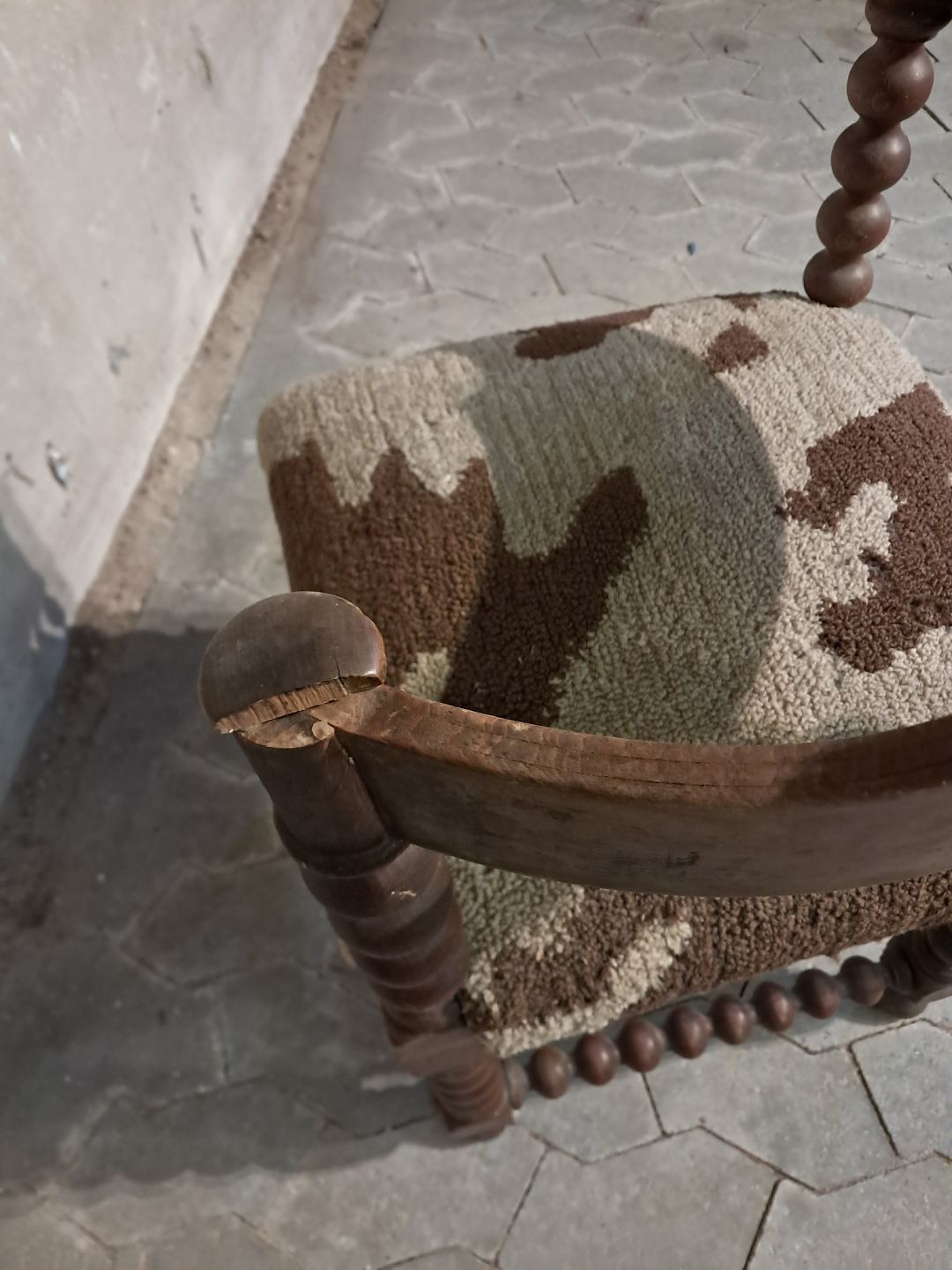 Armstol i massivt bøgetræ, fra 1910erne. Den har brugsspor og en defekt. Ryghøjde 79cm Sædehøjde 47cm Emne nummer: 91705
