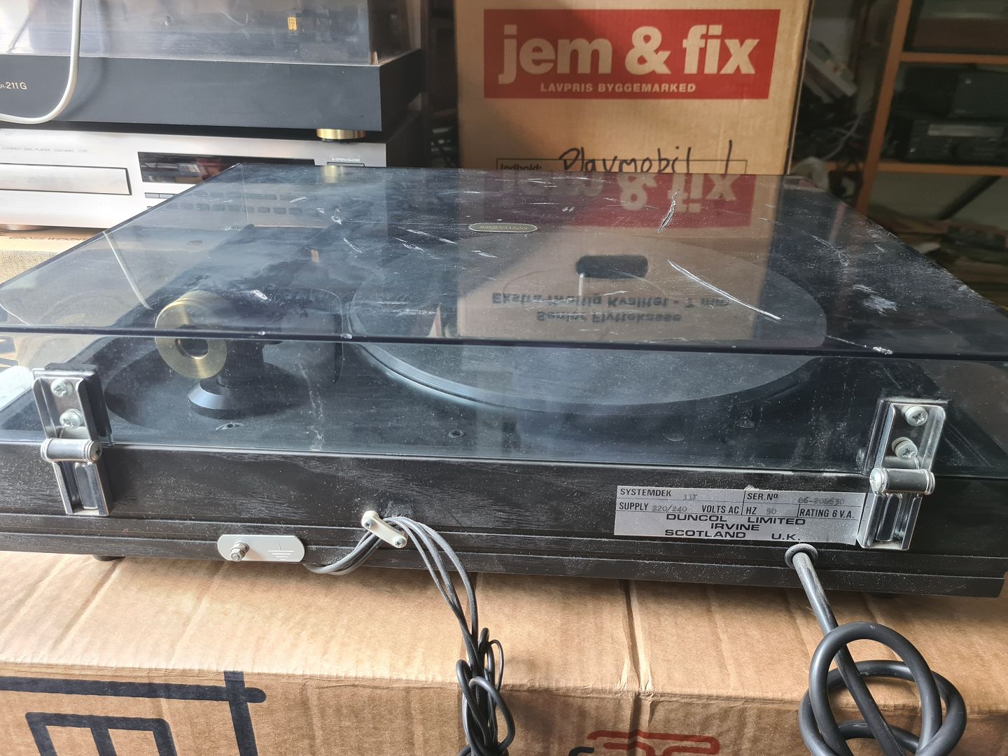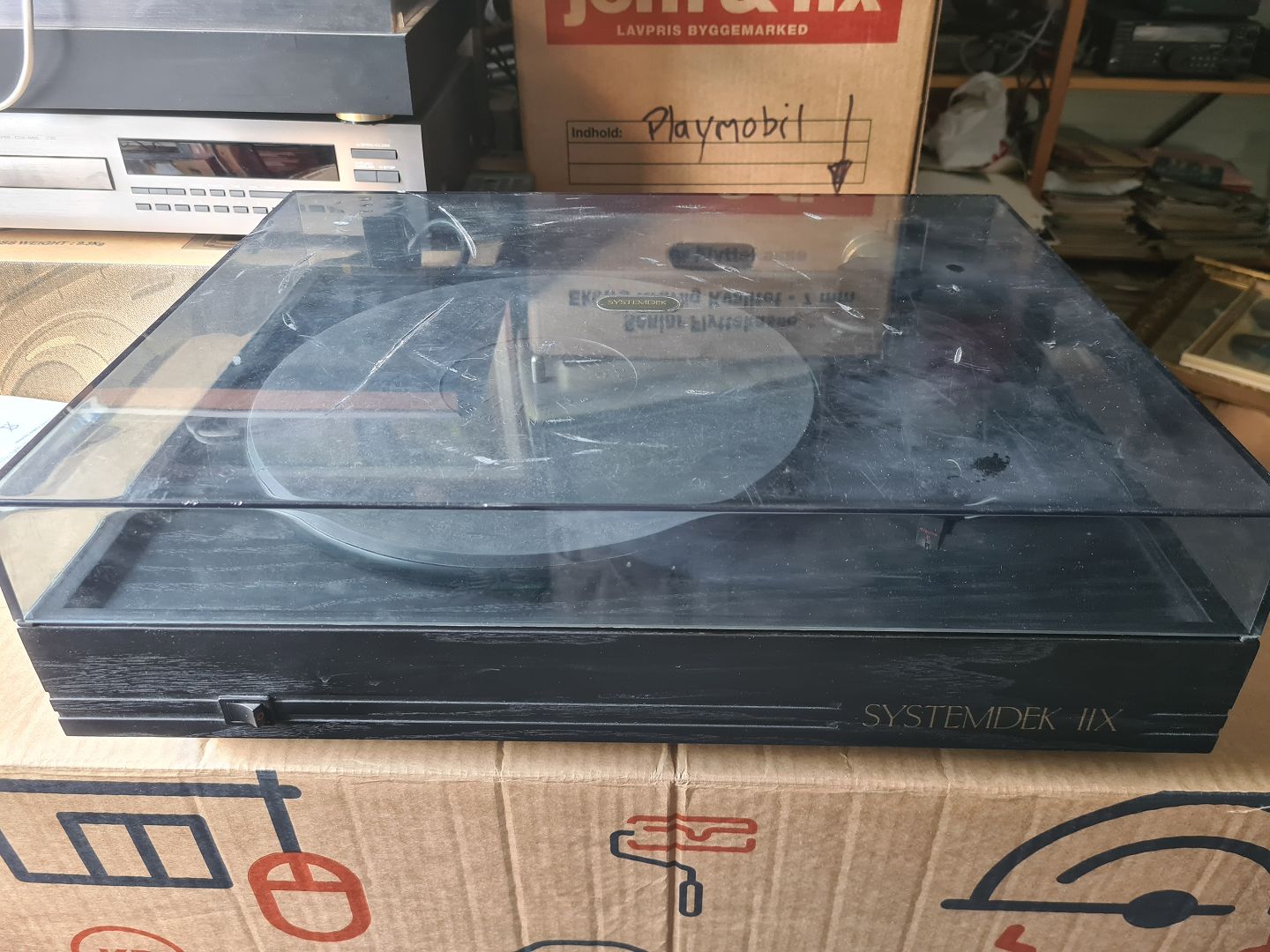 Vintage pladespiller fra SYSTEMDEK model IIX. Spiller helt fint. Kommer med en Scorpio tonearm og Goldring Elektro II pick-up. Cover har lidt brugsspor der ligner flænger, men ikke er det. Højde 14 cm. Bredde 47 cm. Dybde 37 cm. Emne nummer: 60656