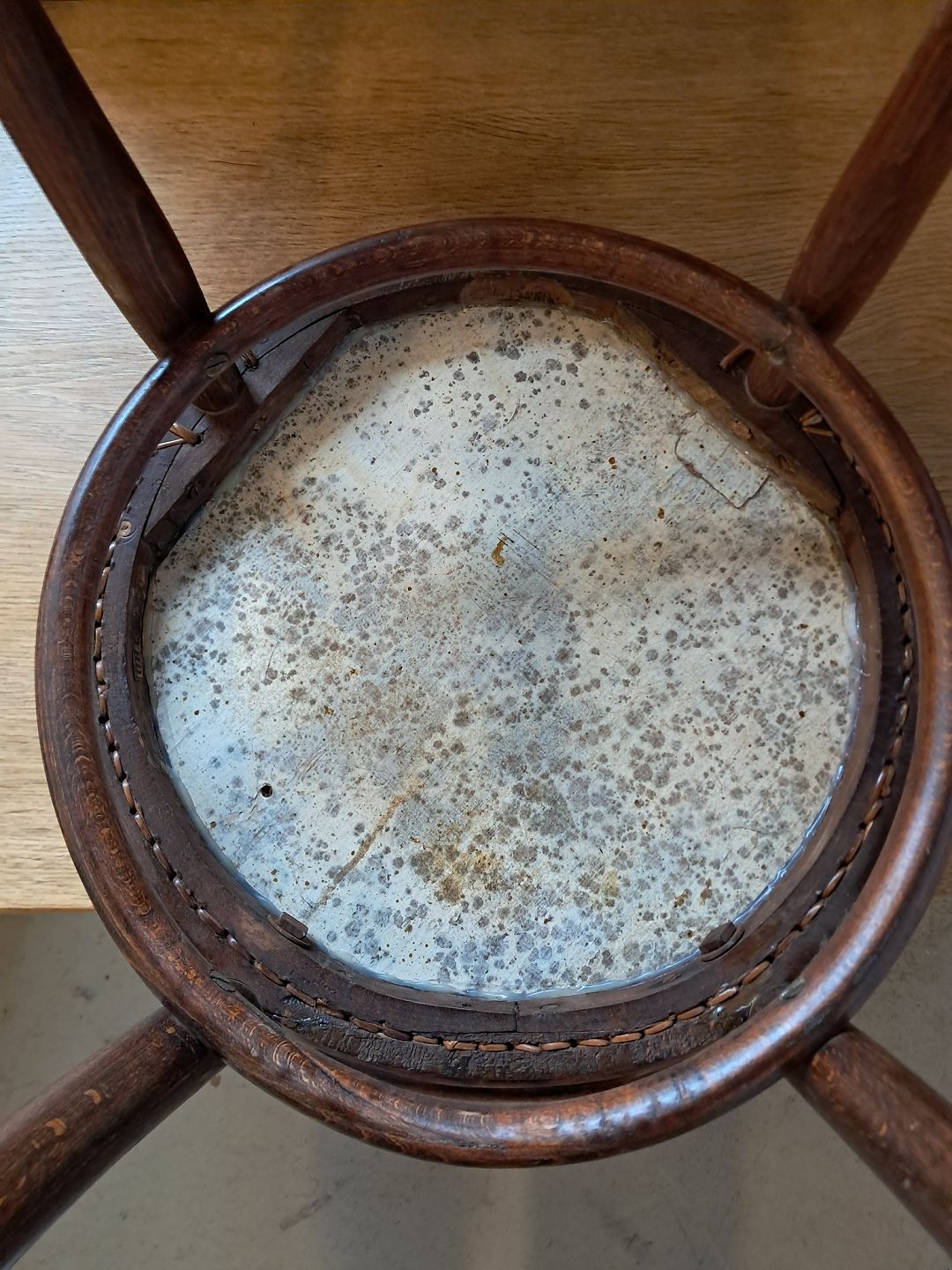 Stol i massivt bøgetræ, fra 1920erne. Den rokker lidt og har brugsspor. Ryghøjde 91cm Sædehøjde 48cm Emne nummer: 76731