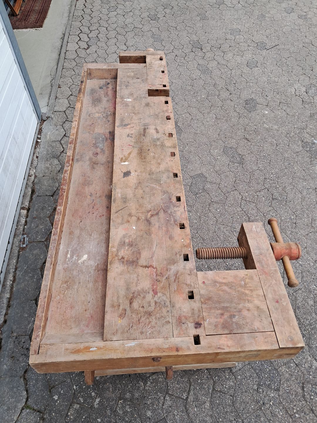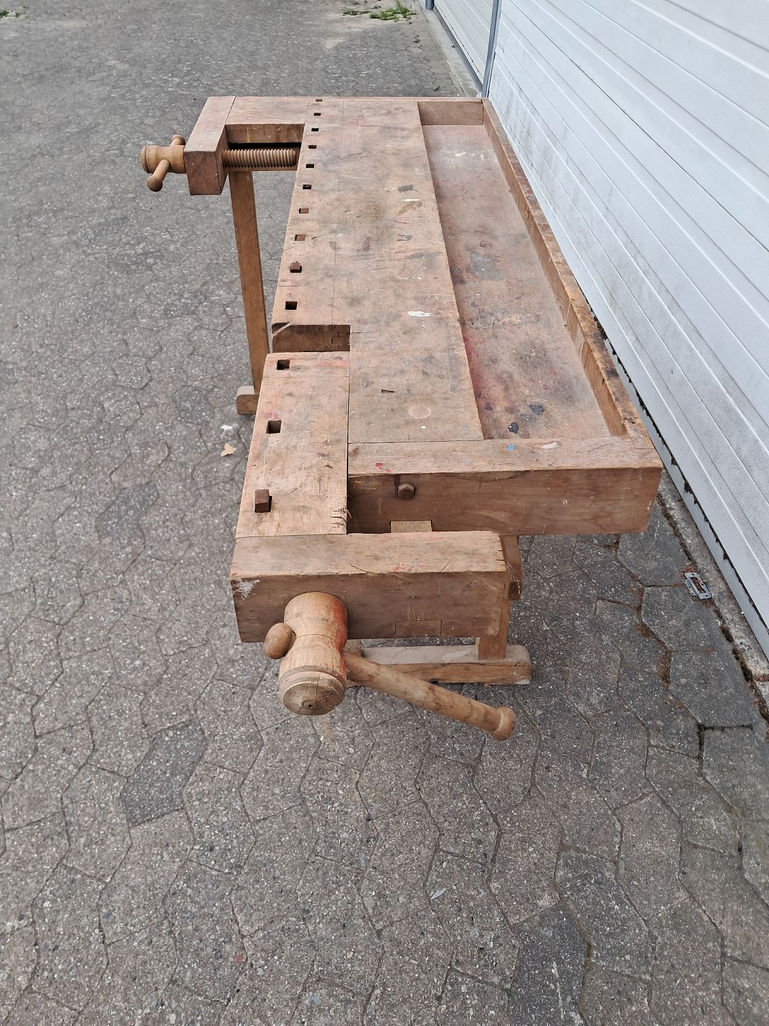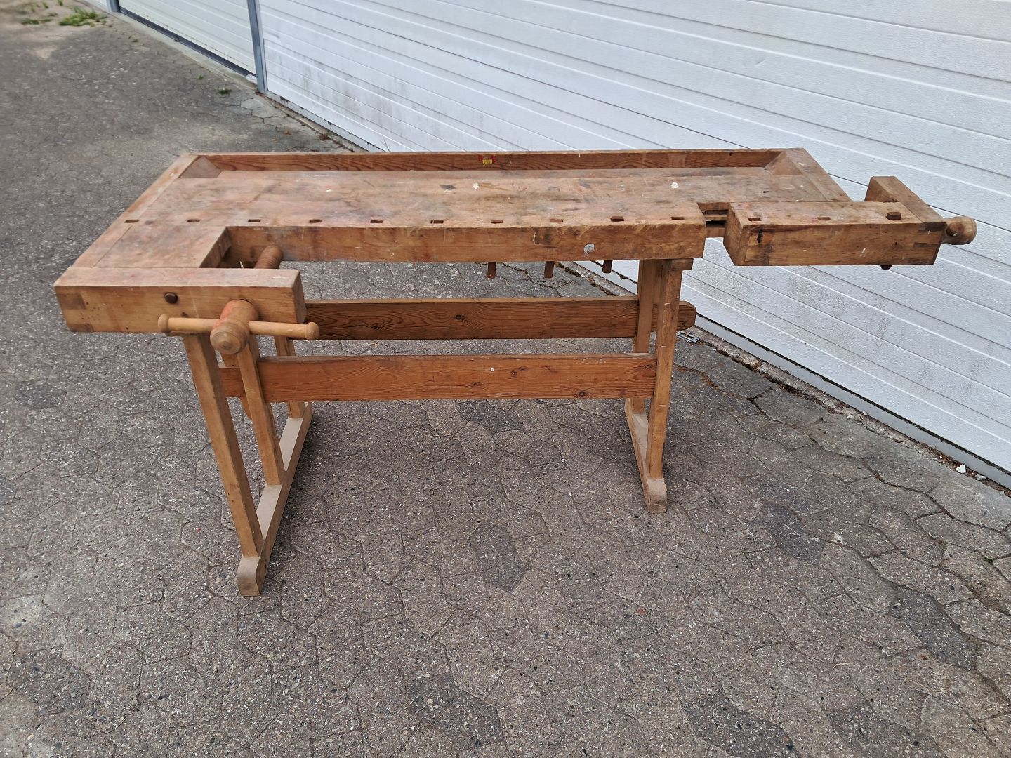 Høvlebænk i massivt bøgetræ, fra 1930erne. Den har brugsspor. Højde 80cm Bredde 175cm Dybde 80cm Emne nummer: 76740