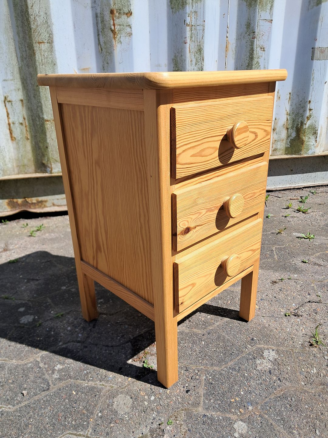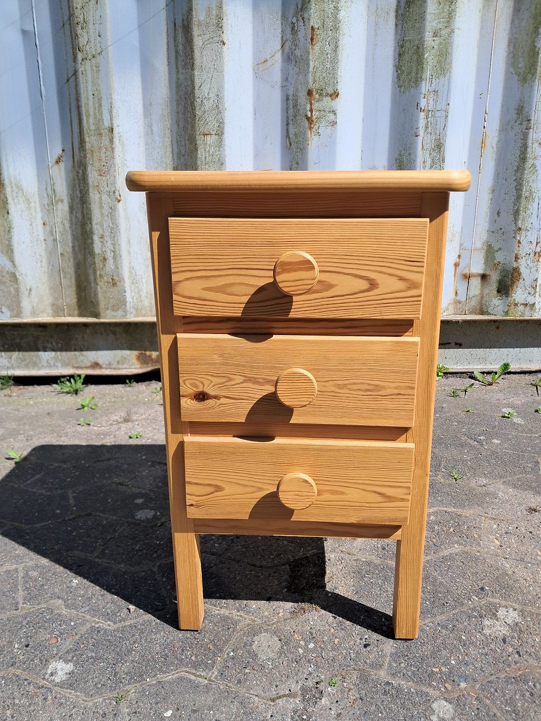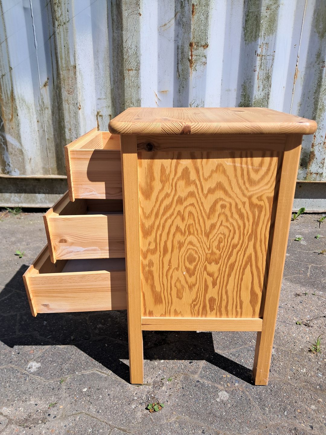 Kommode i krydsfiner og massivt fyrretræ, fra 1990erne. Den har brugsspor. Højde 53cm Bredde 32cm Dybde 32cm Emne nummer: 76756