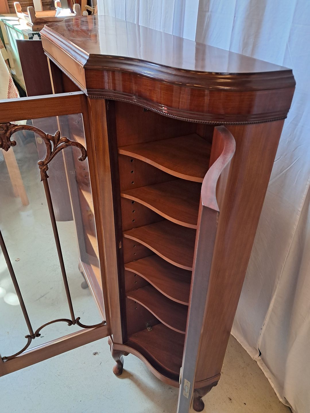 Skab i fineret mahogni, fra 1920erne. Det har små brugsspor. Højde 148cm Bredde 126cm Dybde 38cm Emne nummer: 76759