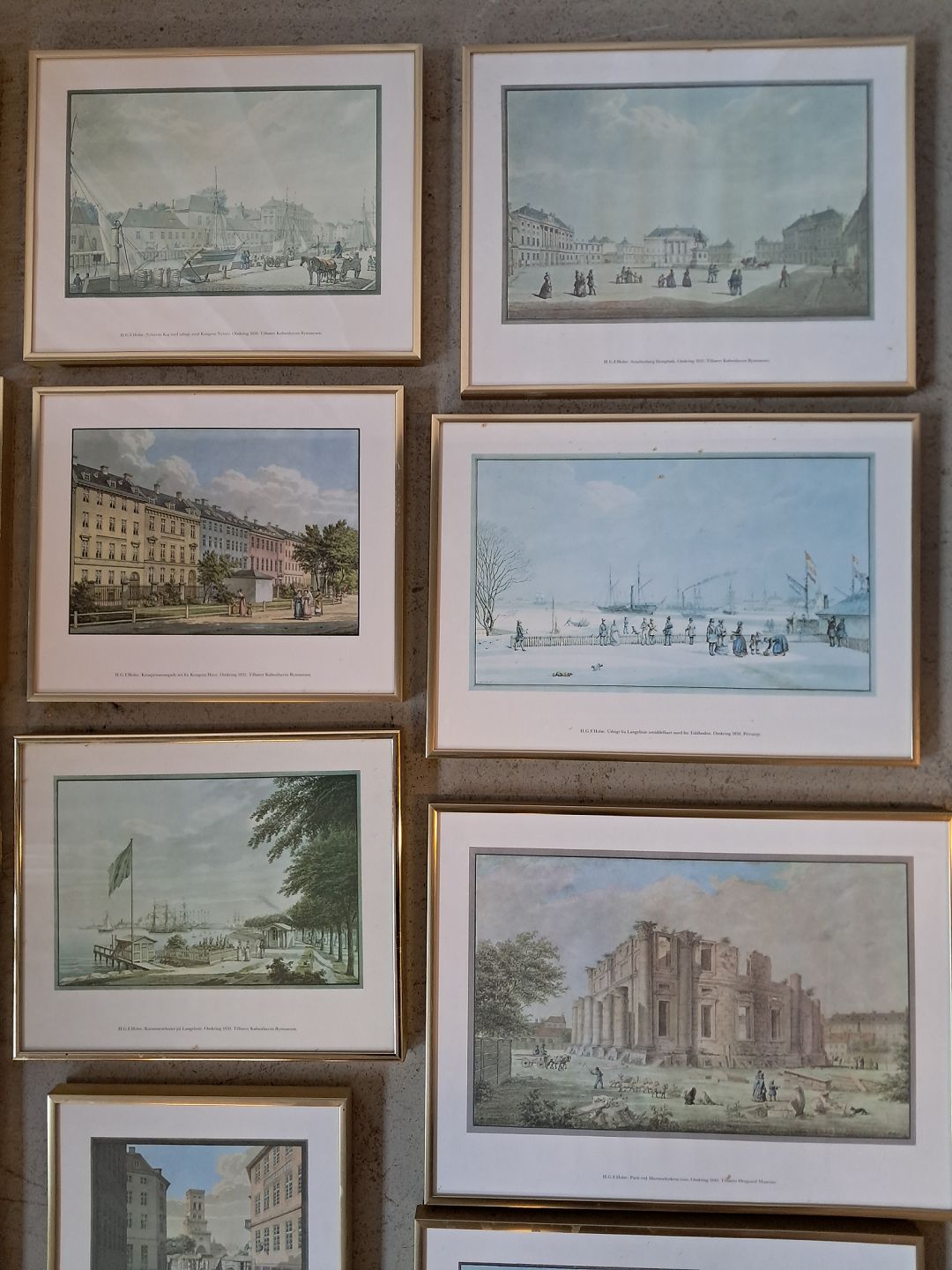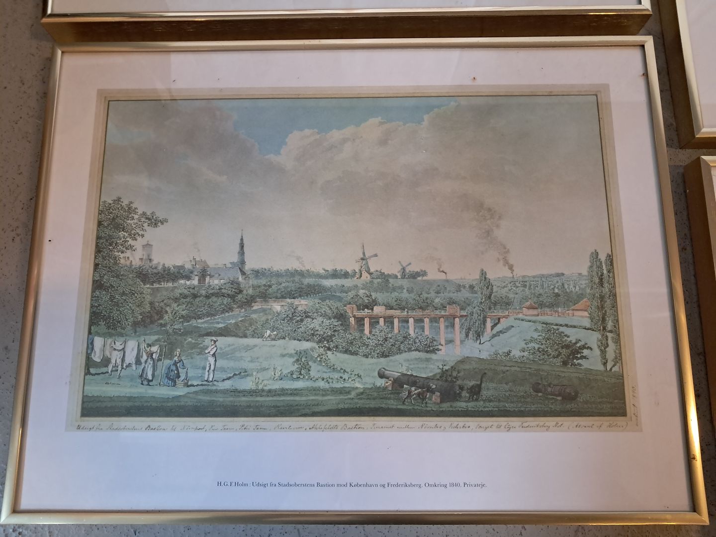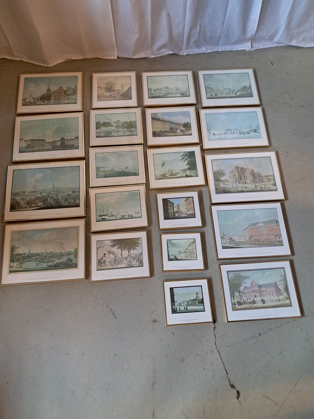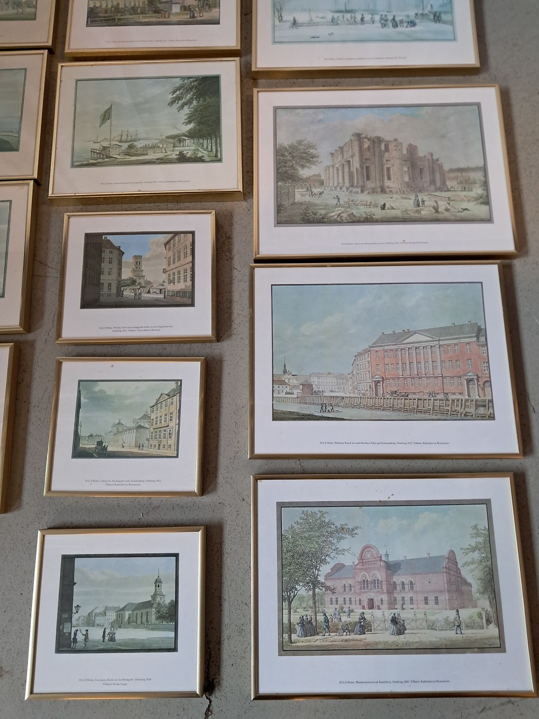 20 Stk. Billeder af H.G.F. Holm København, i aluminiumsrammer med glas, fra 1980erne. De er lidt falmet/De har patina. Den største måler : Højde 33cm Bredde 43cm Den mindste måler : Højde 20cm Bredde 22cm Emne nummer: 76815