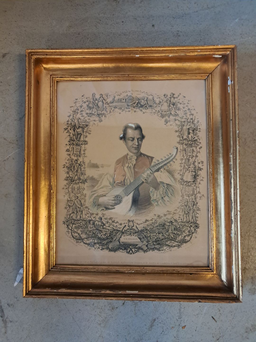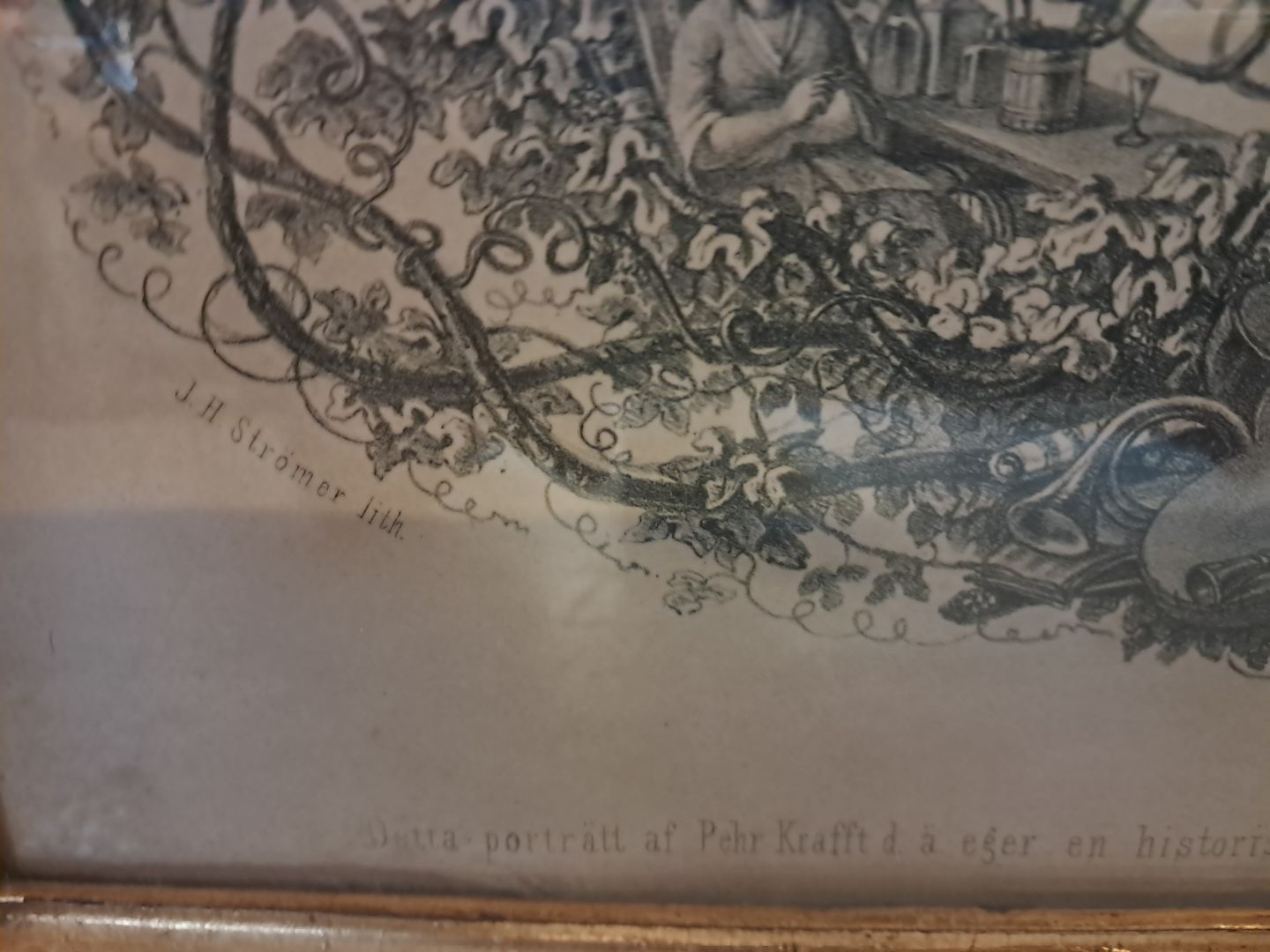 Gammelt tryk i guldmalet ramme med glas, fra ca. 1890erne. Det har brugsspor. Højde 58cm Bredde 49cm Emne nummer: 76817
