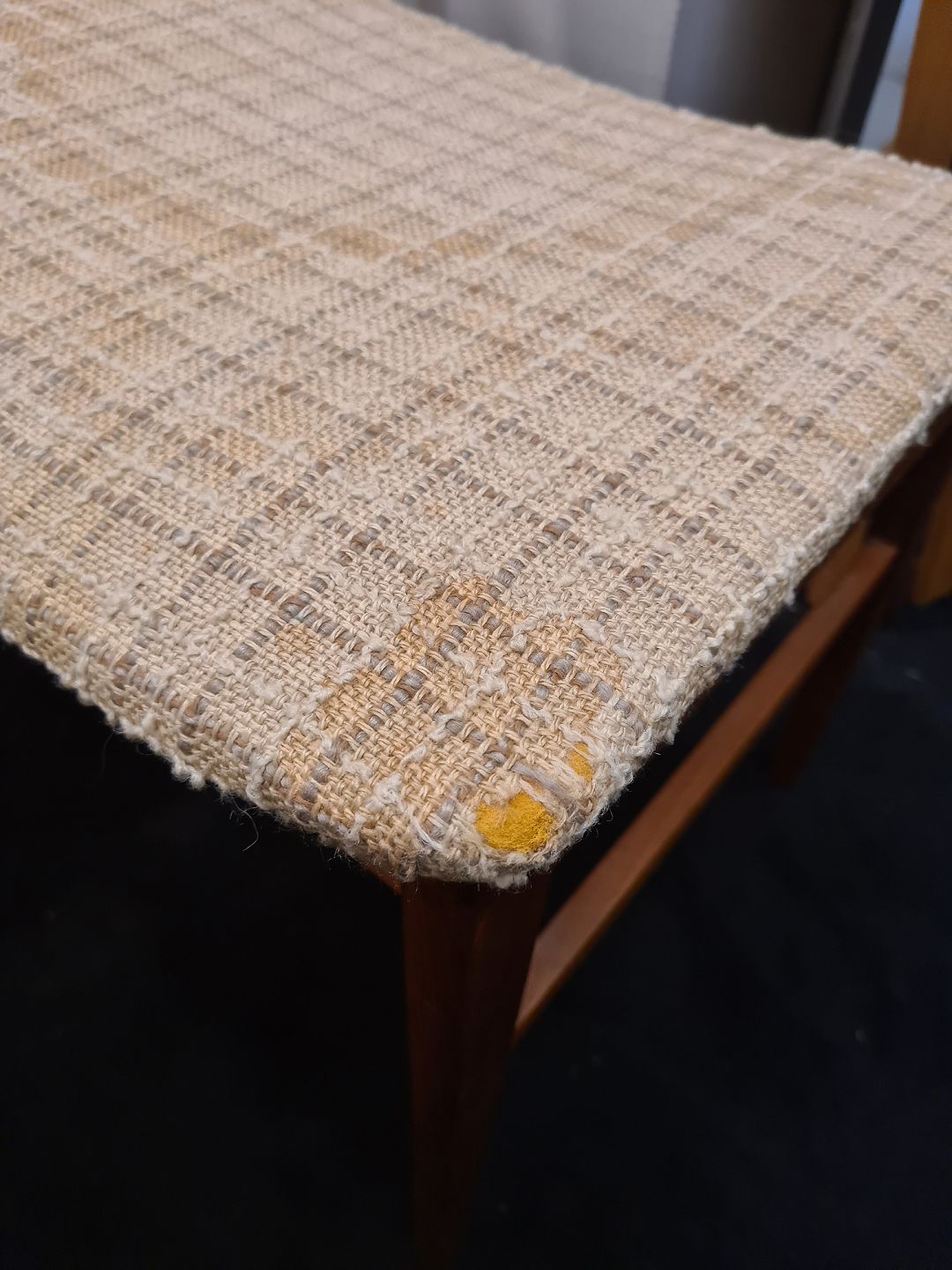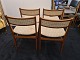 Vestervig Eriksen sæt af 4 spisebordsstole i teak betrukket m. uldstof. Fremstår i brugt stand, bør ombetrækkes. Fremstillet ca. 1960'erne. Mål: H. 73 cm. B. 46 cm. D. 48 cm. SH. 46 cm. Emne nummer: 80882