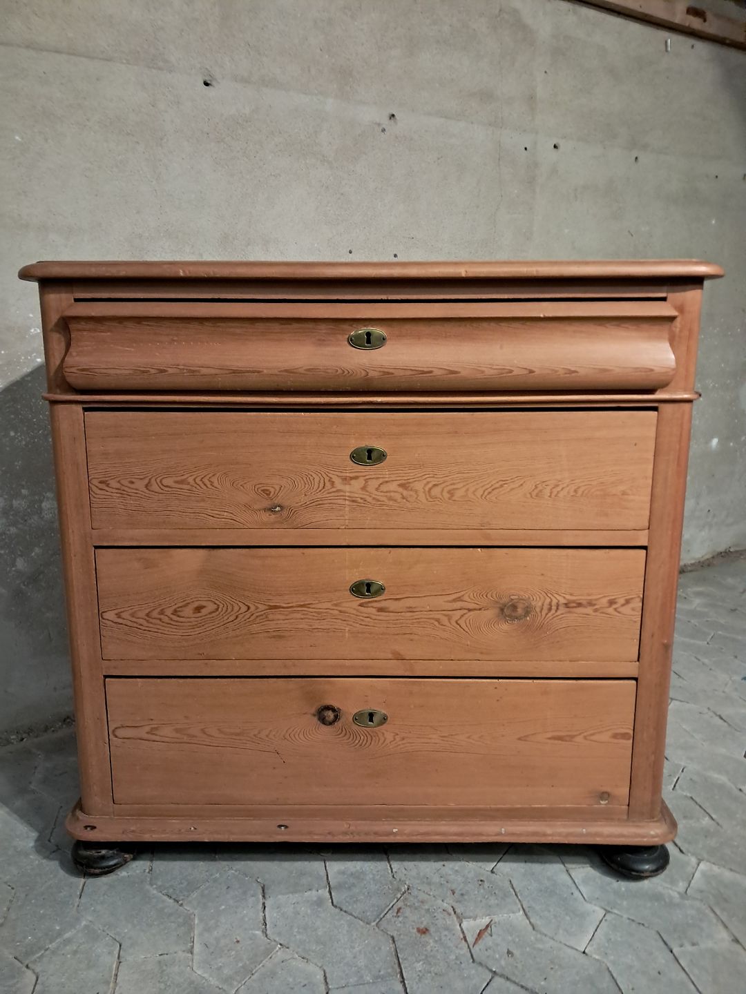 Kommode i massivt fyrretræ, fra 1920erne. Den har patina. Højde 91cm Bredde 94cm Dybde 48cm Emne nummer: 91720
